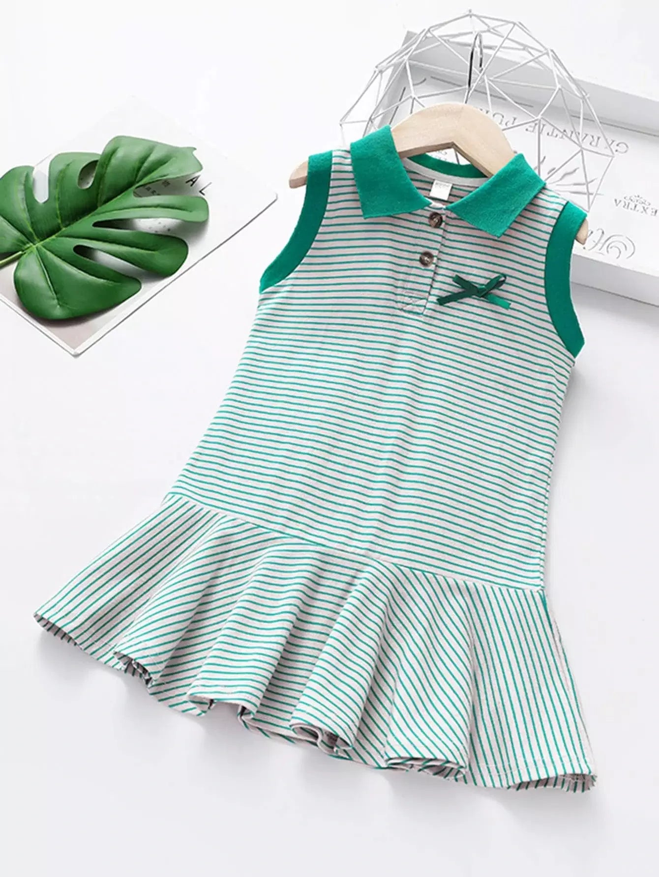 Kids - Toddler Girls Striped Bow Front Smock Dress