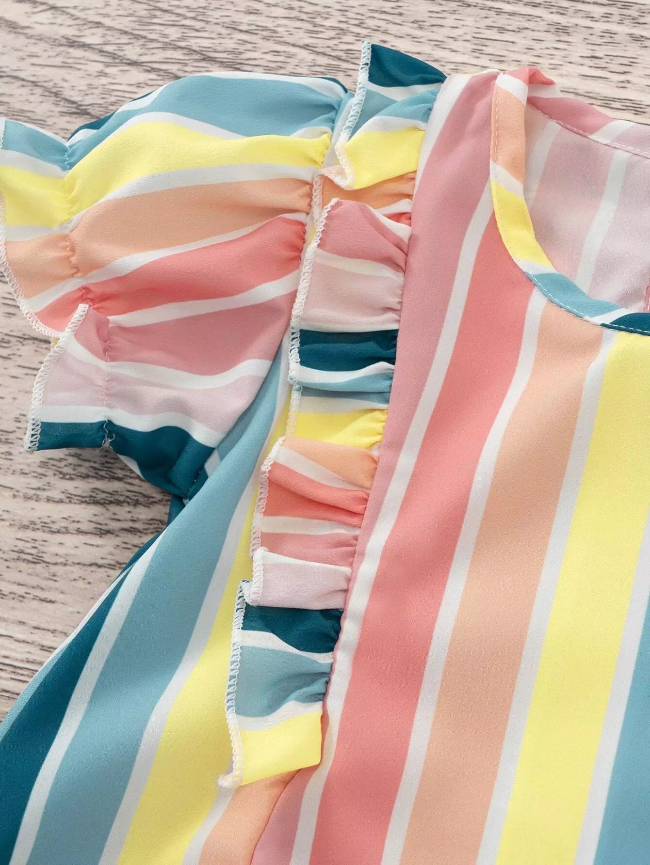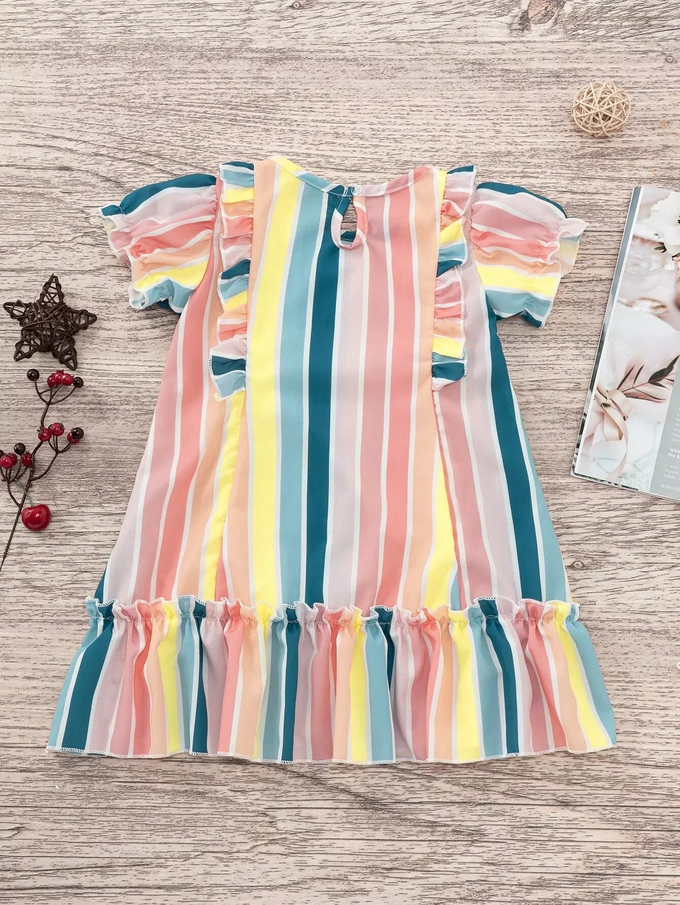 Toddler Girls Striped Ruffle Hem Babydoll Dress