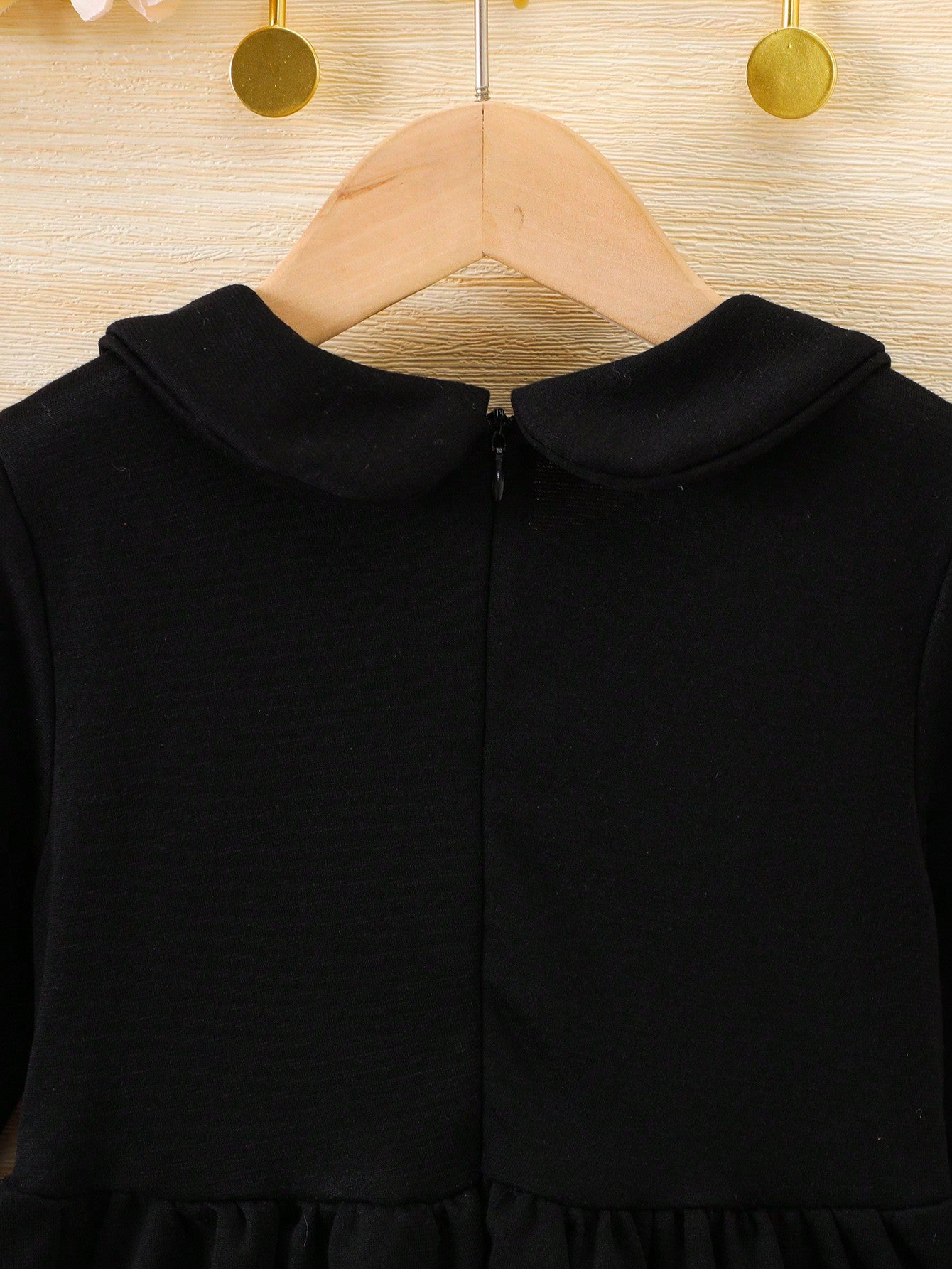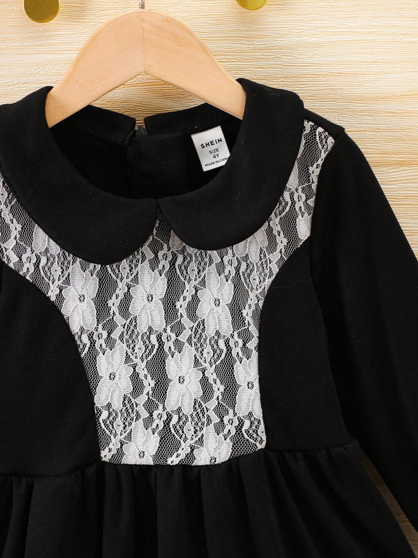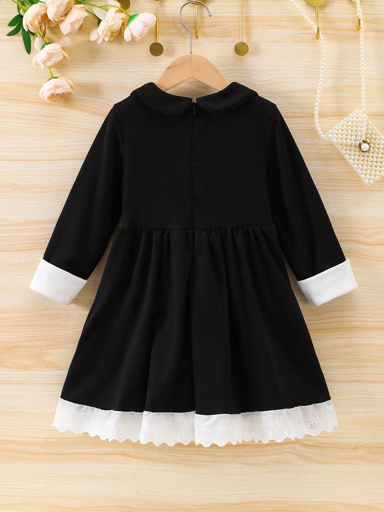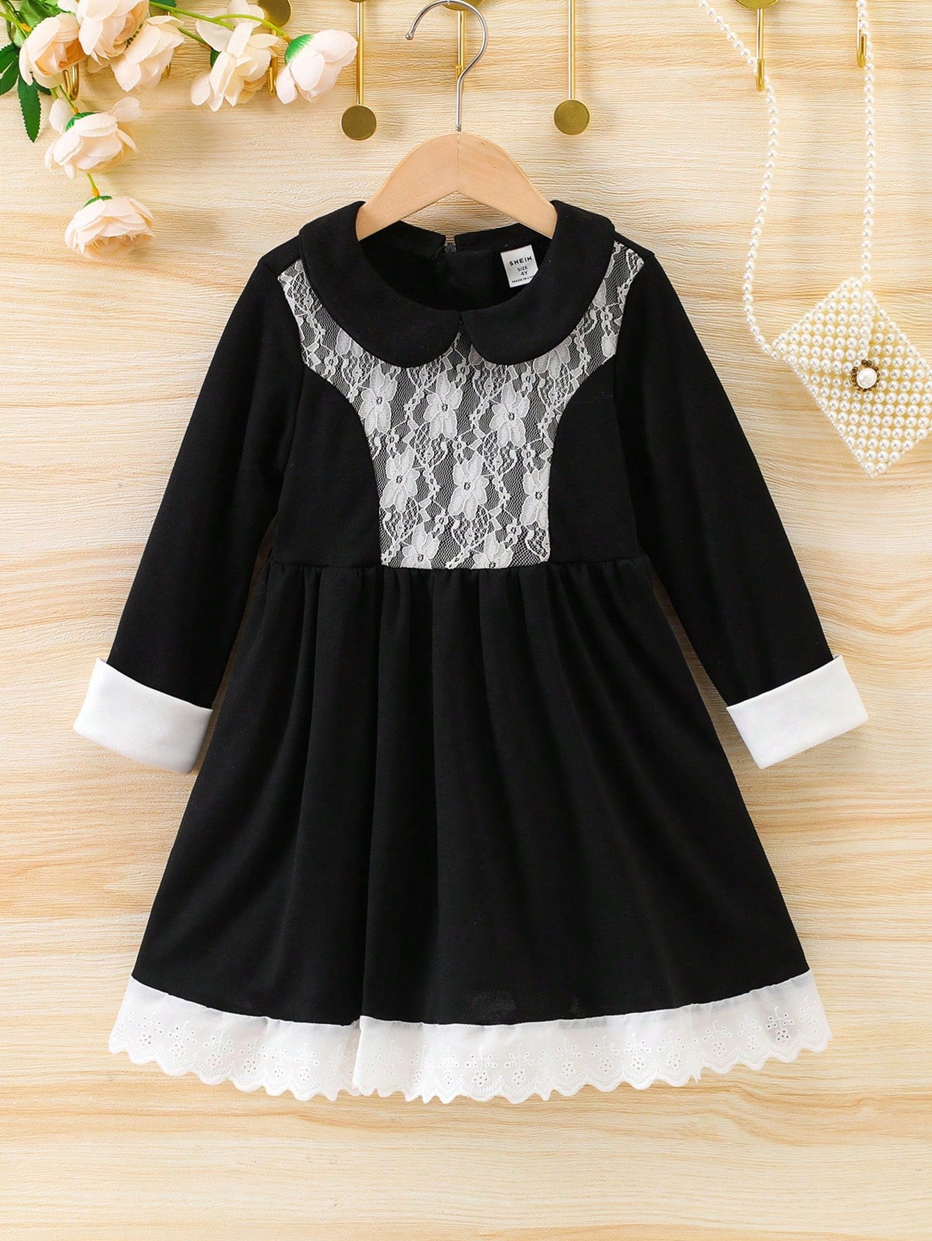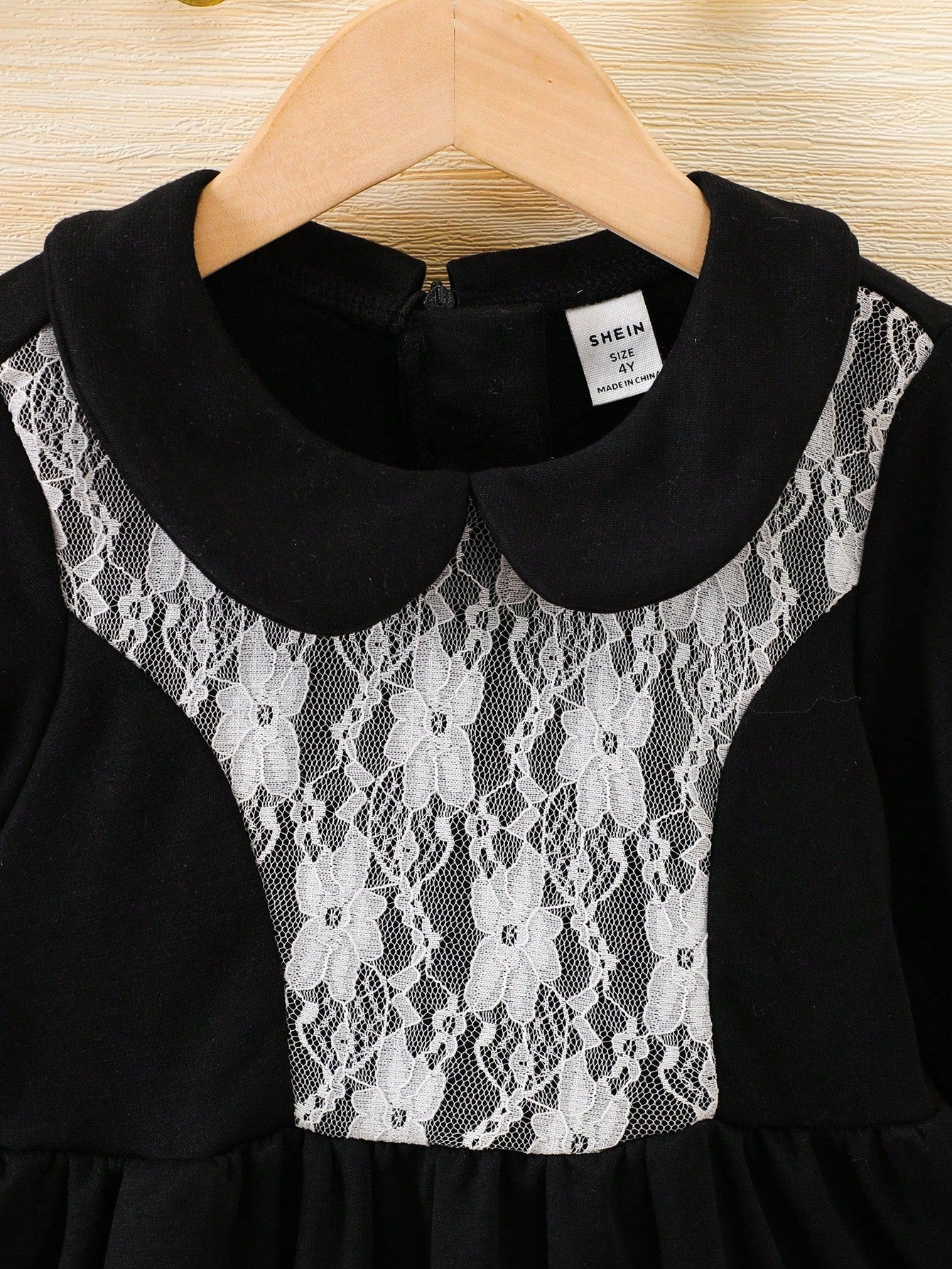 Young Girl Contrast Lace Peter Pan Collar Smock Dress