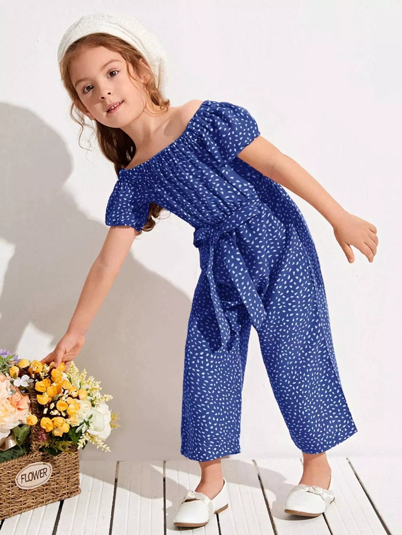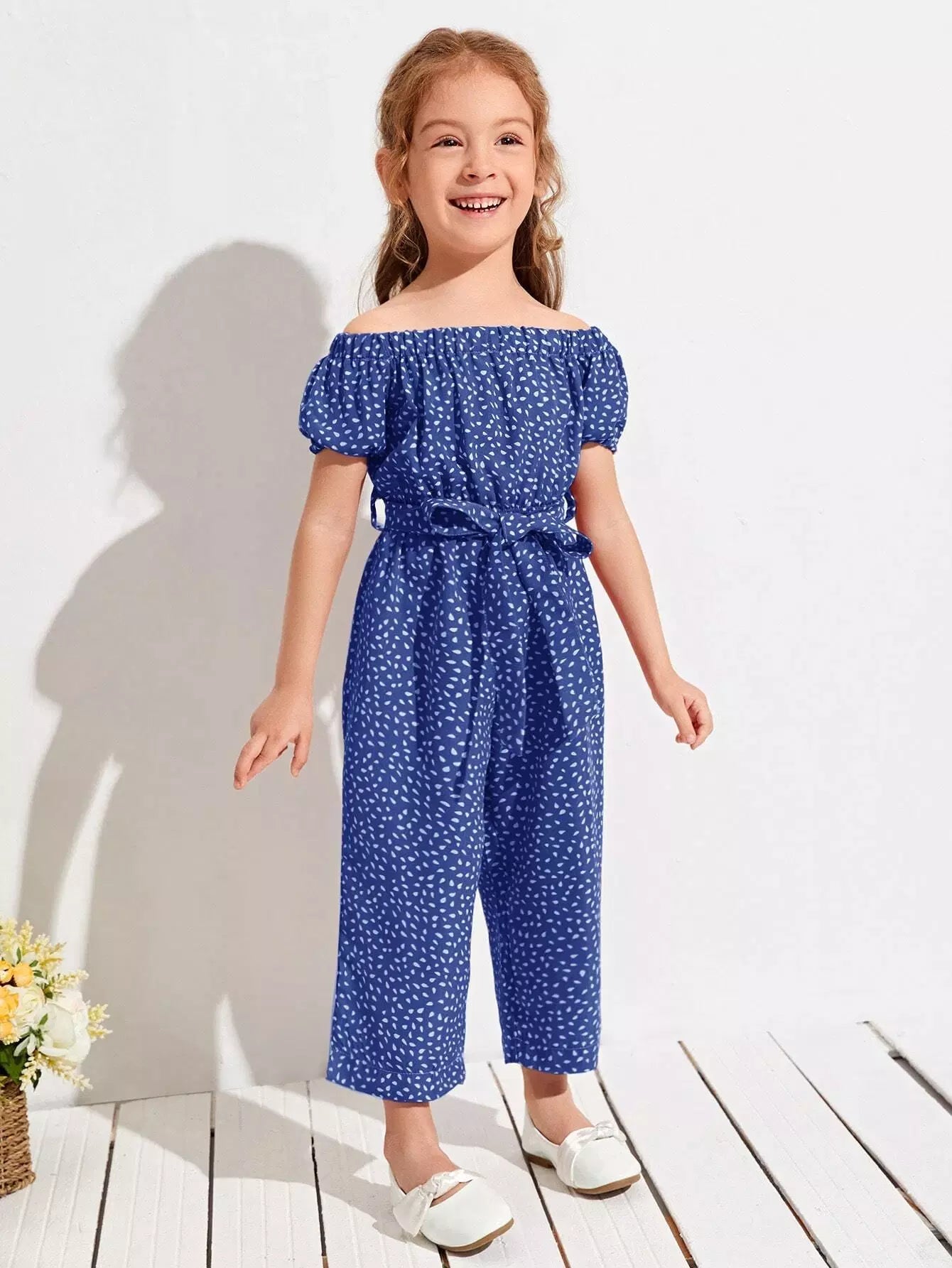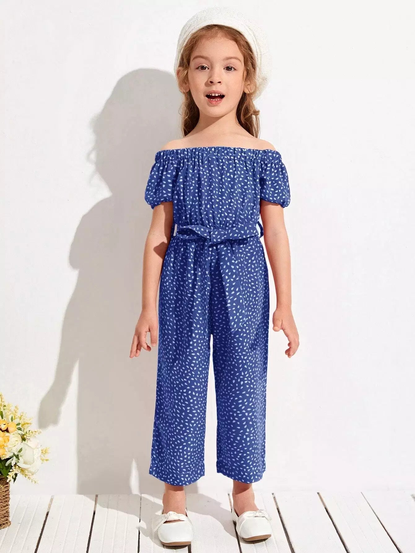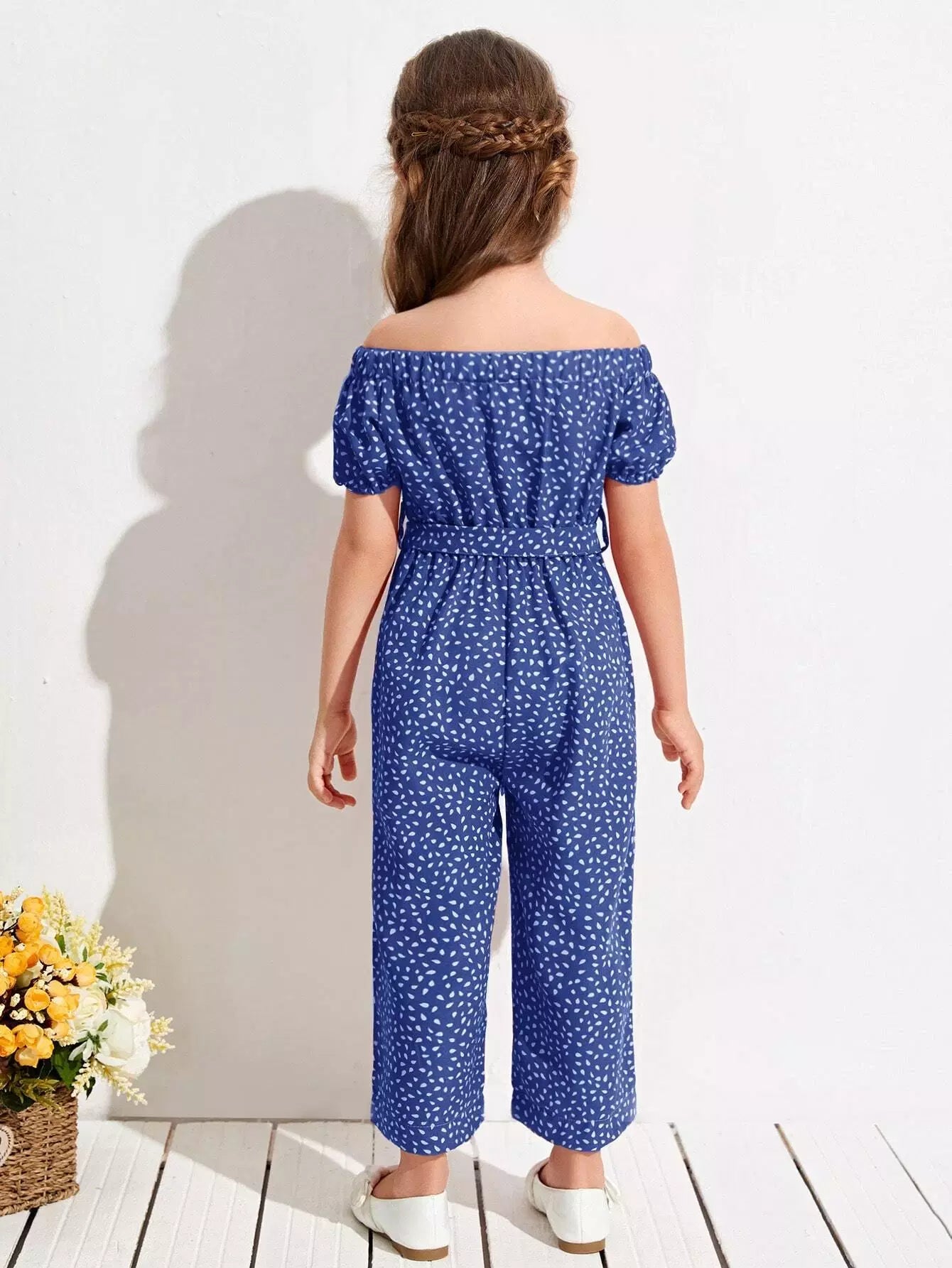Toddler Girls All Over Print Off The Shoulder Jumpsuit Without Belt