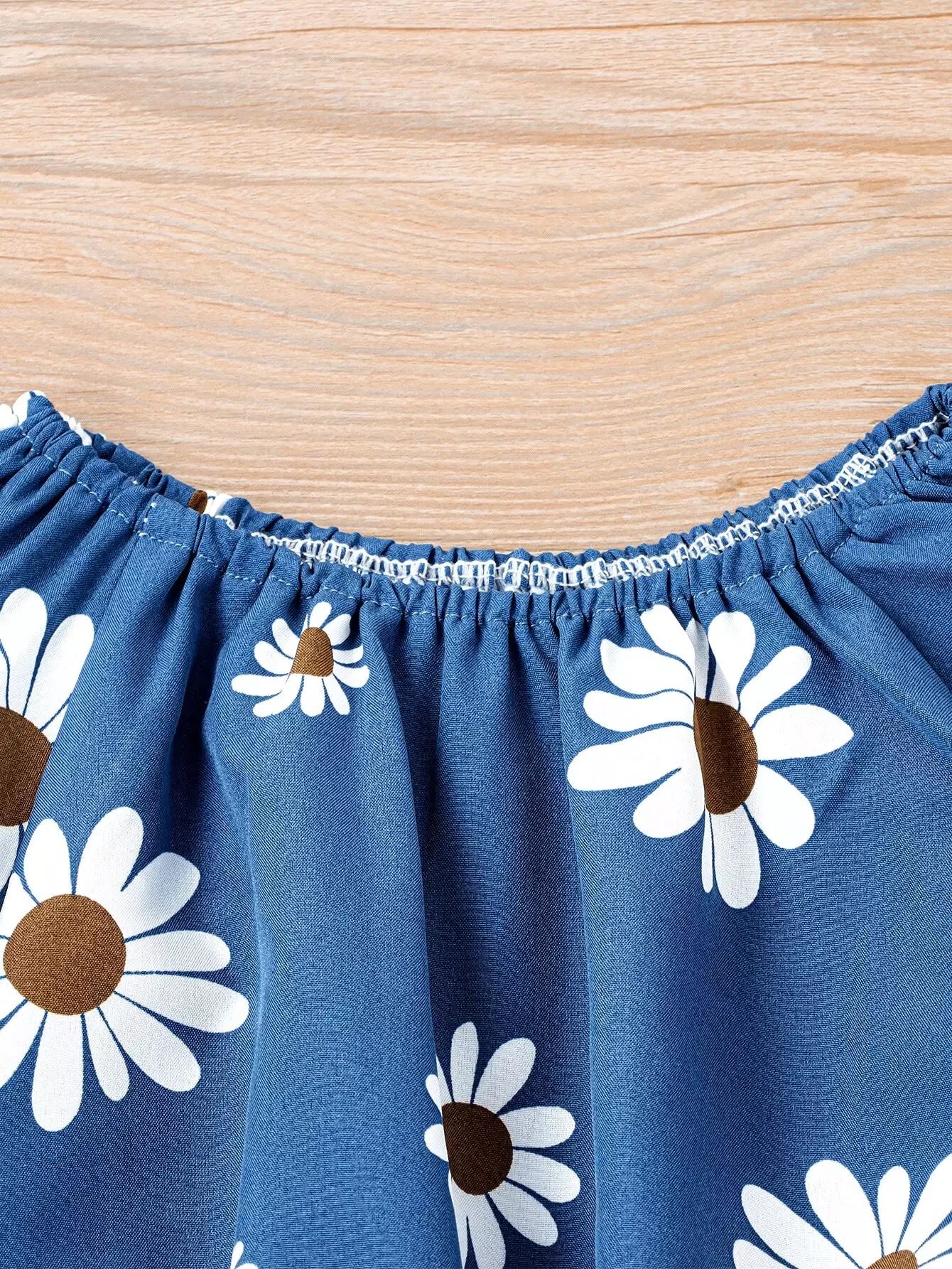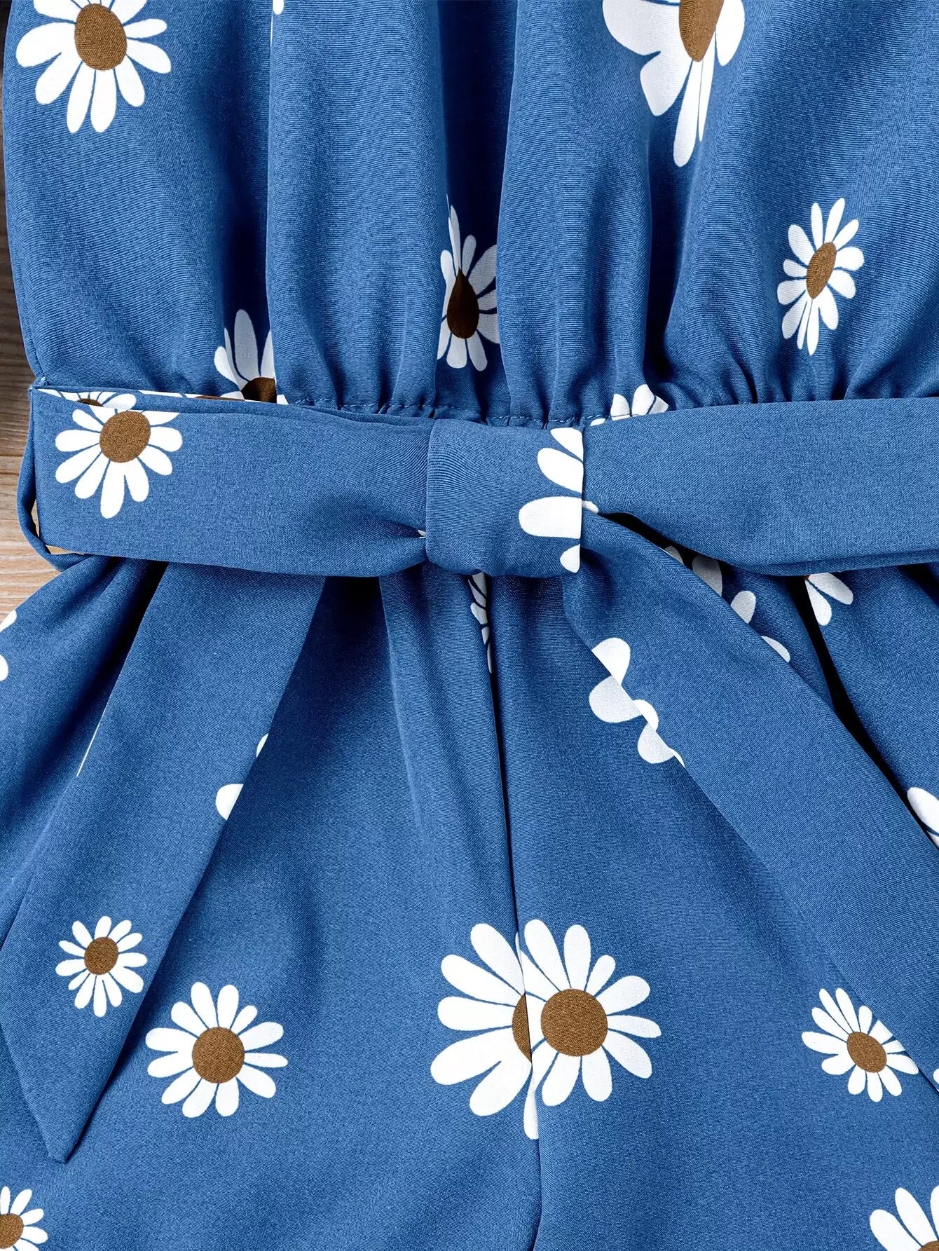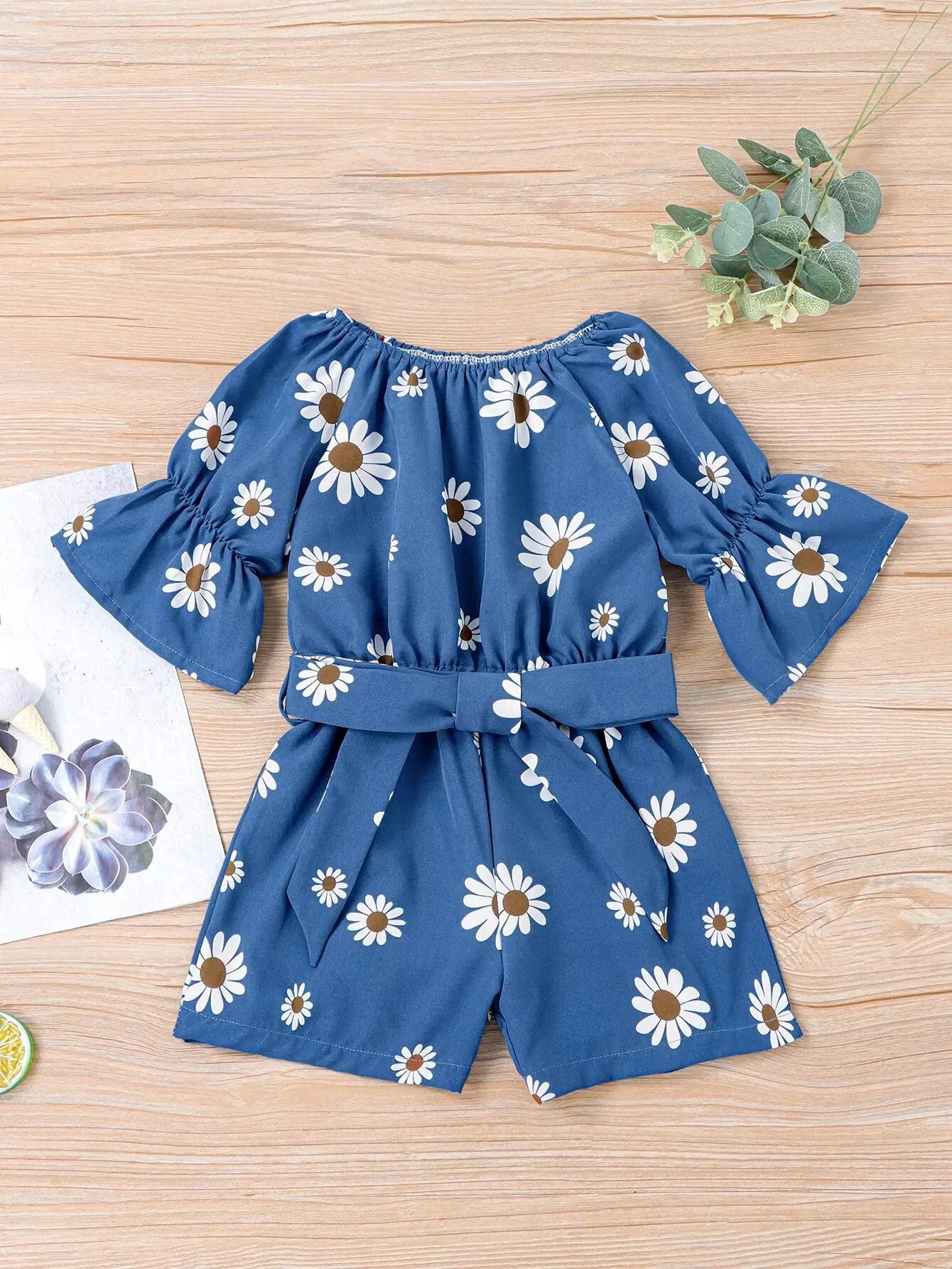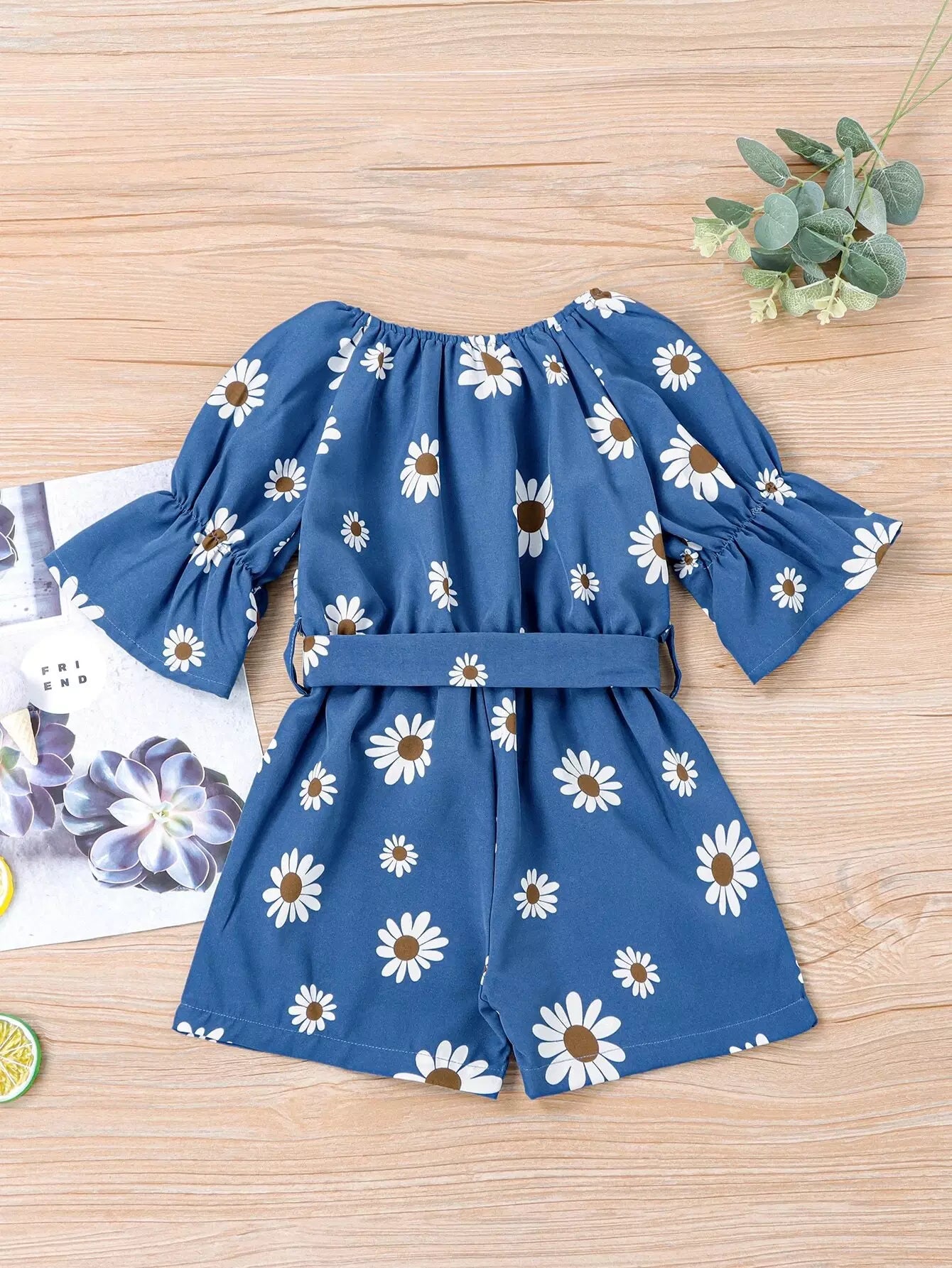 Toddler Girls Floral Flounce Sleeve Romper Without Belt
