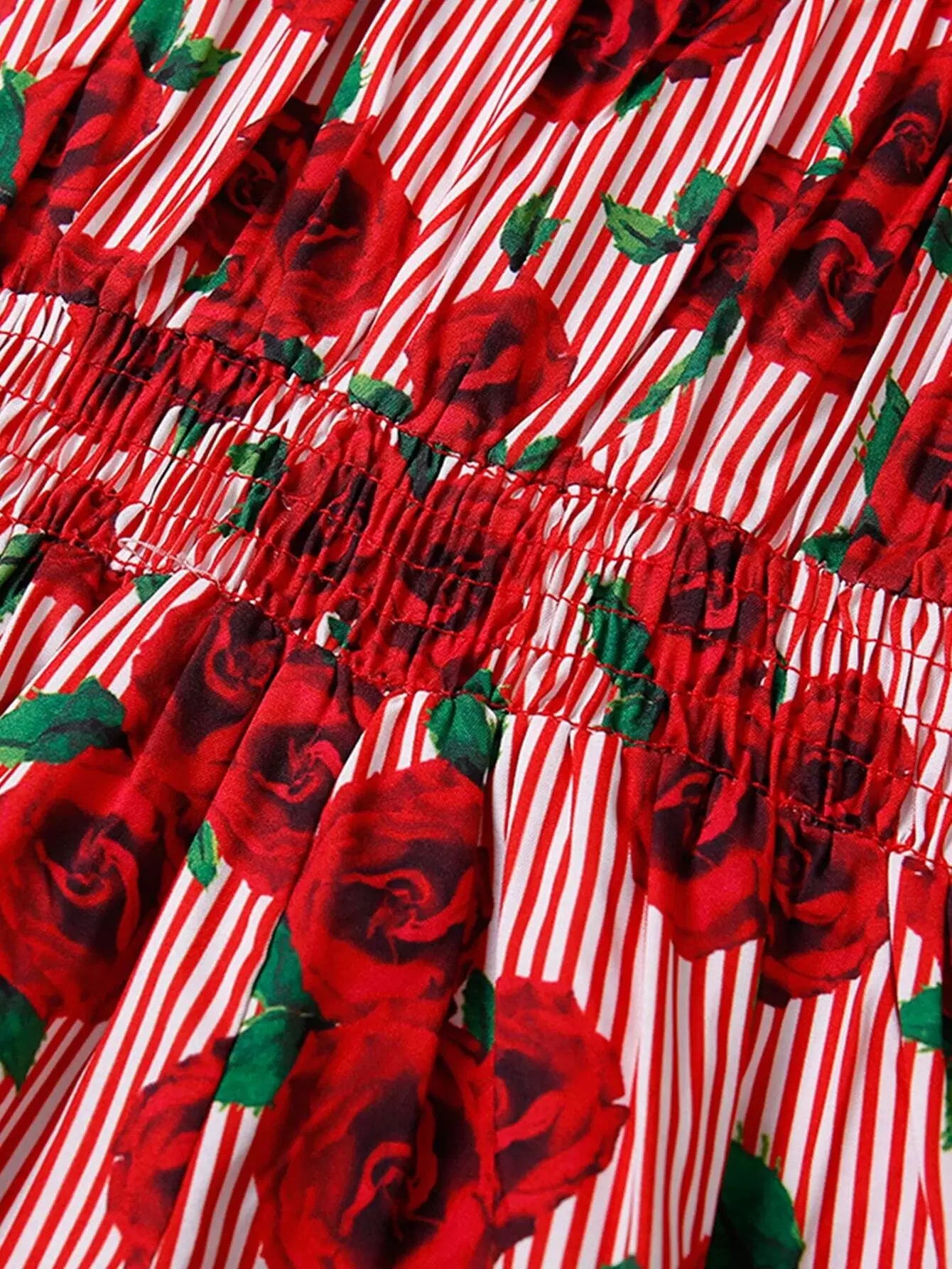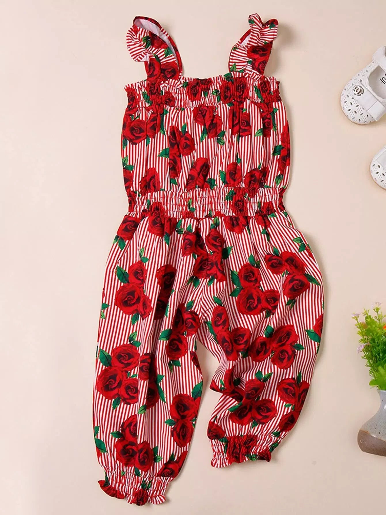 Toddler Girls Floral & Stripe Print Shirred Jumpsuit