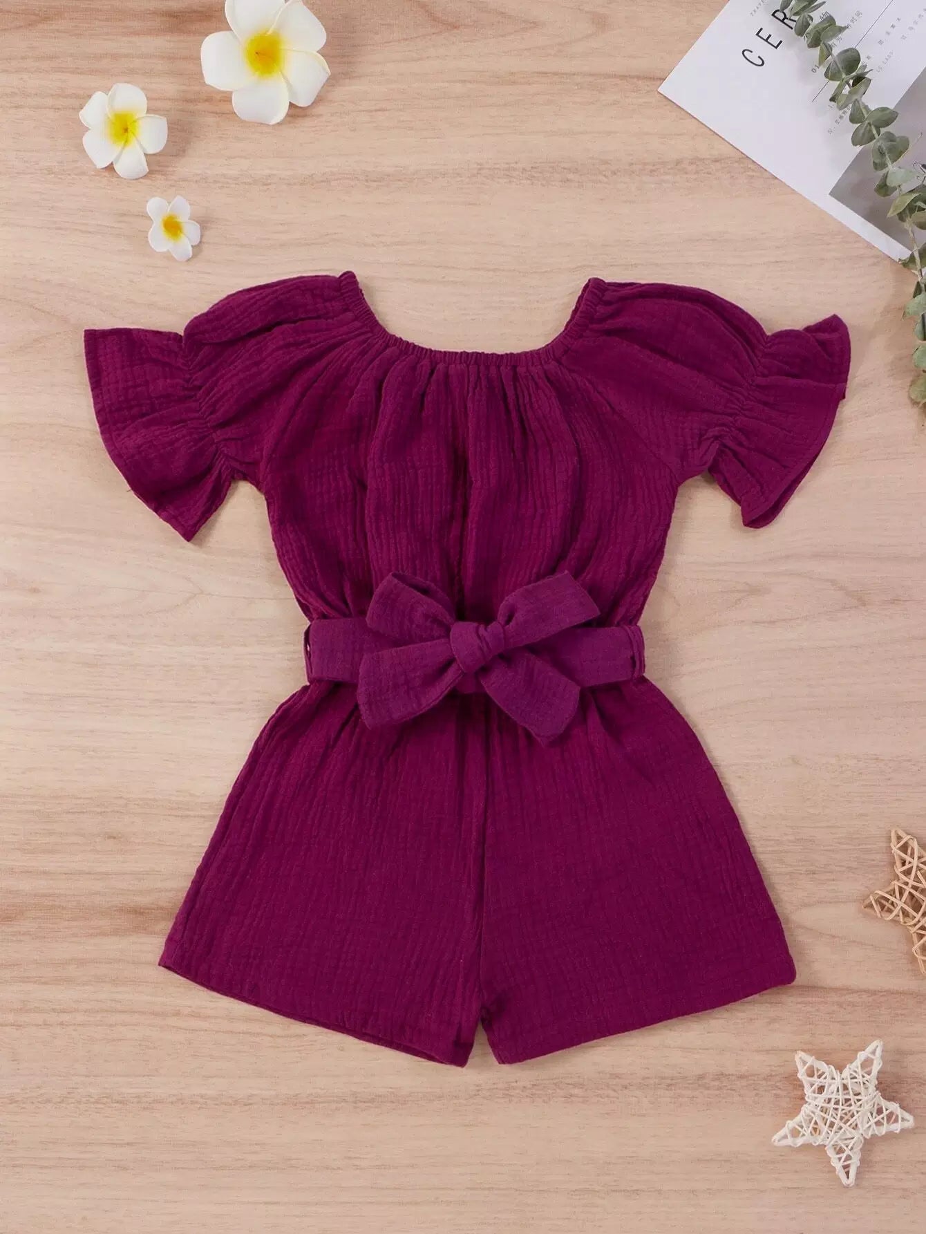 Toddler Girls Flounce Sleeve Romper Without Belt