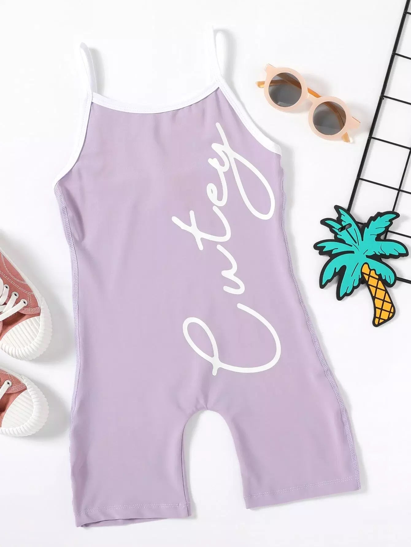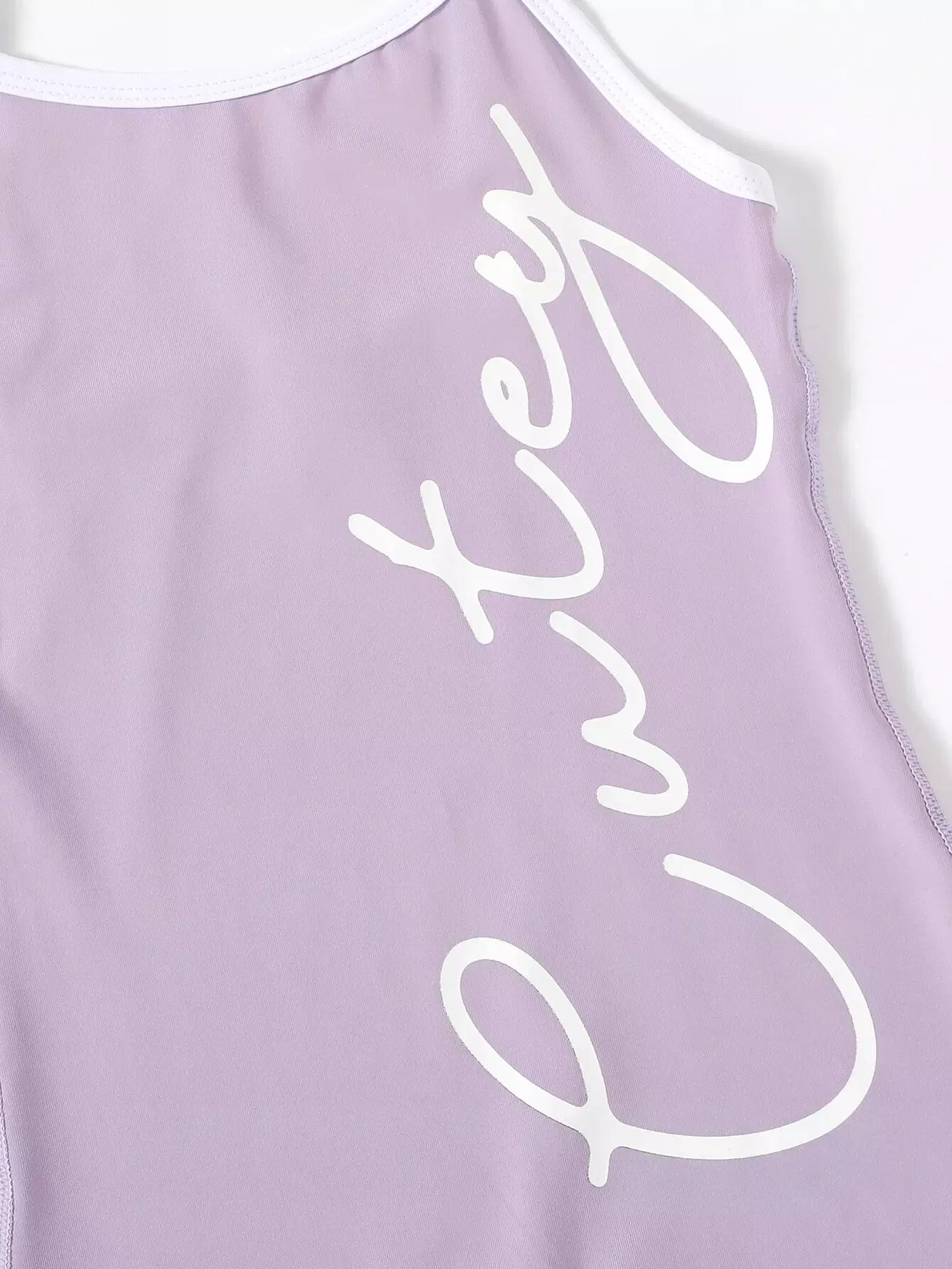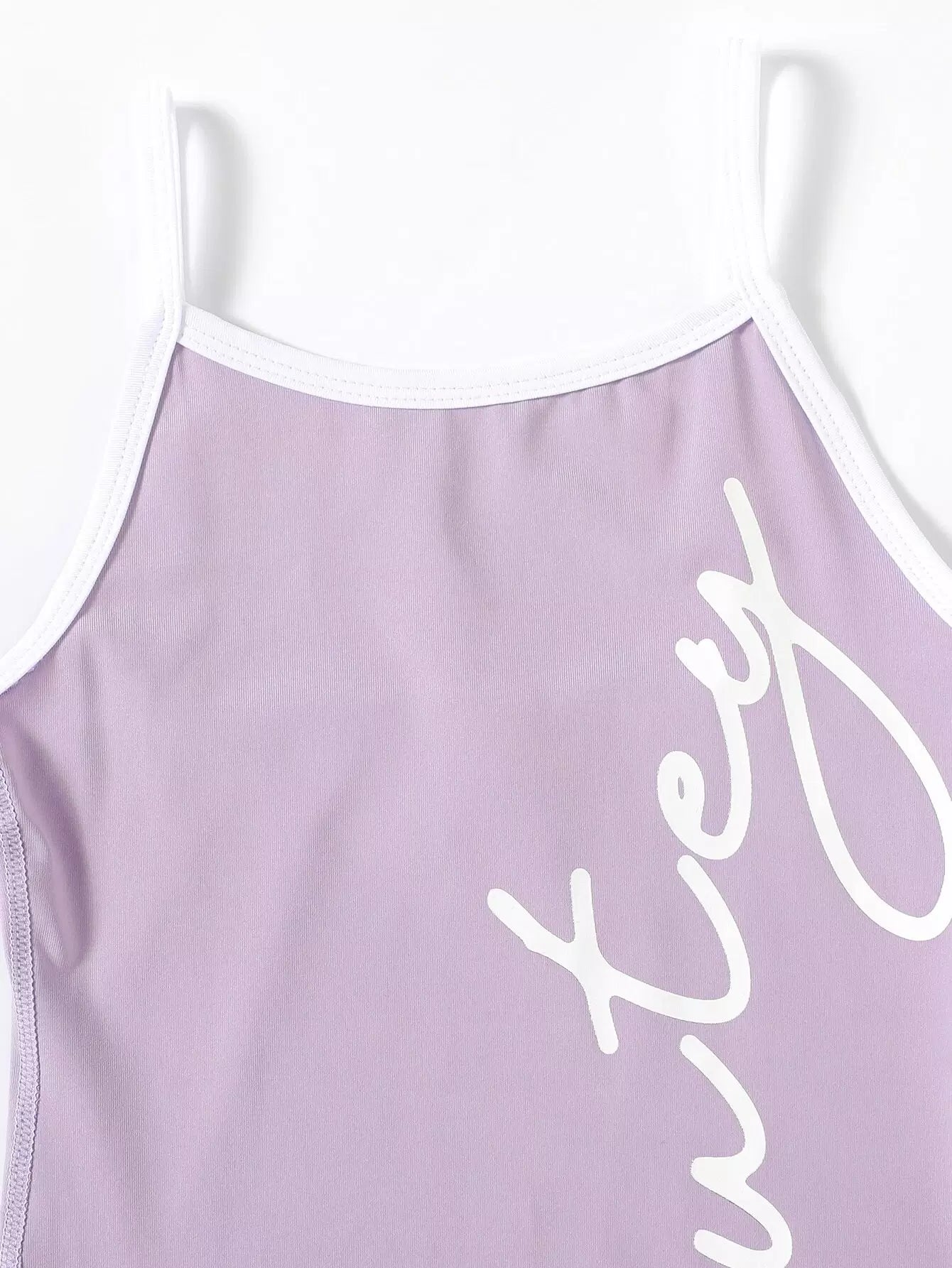 Toddler Girls Letter Graphic Ringer Unitard Cami Romper