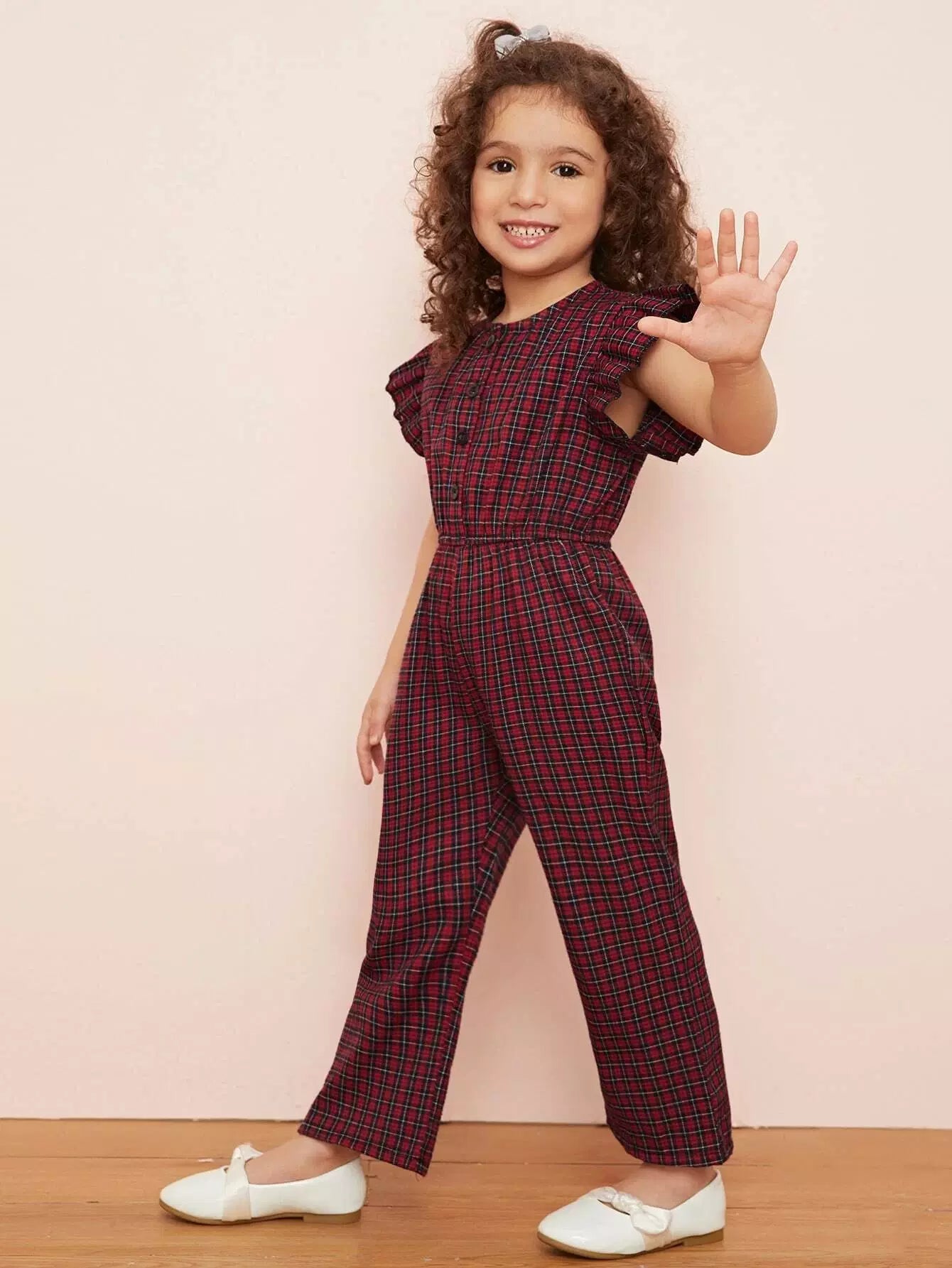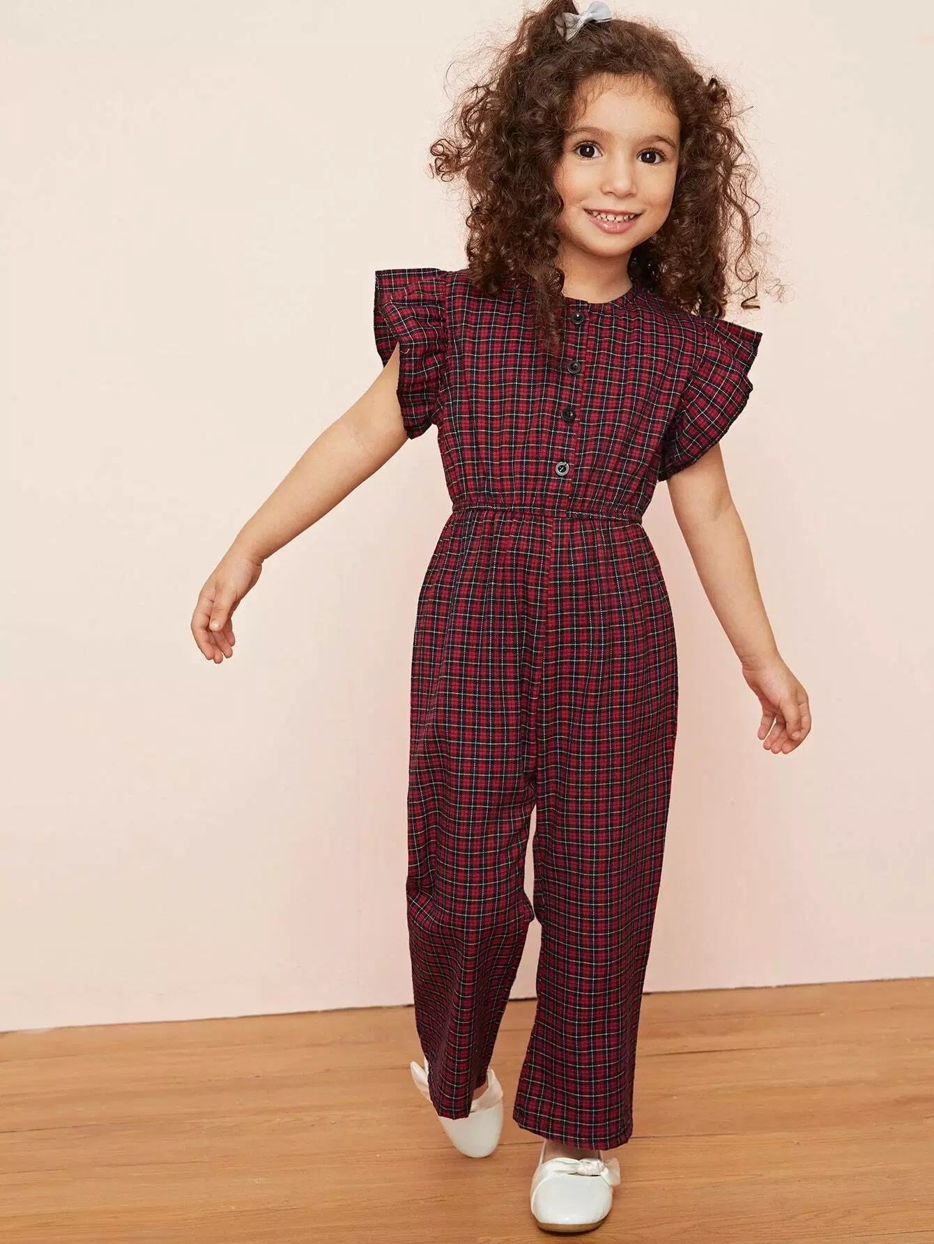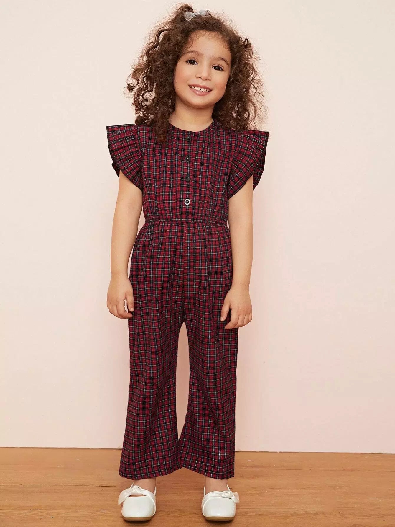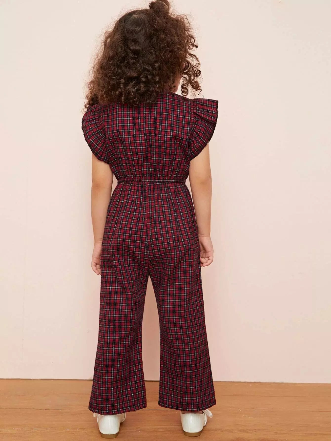 Toddler Girls Plaid Ruffle Cuff Button Front Jumpsuit