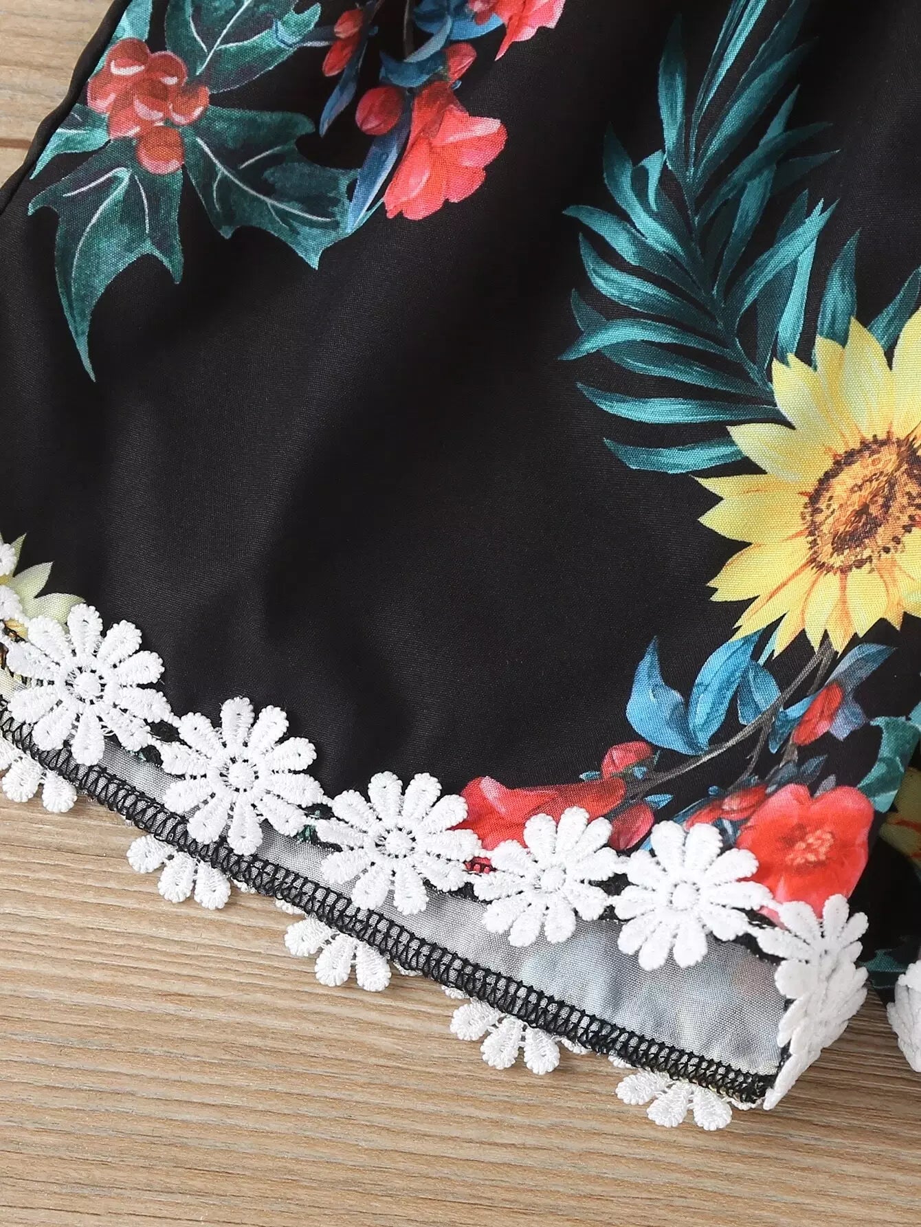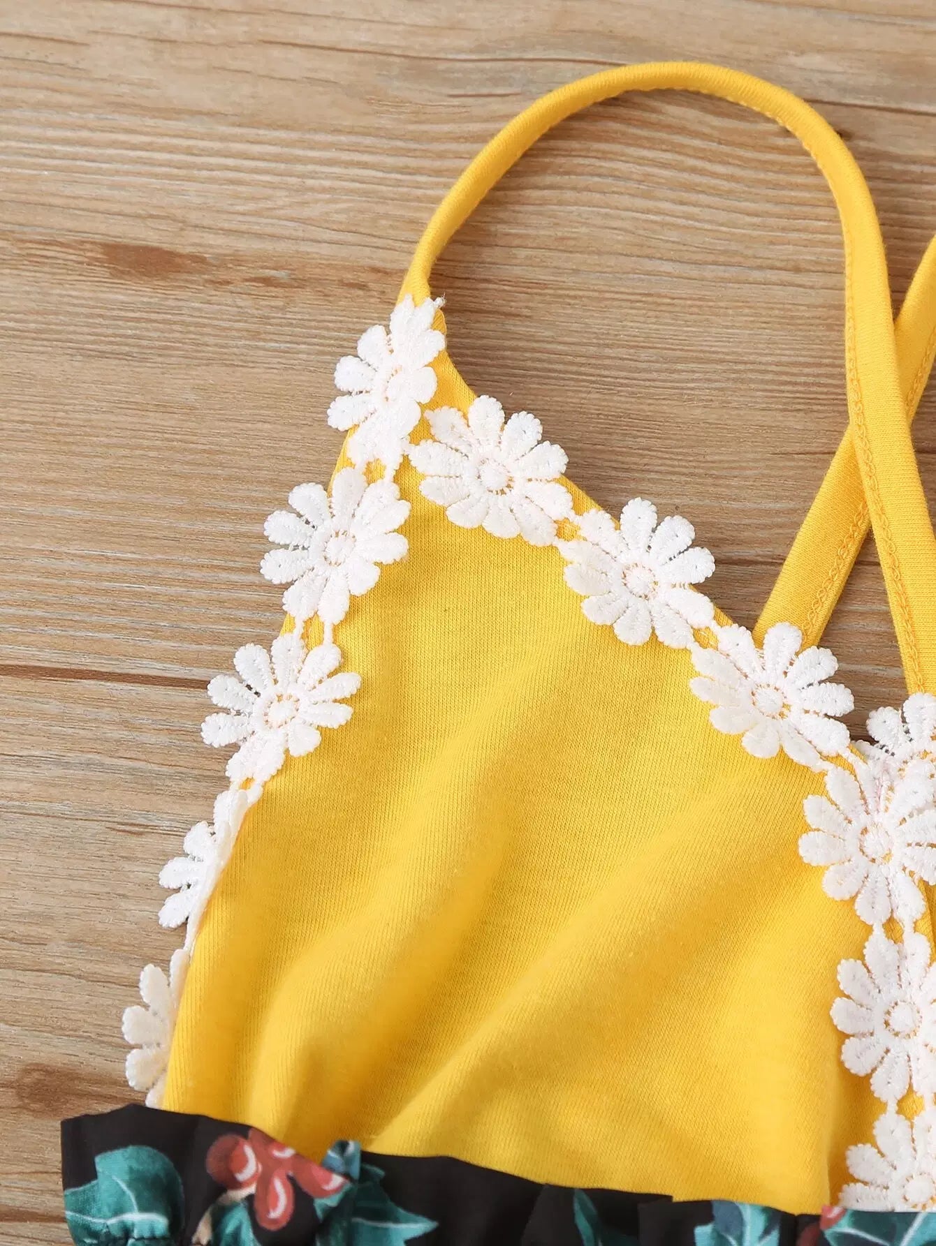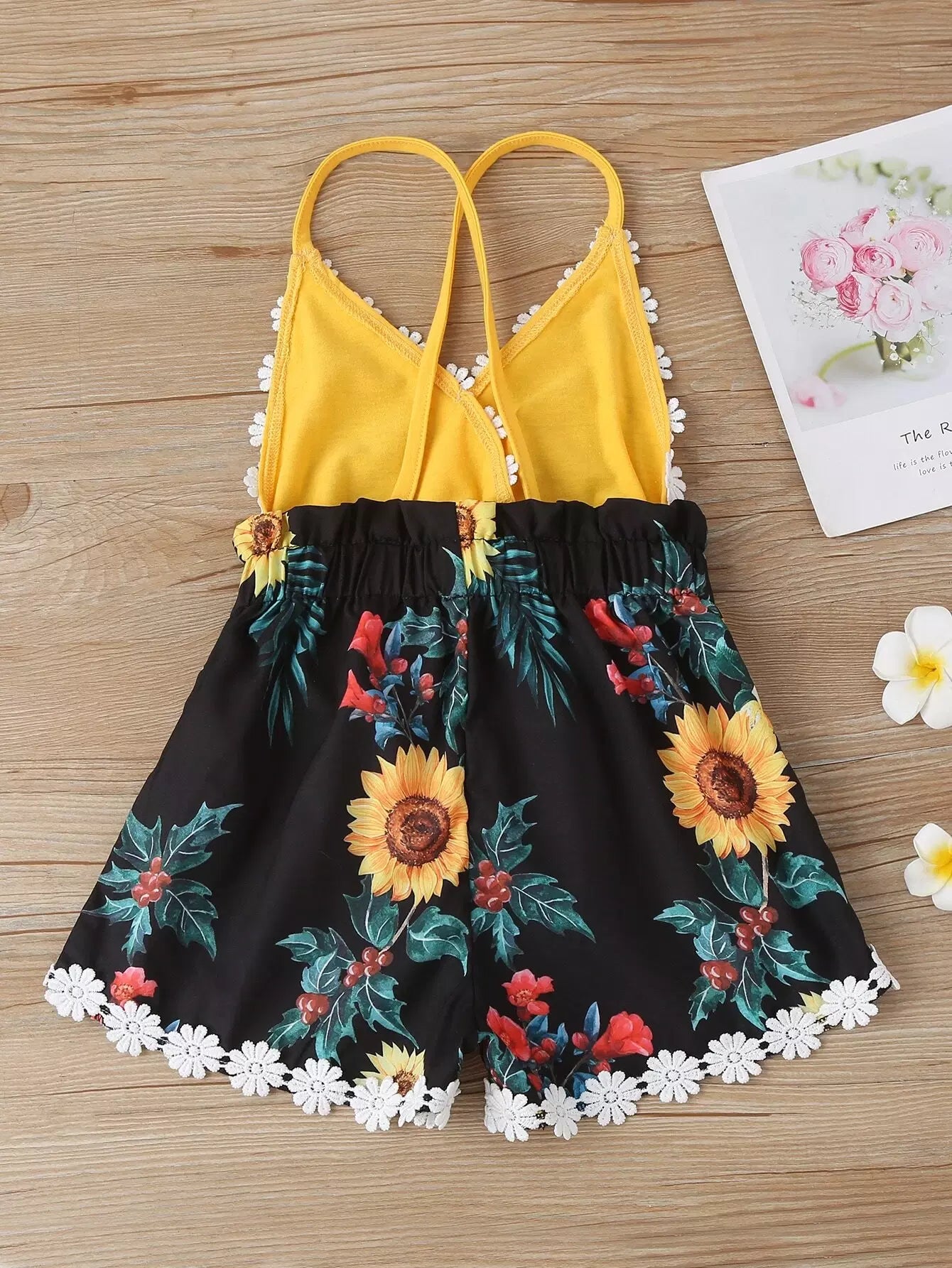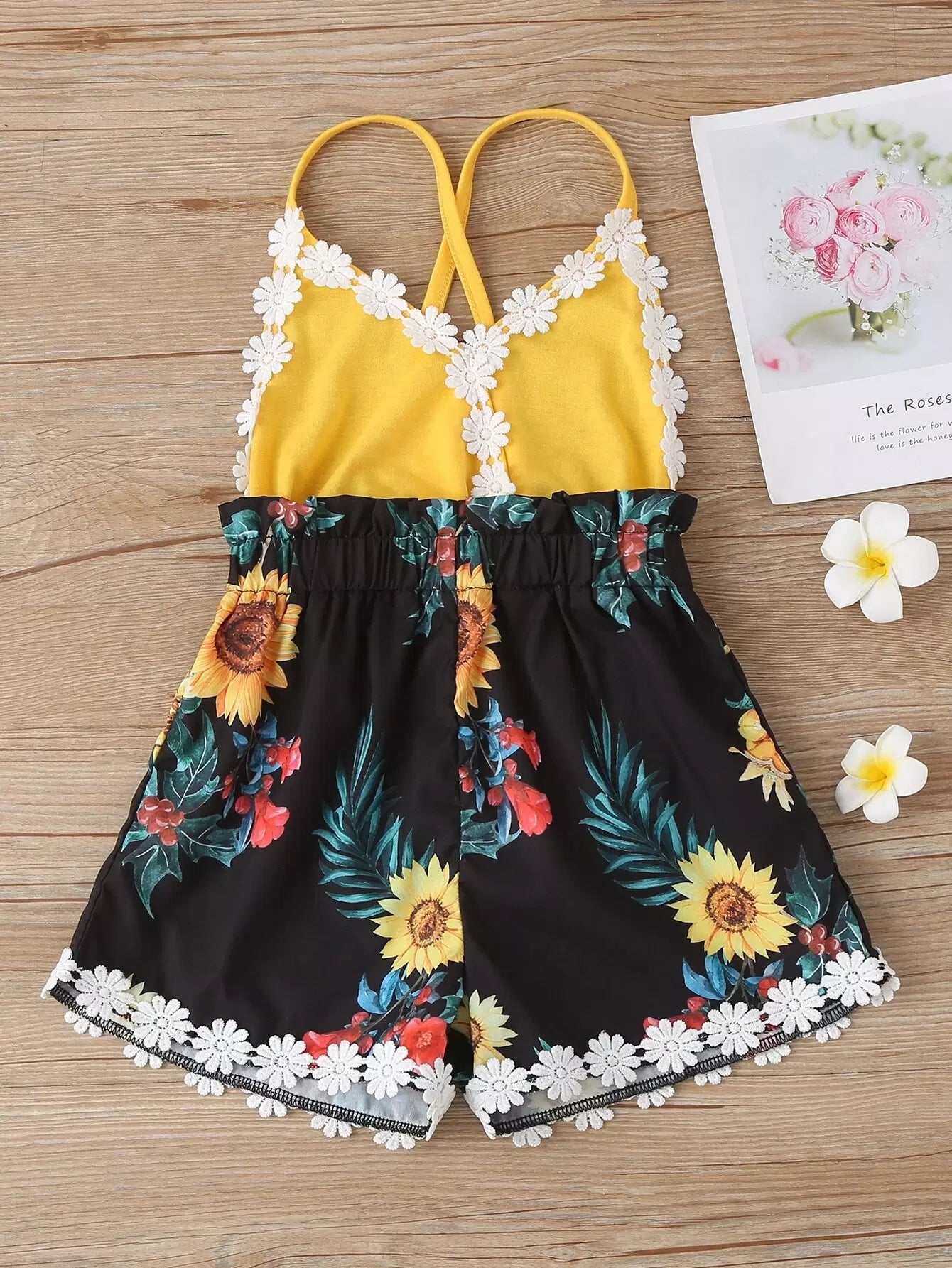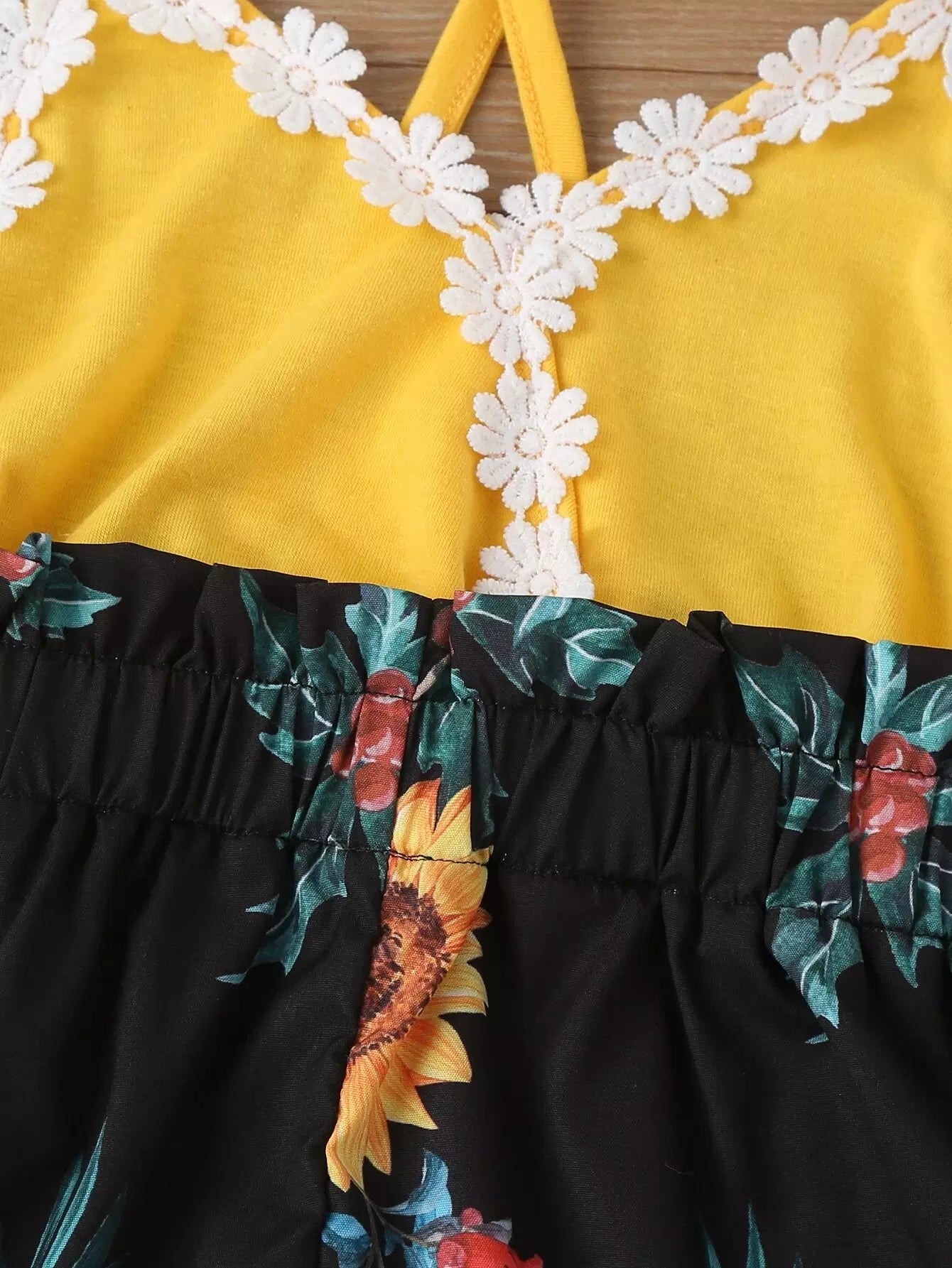 Toddler Girls Sunflower Print Appliques Cami Romper