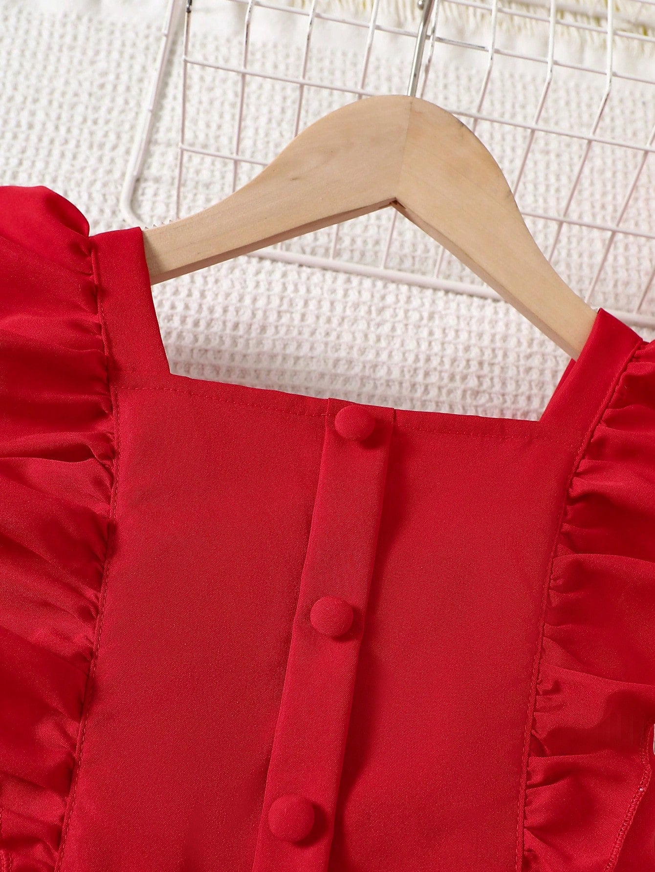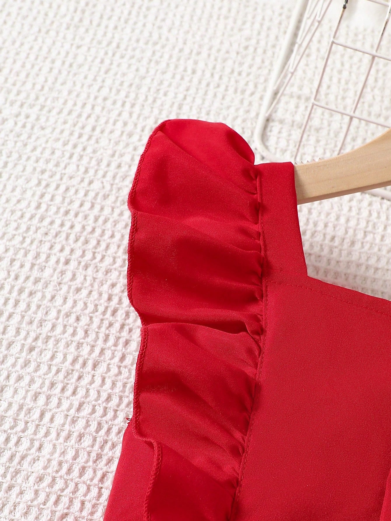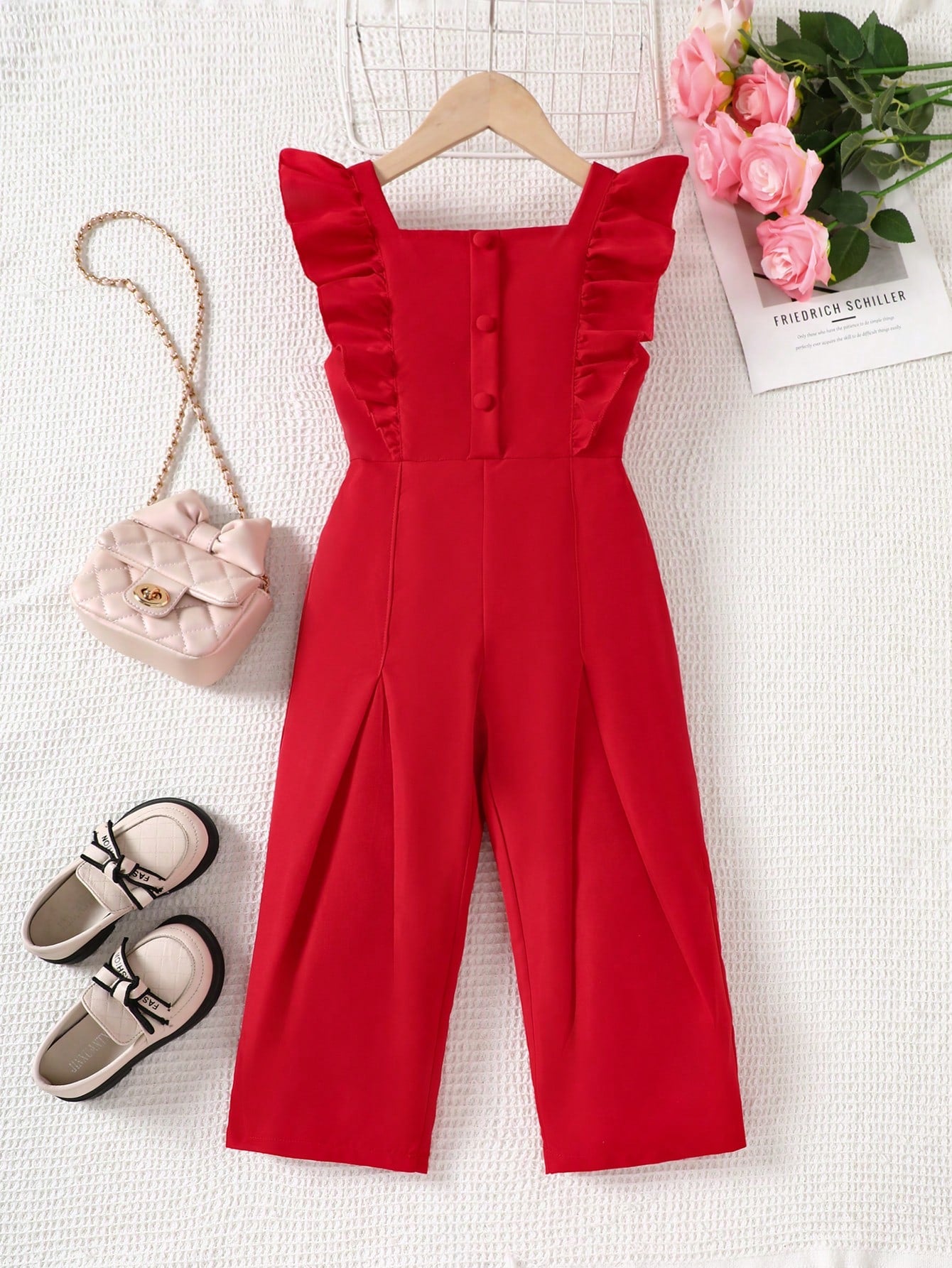 kids Young Girl' Ruffle Trim Wide Leg Jumpsuit