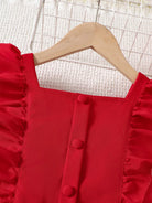 Young Girl' Ruffle Trim Wide Leg Jumpsuit