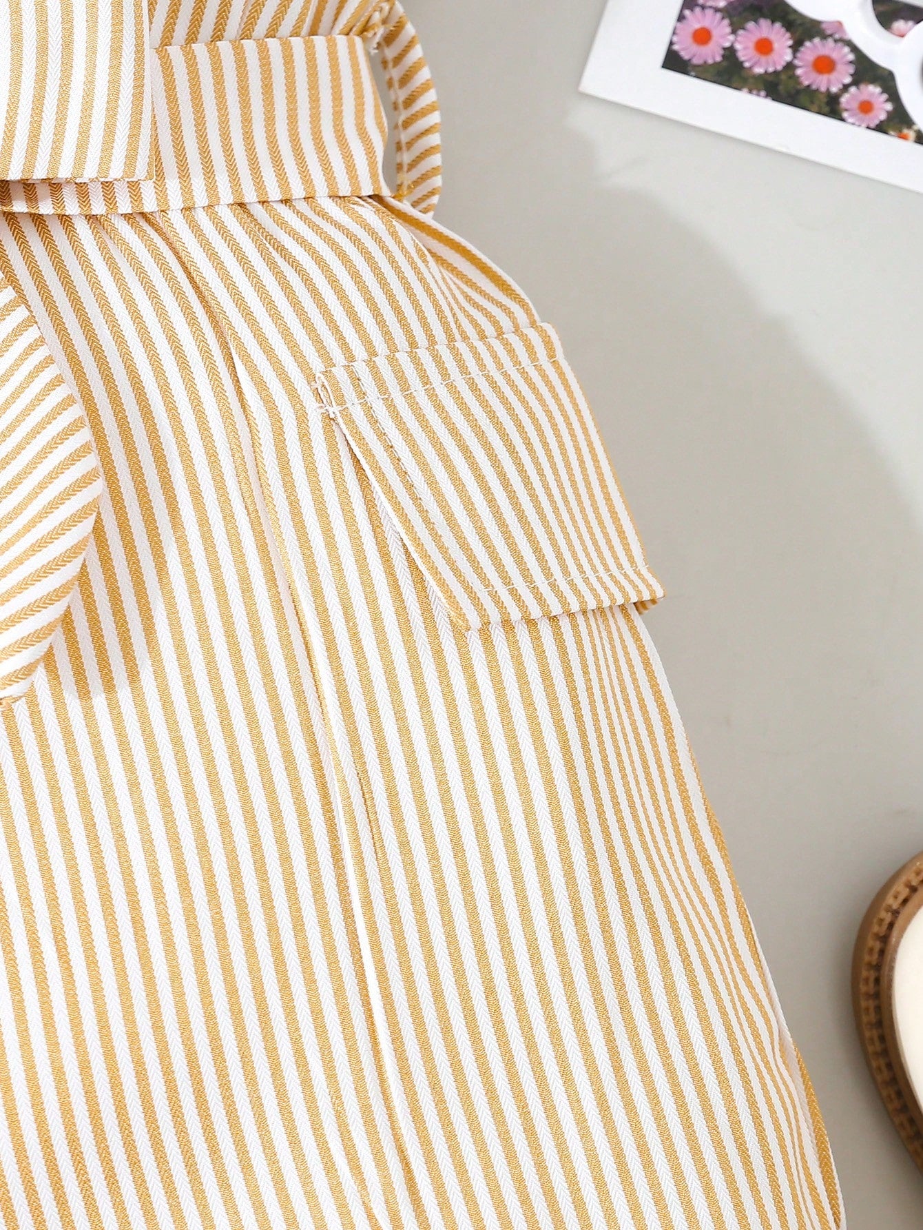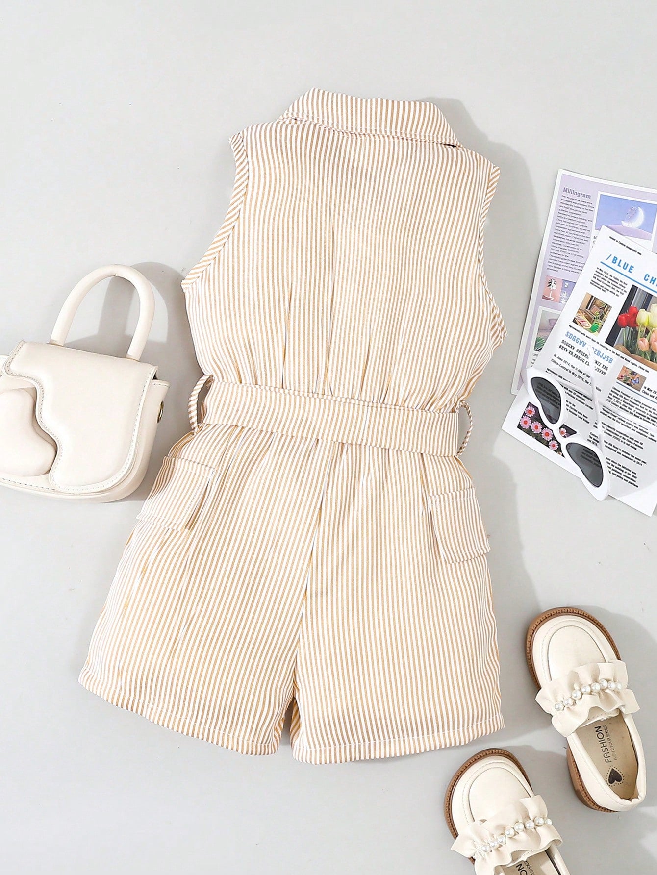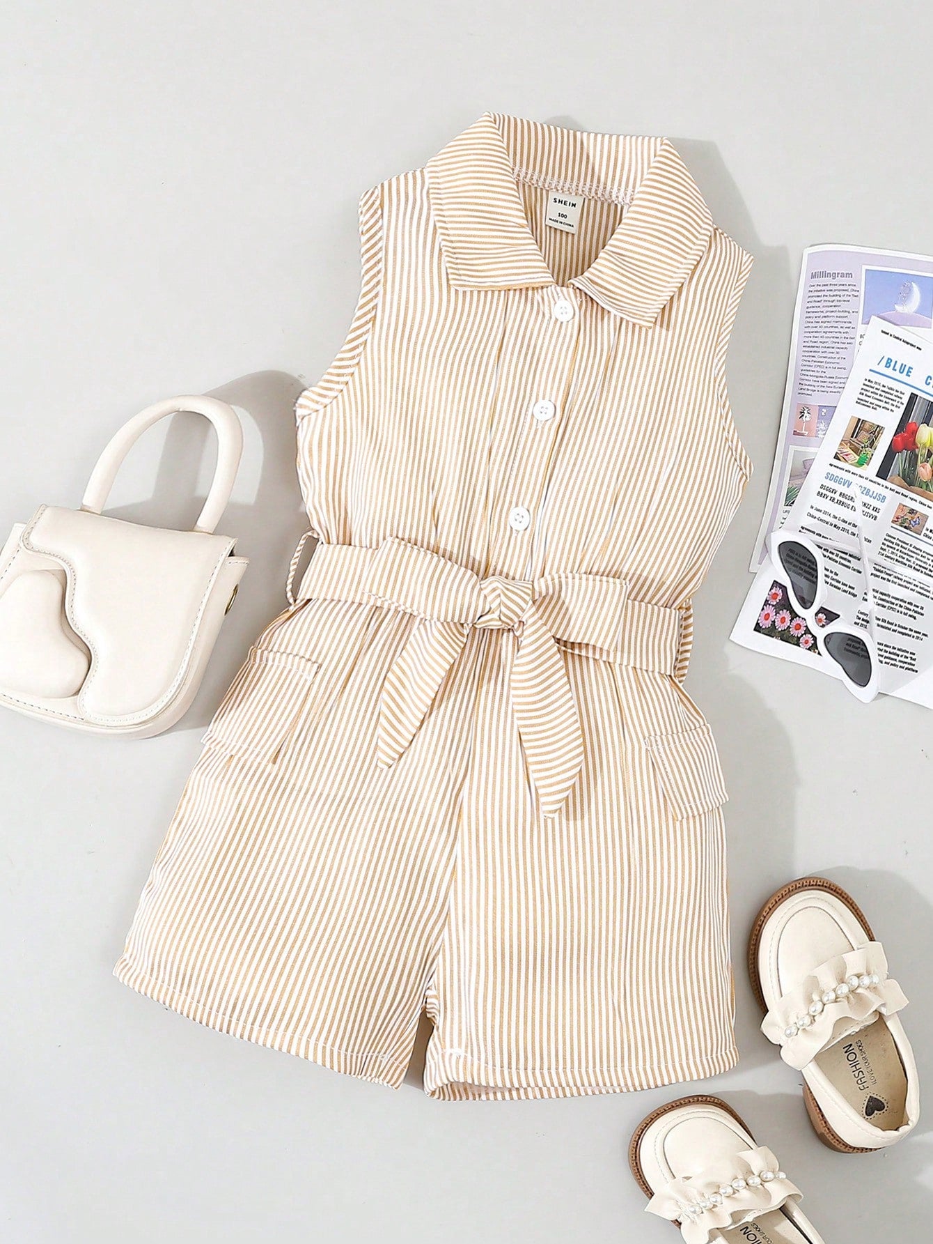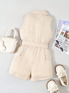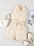 Young Girls' Fashionable Stripe Button Down Sleeveless Romper, Summer