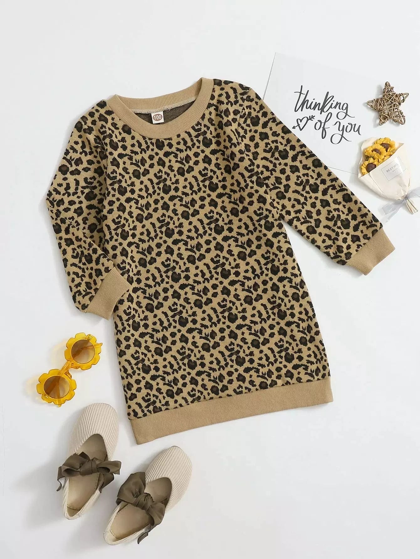 Kids - Toddler Girls Leopard Print Sweatshirt Dress
