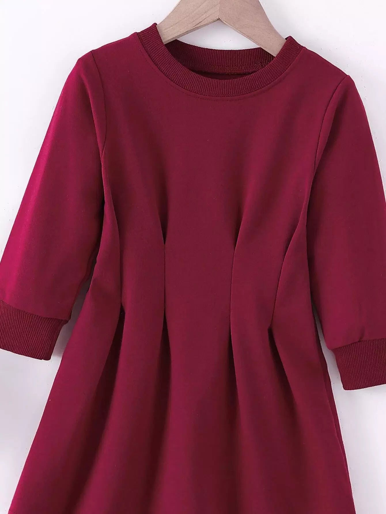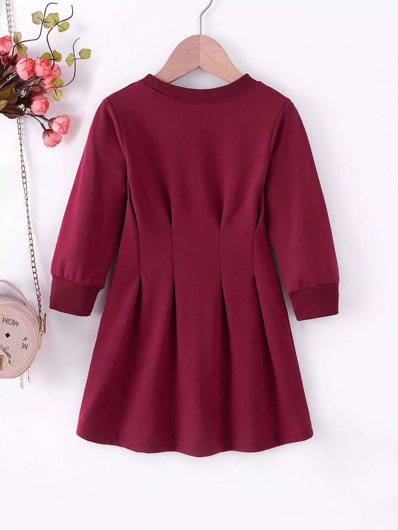 Toddler Girls Solid Plicated Sweatshirt Dress