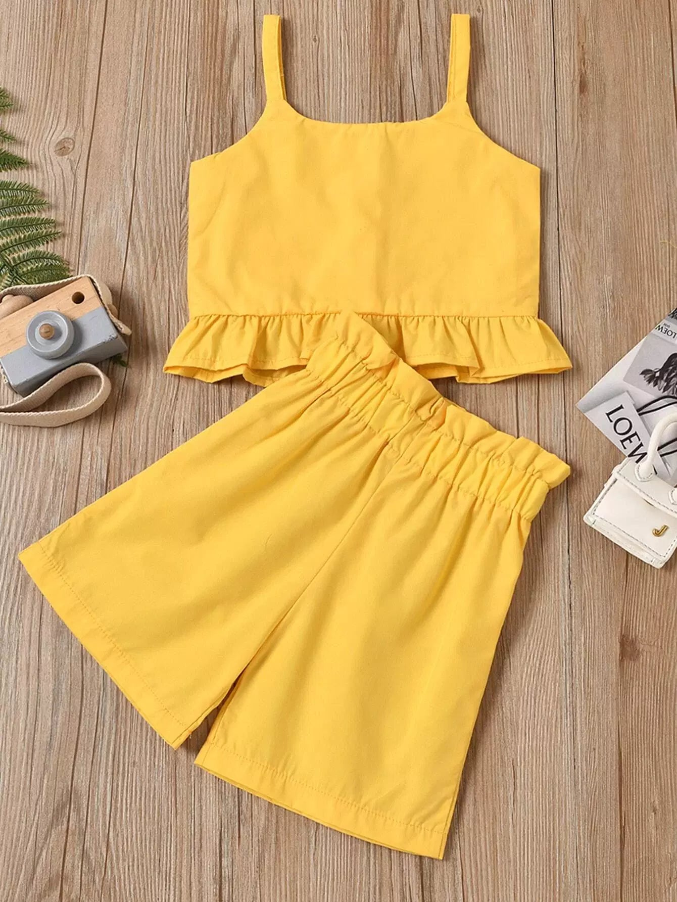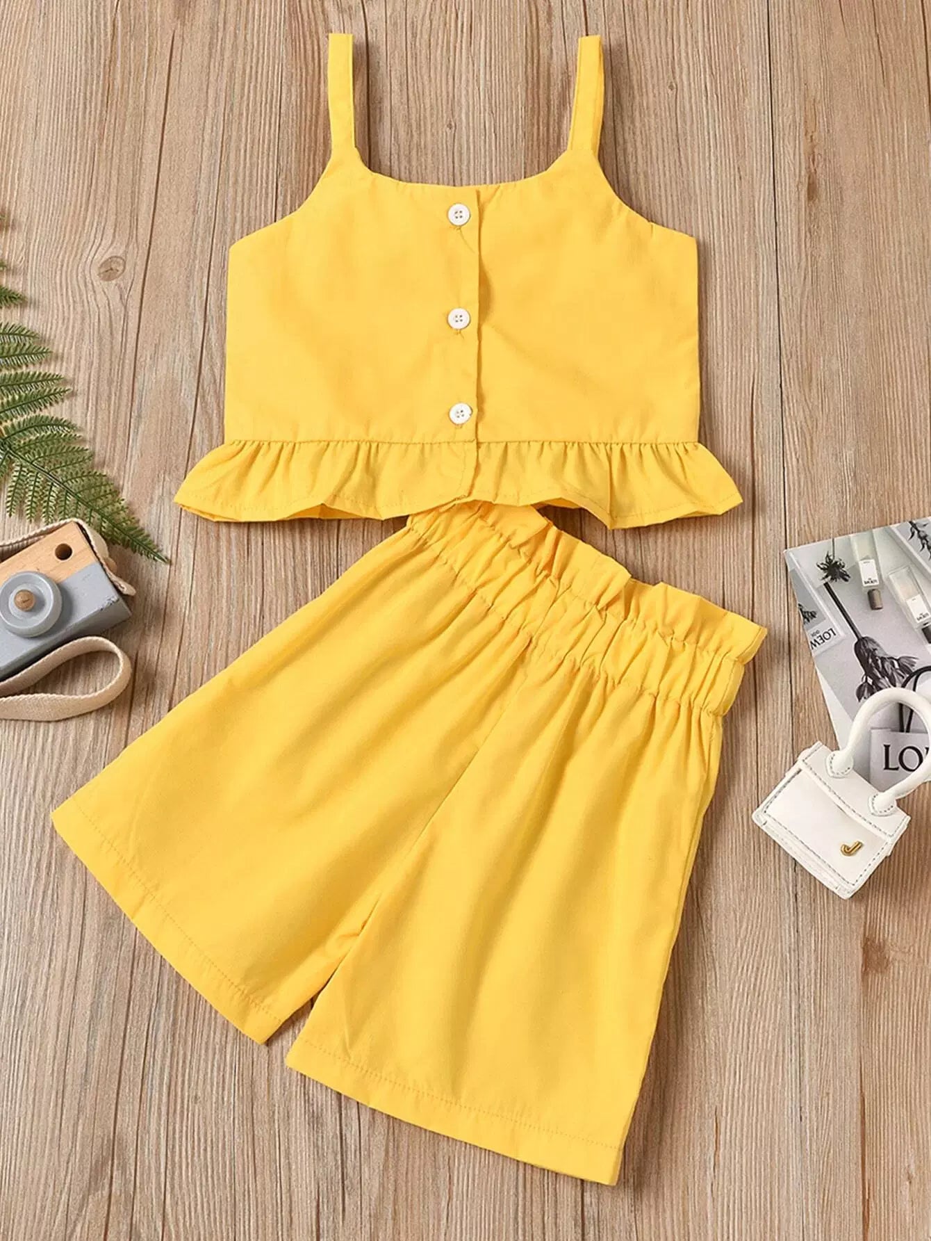 Toddler Girls Button Ruffle Hem Cami Top With Shorts