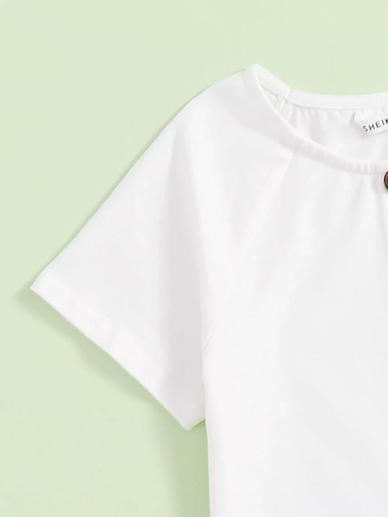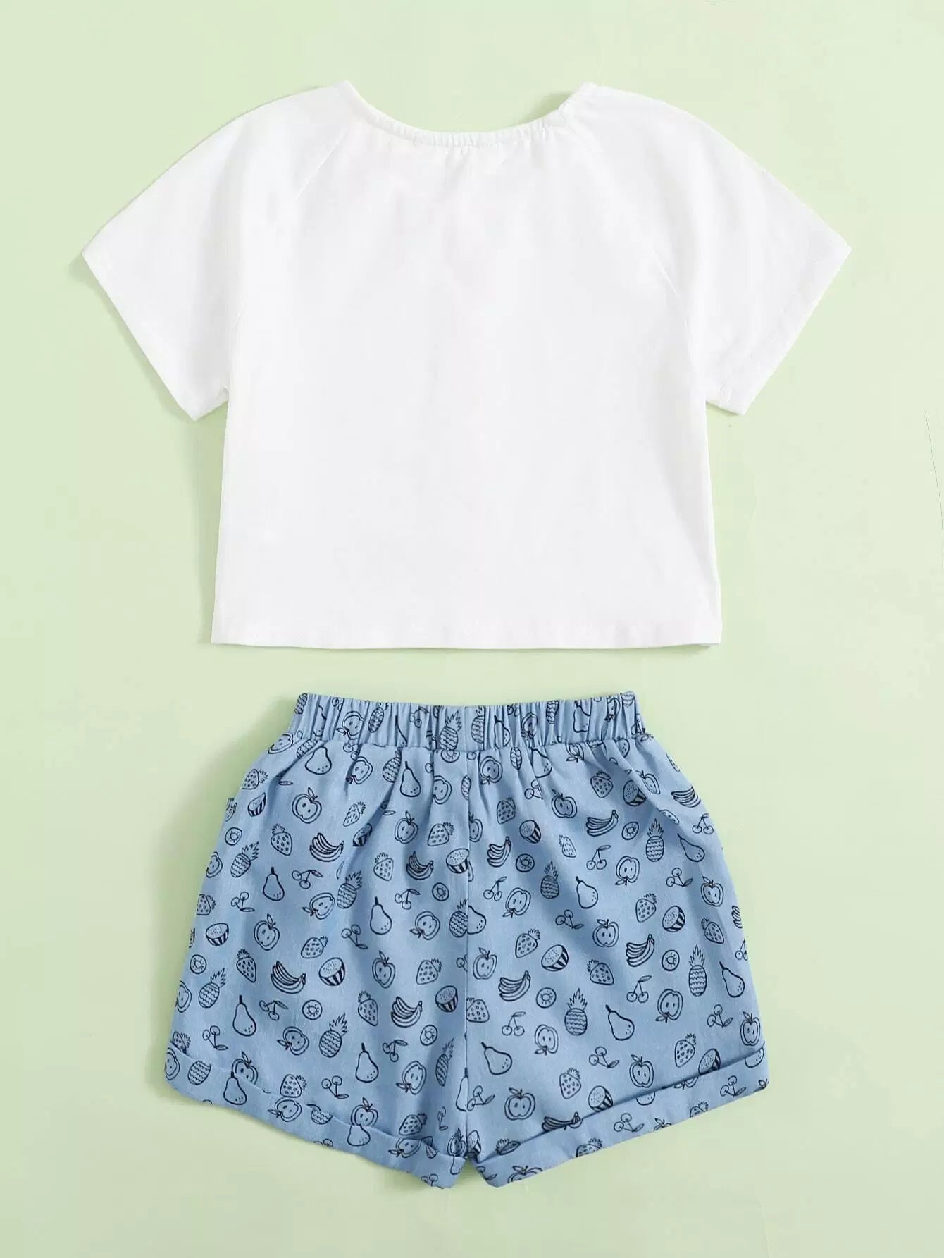 Toddler Girls Buttoned Front Raglan Sleeve Tee & Fruit Print Shorts Set