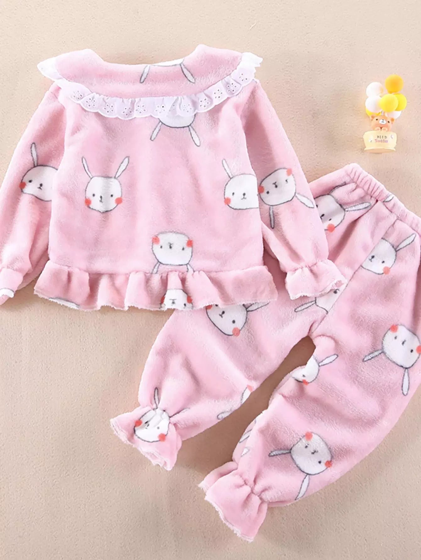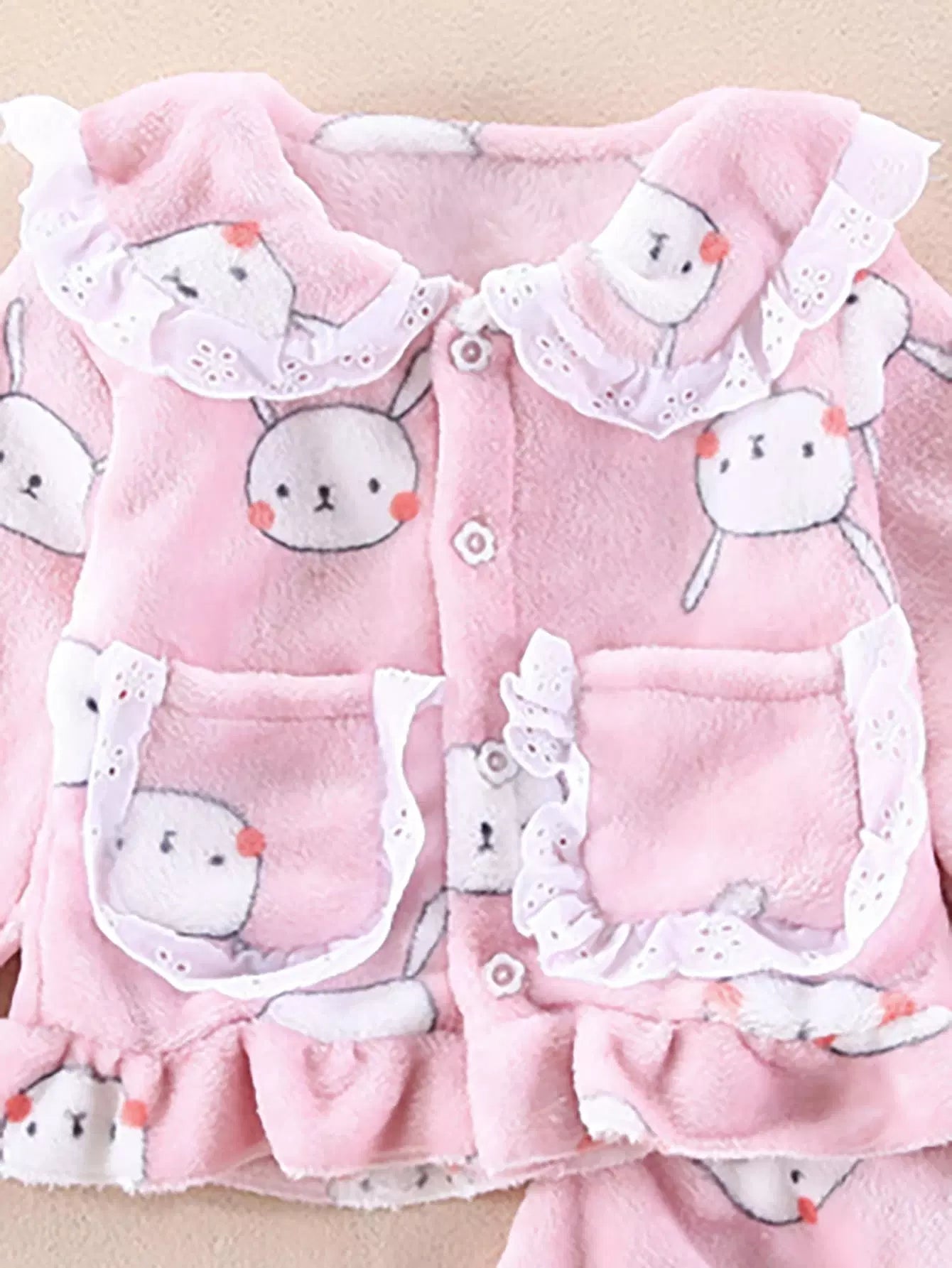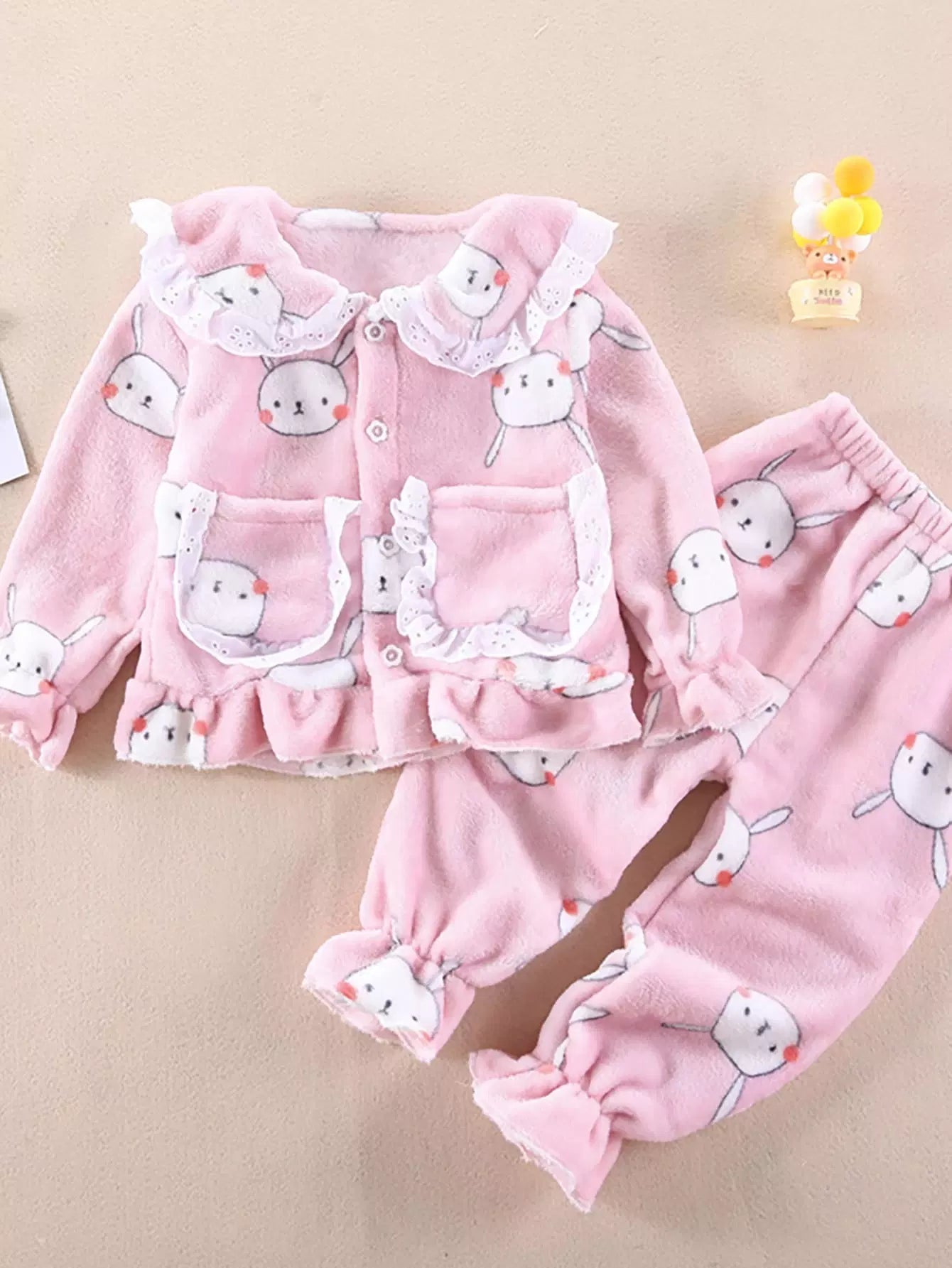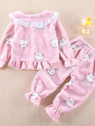 - Toddler Girls Cartoon Graphic Eyelet Embroidery Flounce Sleeve Flannel Coat & Pants