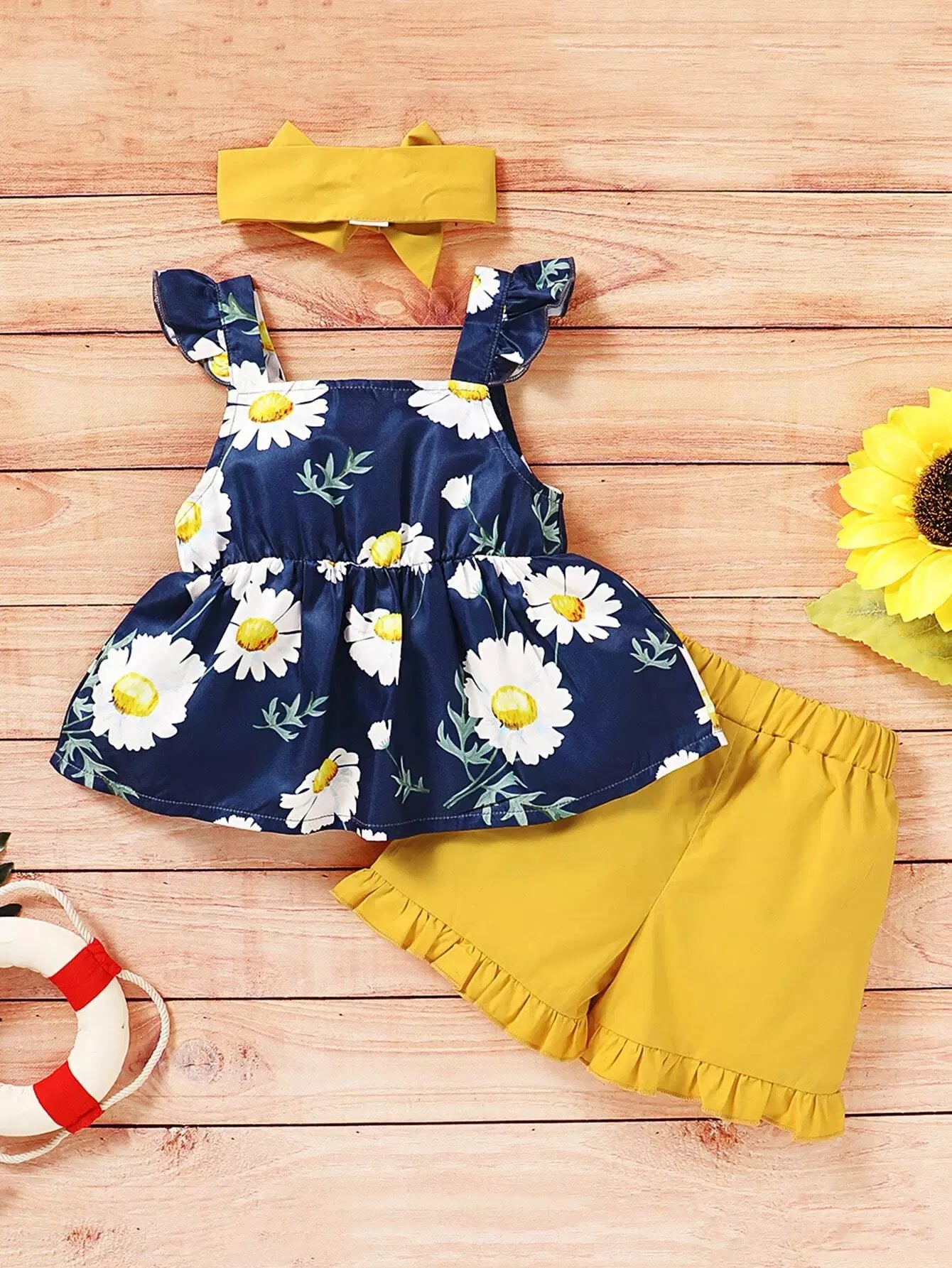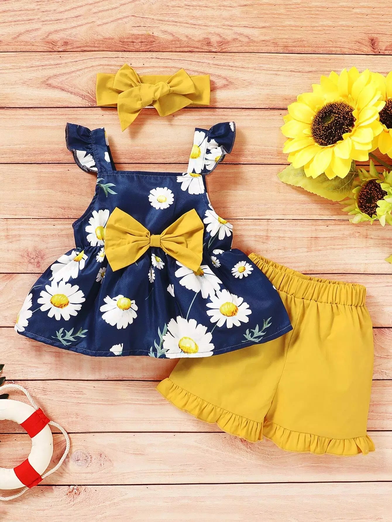 Toddler Girls Daisy Floral Bow Front Top With Shorts With Headband