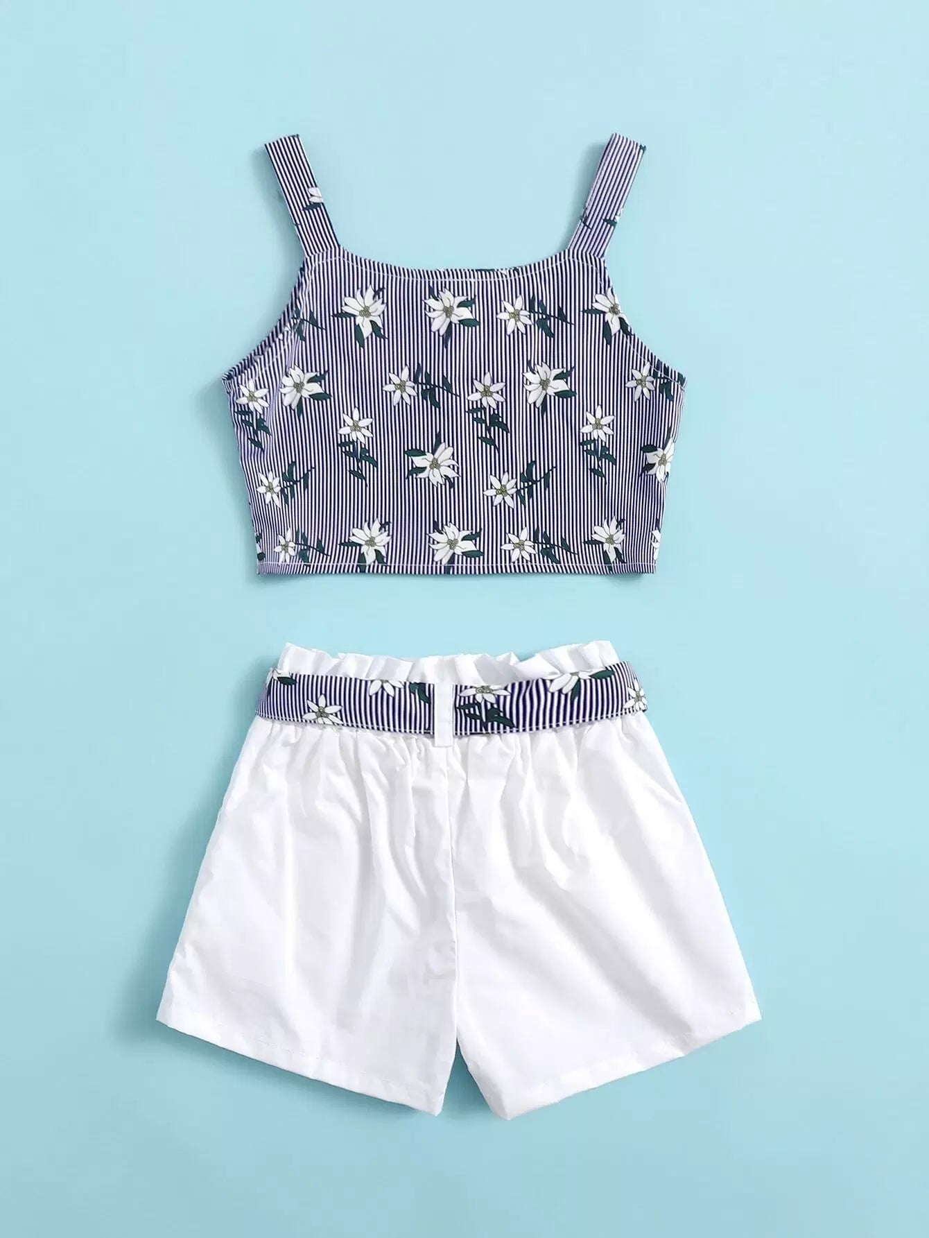 Toddler Girls Floral & Striped Cami Top & Shorts Set