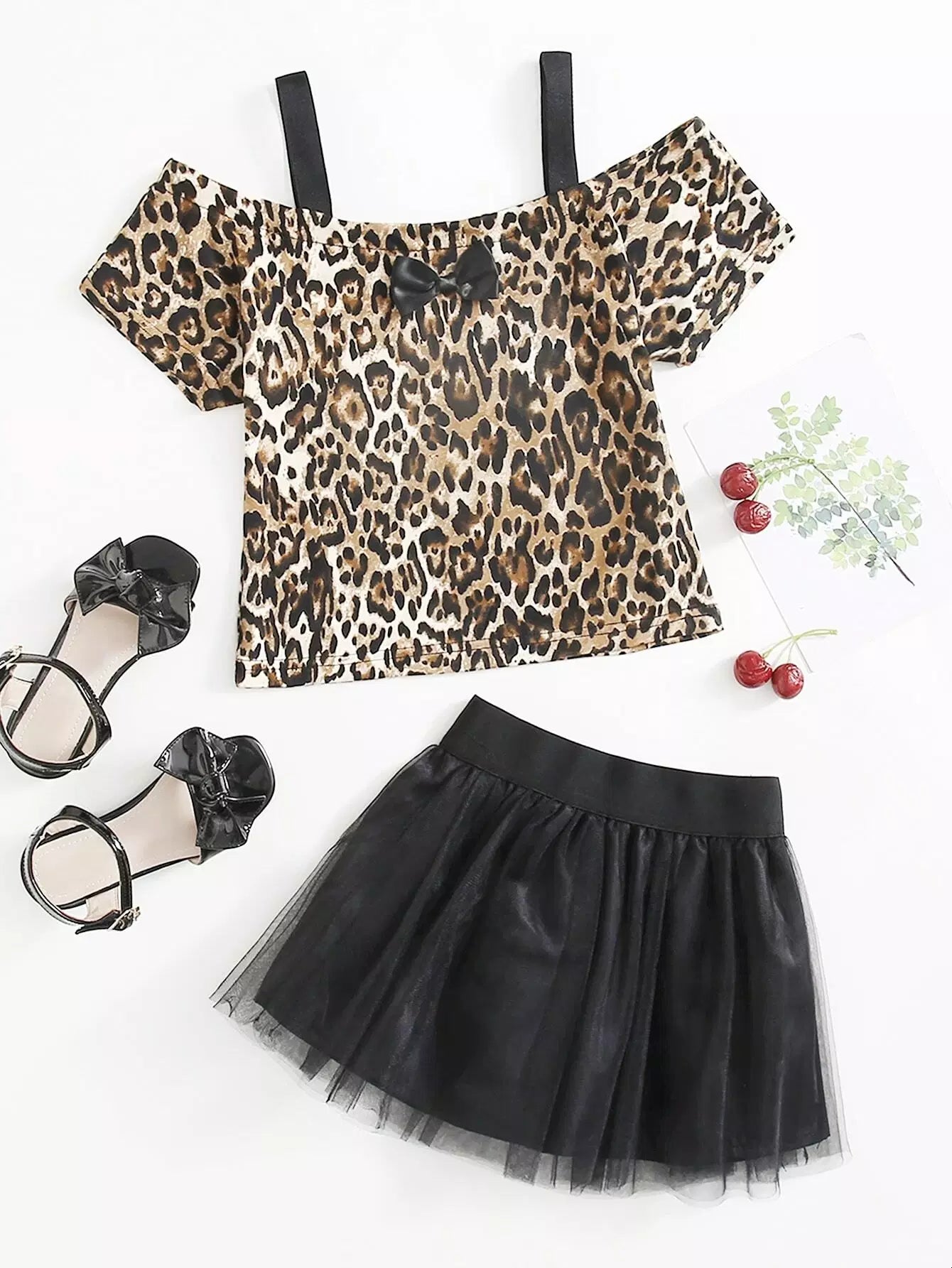 Toddler Girls Leopard Print Bow Front Tee & Skirt