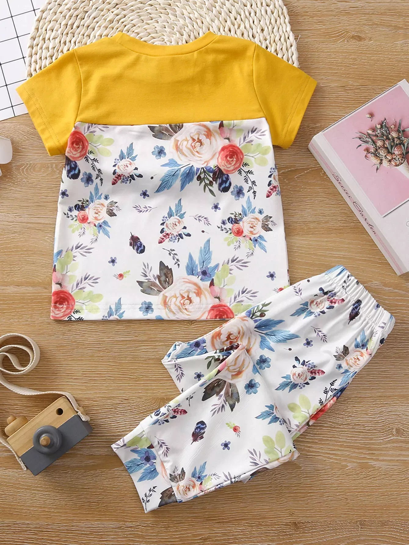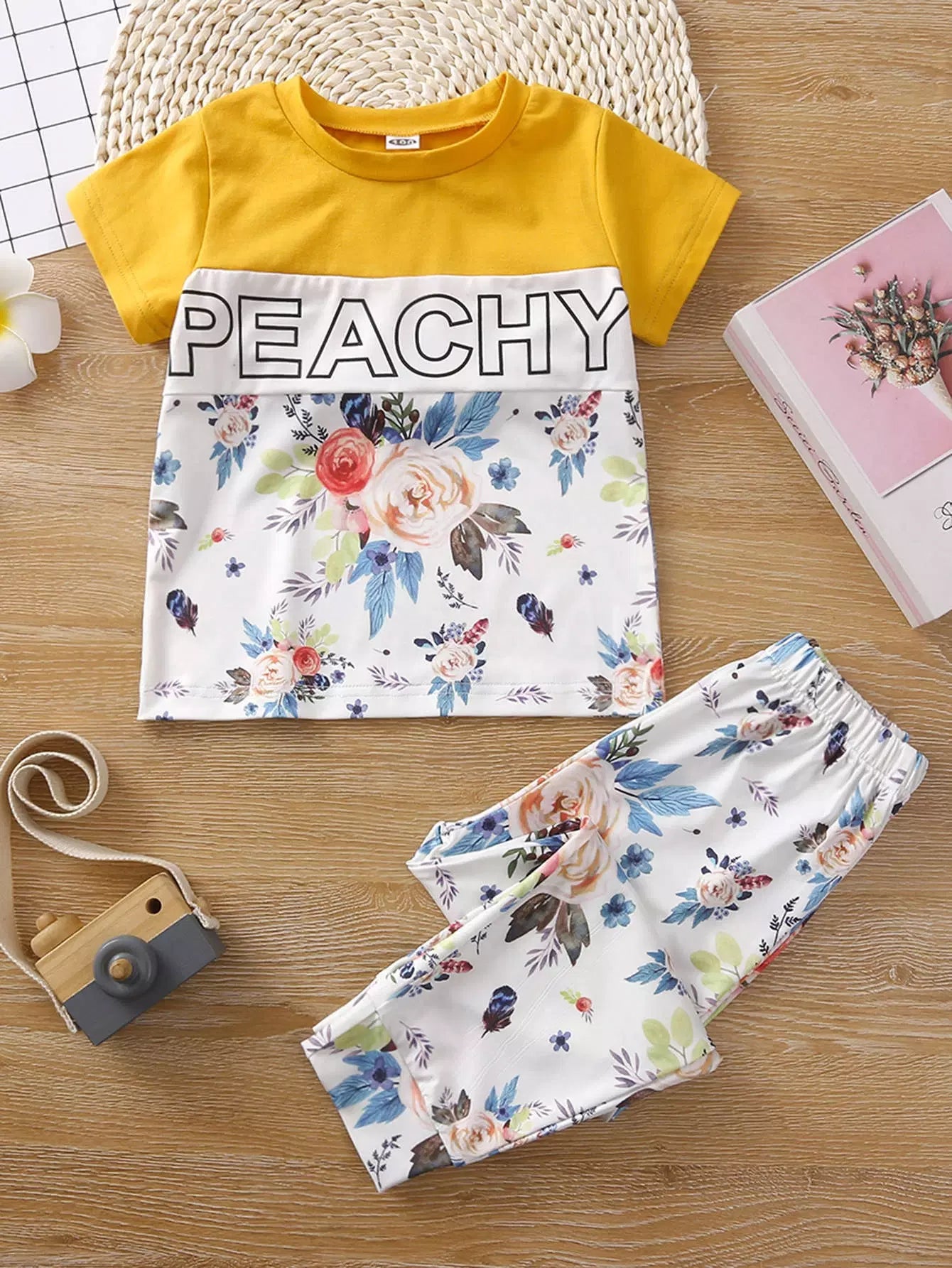 Toddler Girls Letter And Floral Print Tee & Sweatpants