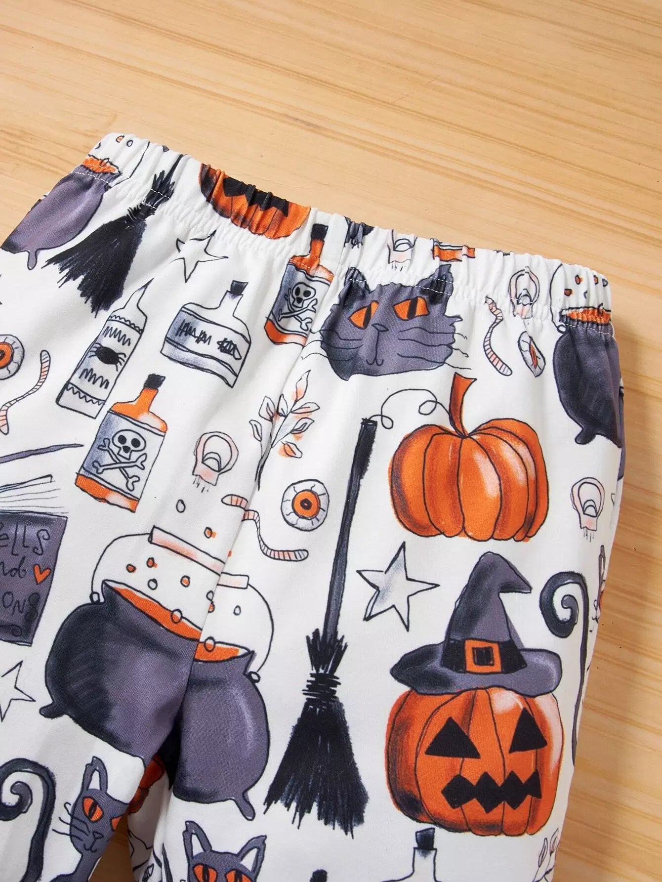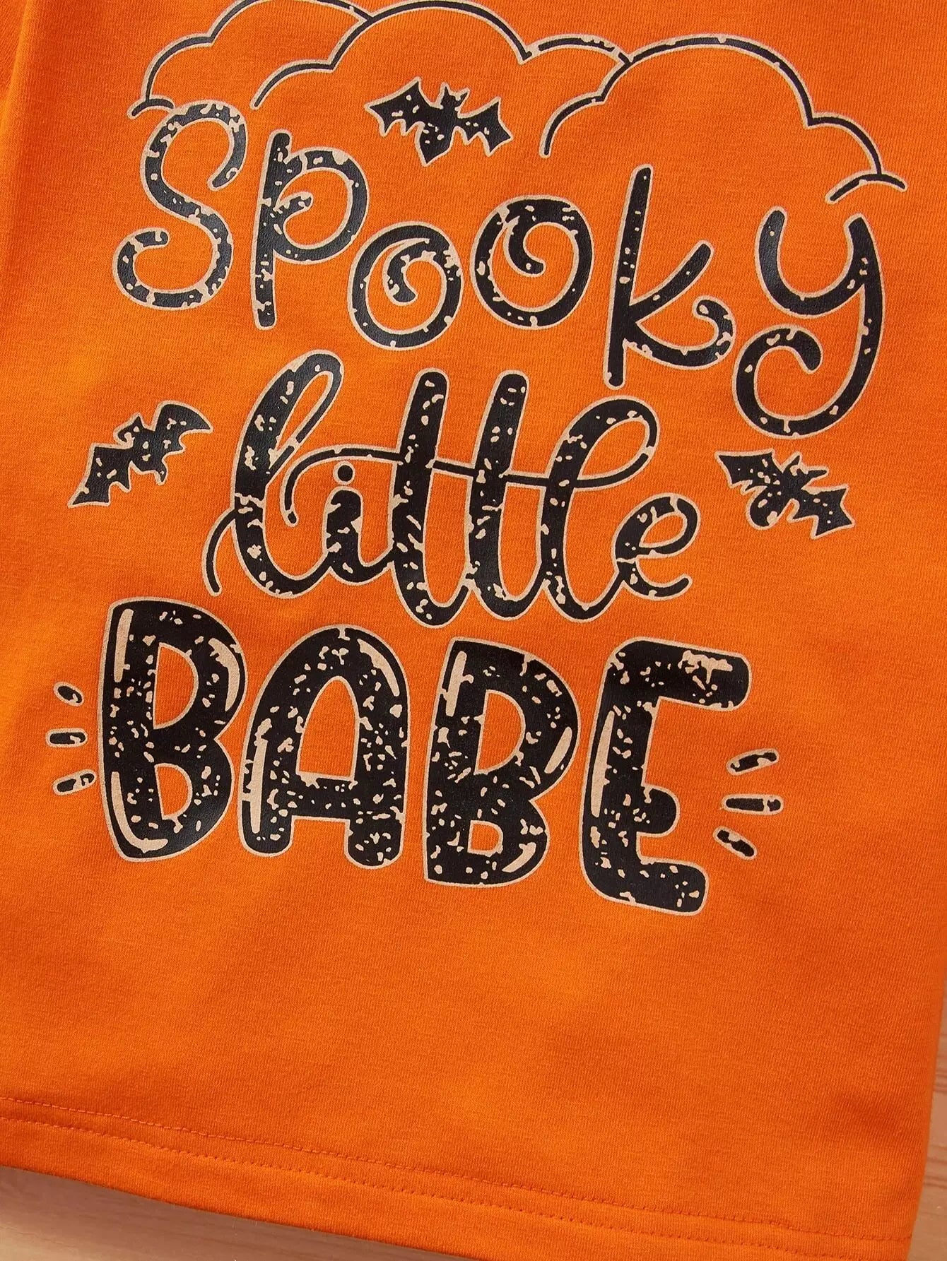 Kids - Toddler Girls Letter Graphic Tee & Halloween Pumpkin Print Flare Leg Pants
