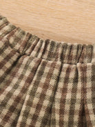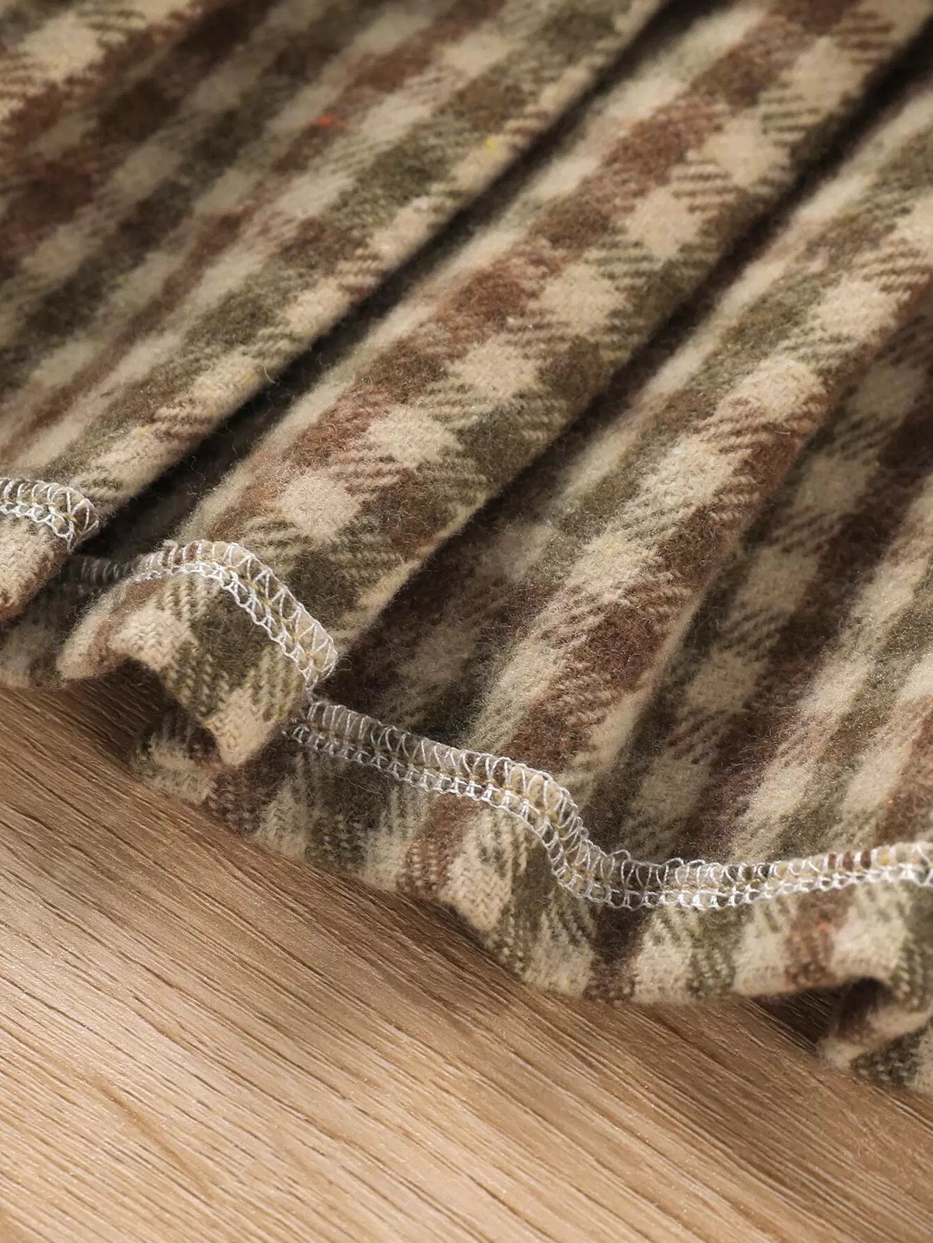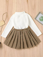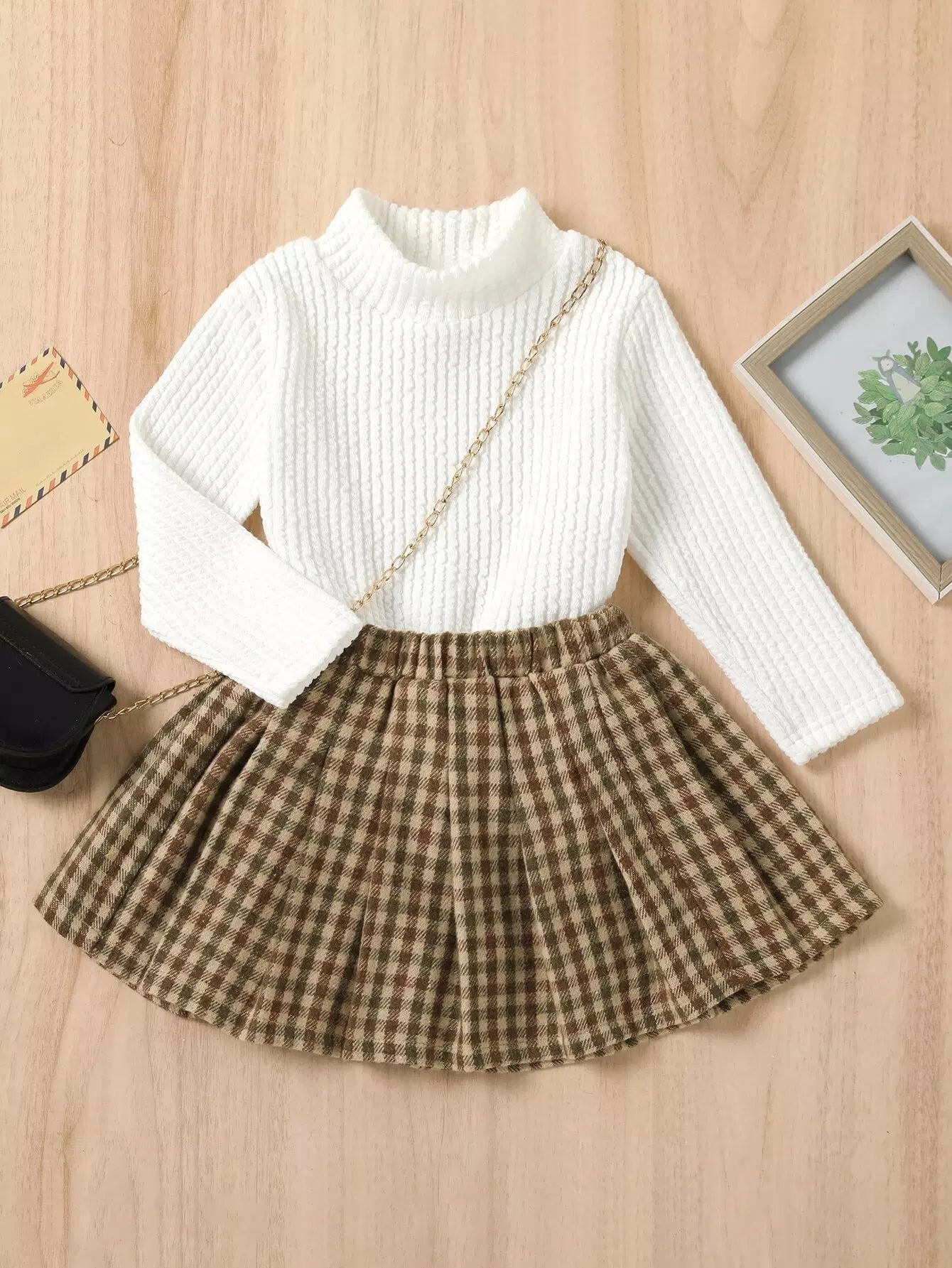 Toddler Girls Mock Neck Tee & Gingham Pleated Skirt Without Bag