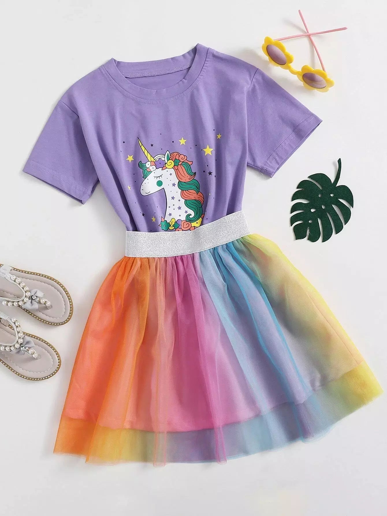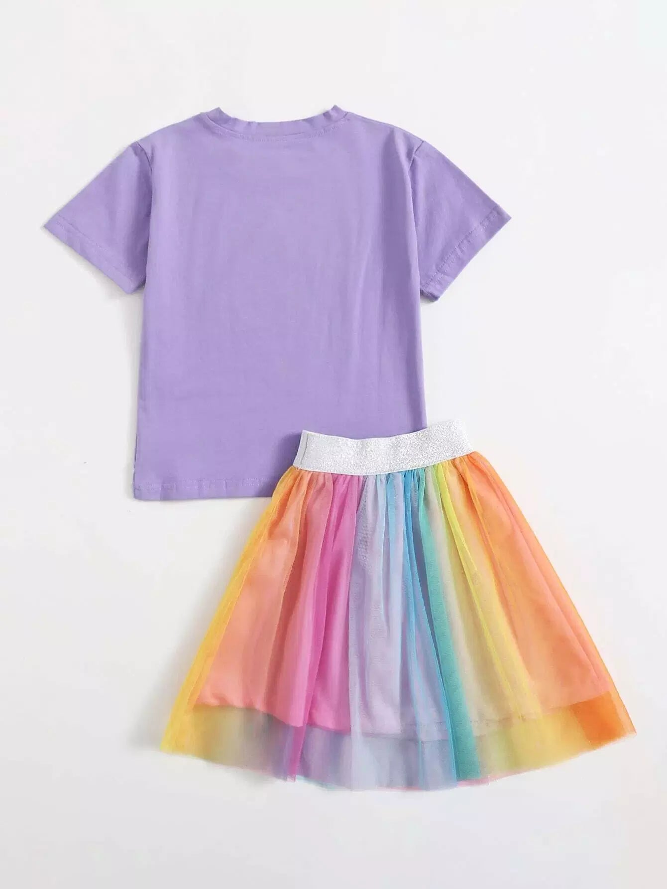 Toddler Girls Slogan & Cartoon Graphic Tee With Mesh Skirt