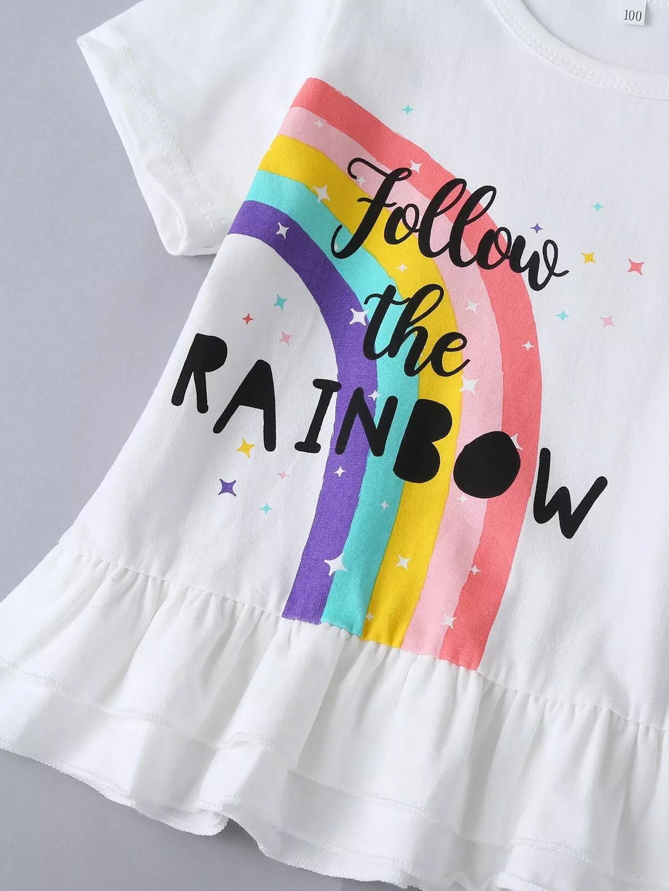 Toddler Girls Slogan & Rainbow Print Ruffle Tee & Leggings