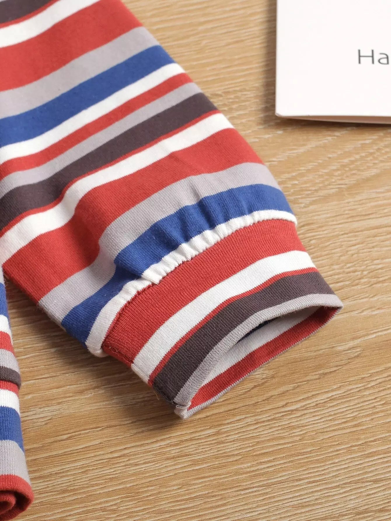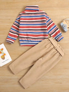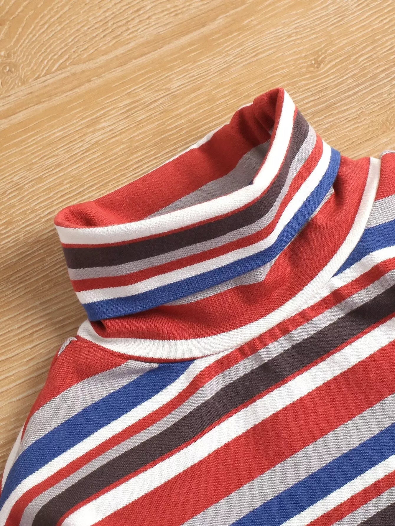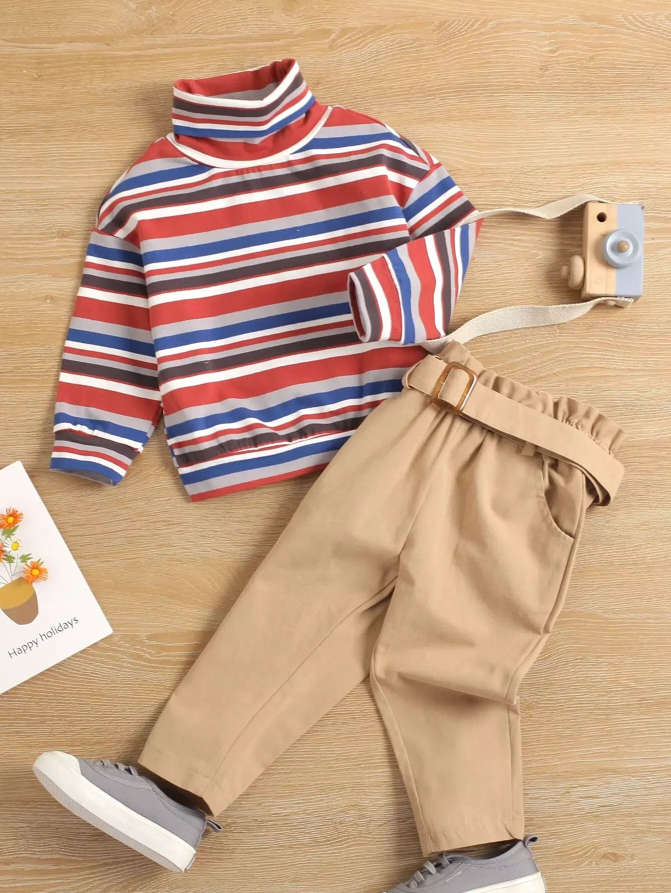 Toddler Girls Striped Print Turtleneck Sweatshirt Pants Without Belt