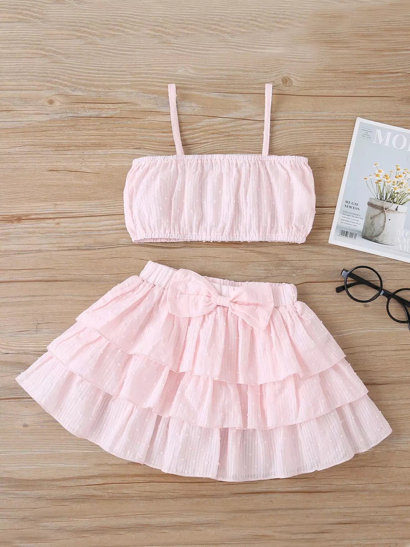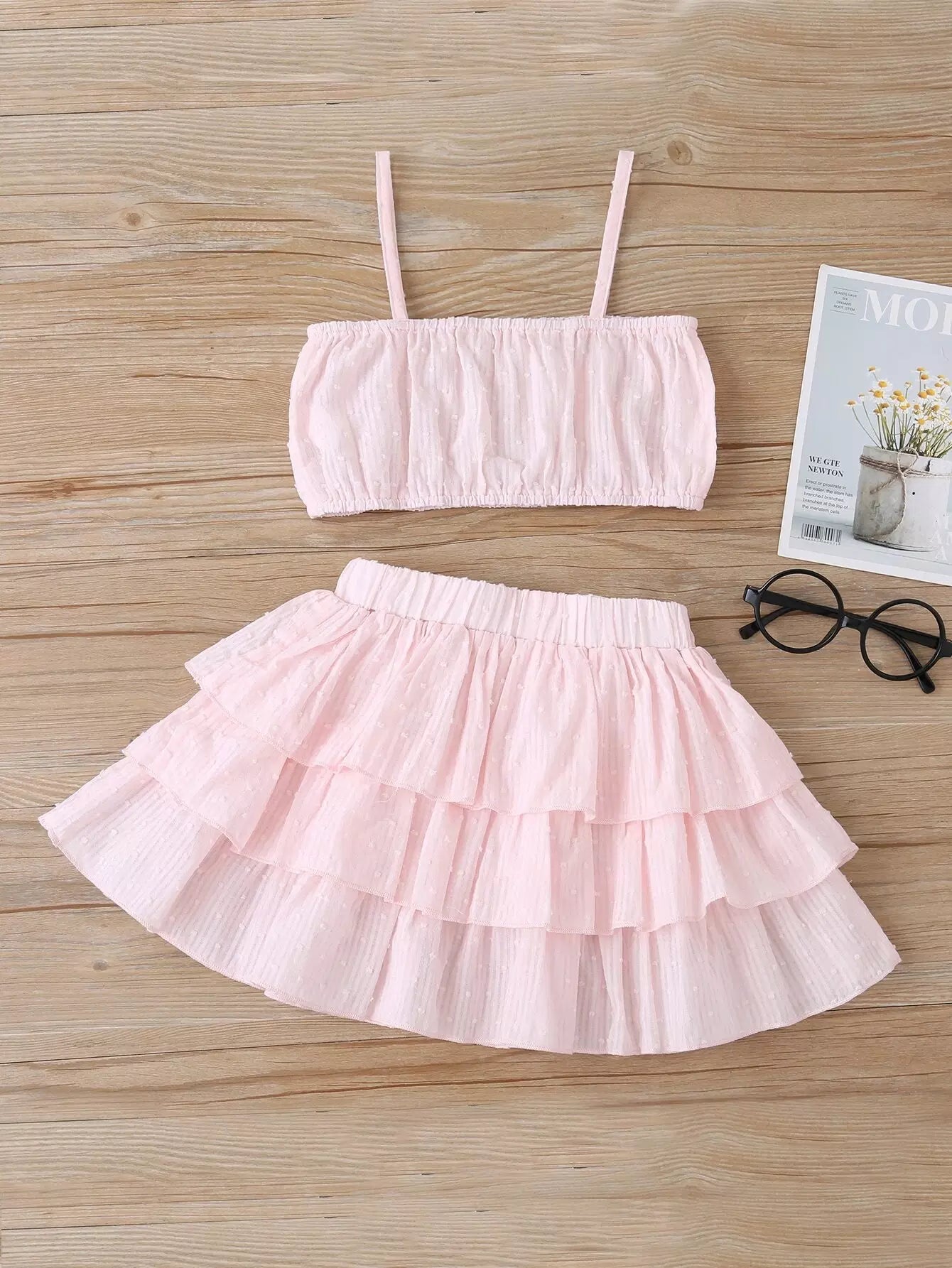 Toddler Girls Swiss Dot Cami Top & Layered Skirt
