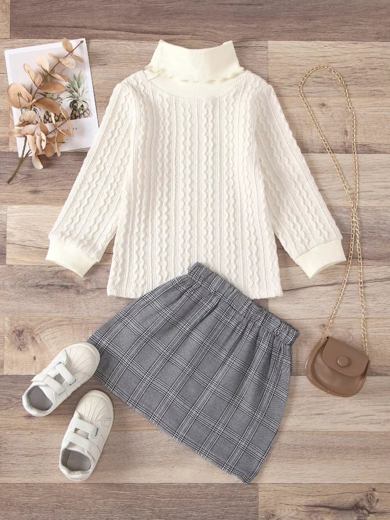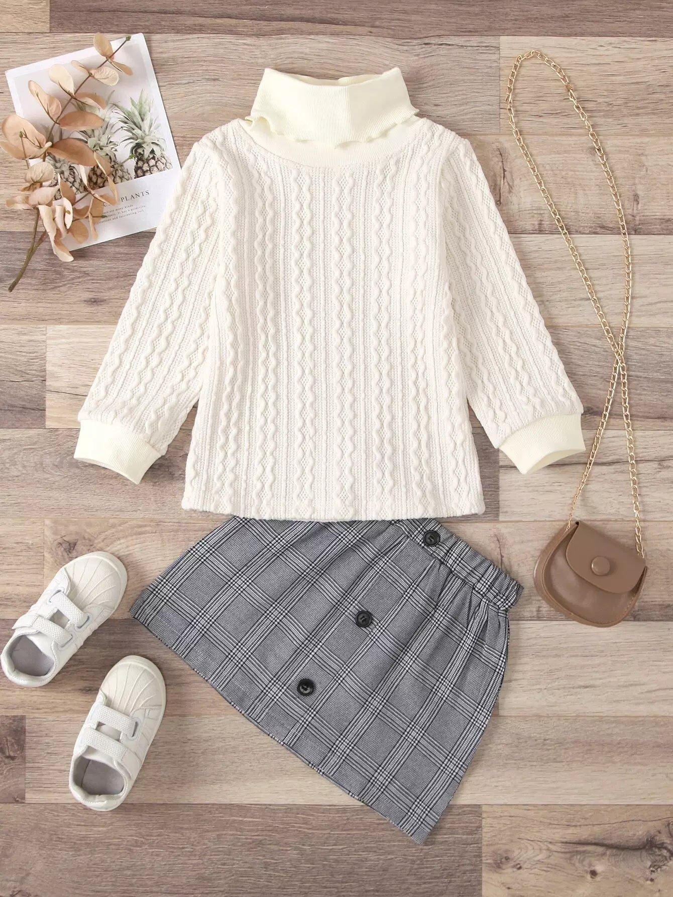 Kids - Toddler Girls Turtleneck Textured Tee & Plaid Skirt
