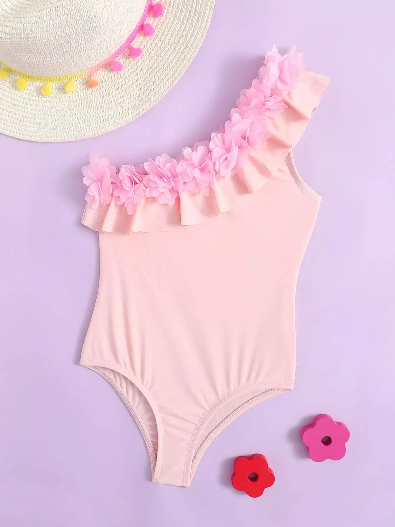 Toddler Girls Appliques One Shoulder One Piece Swimsuit