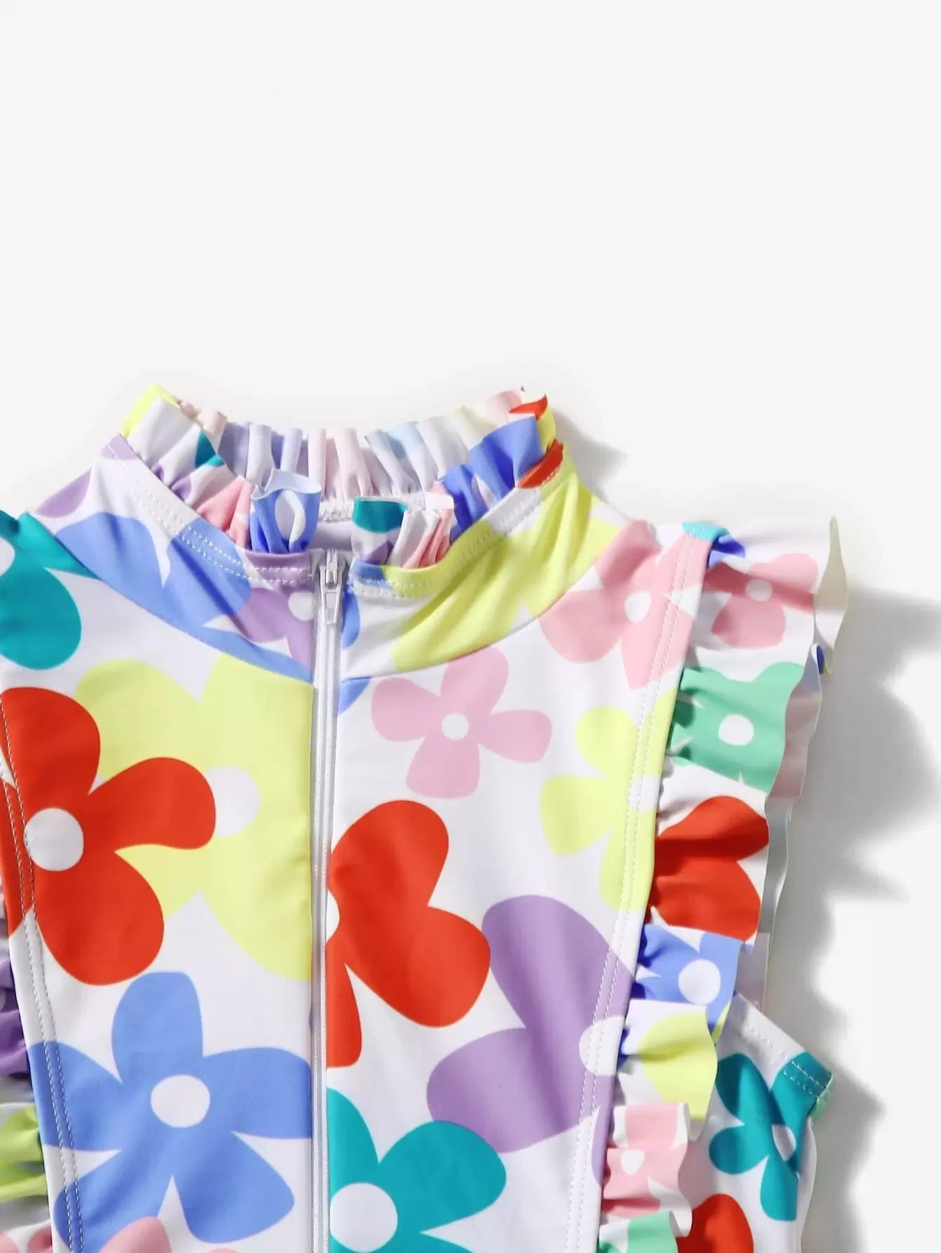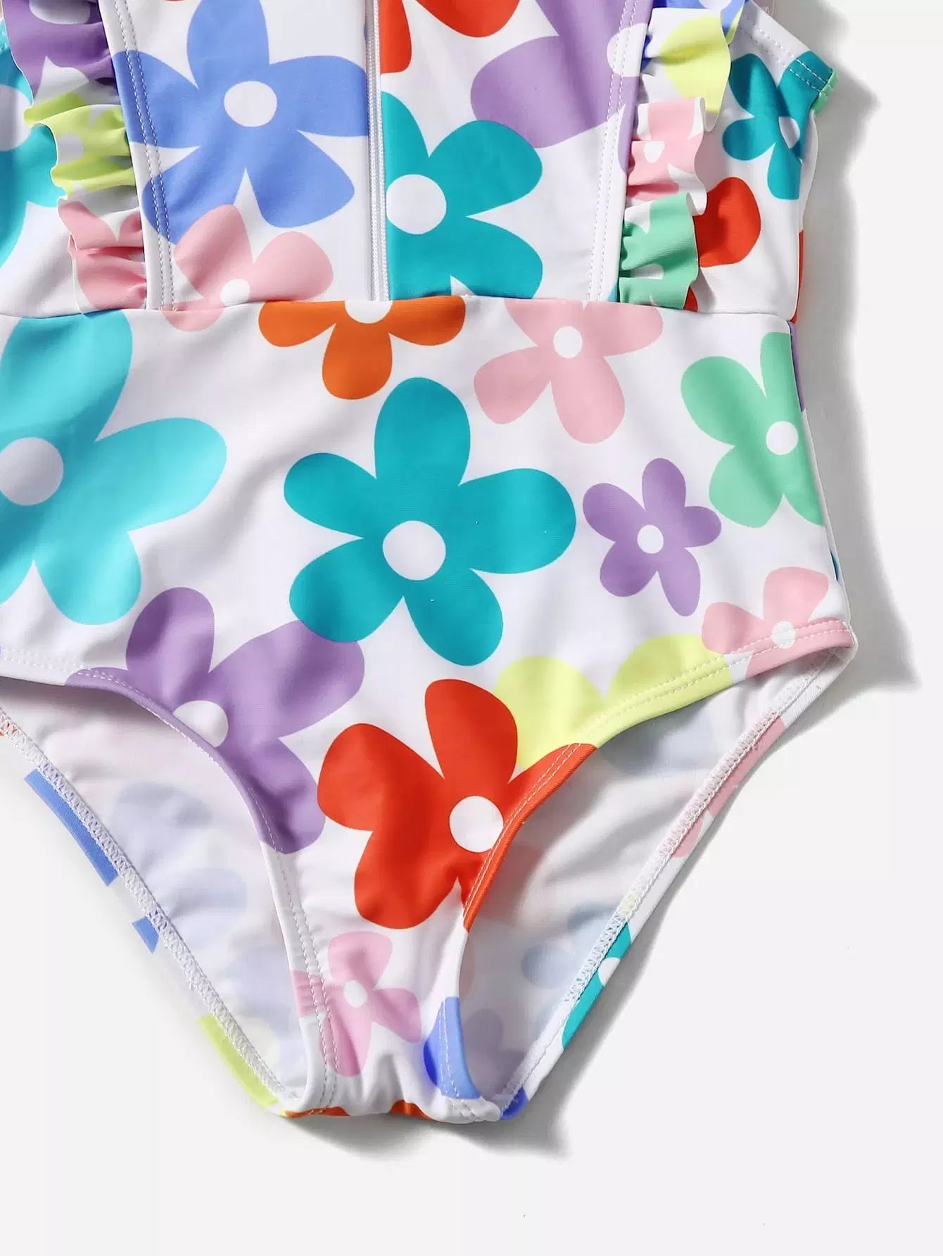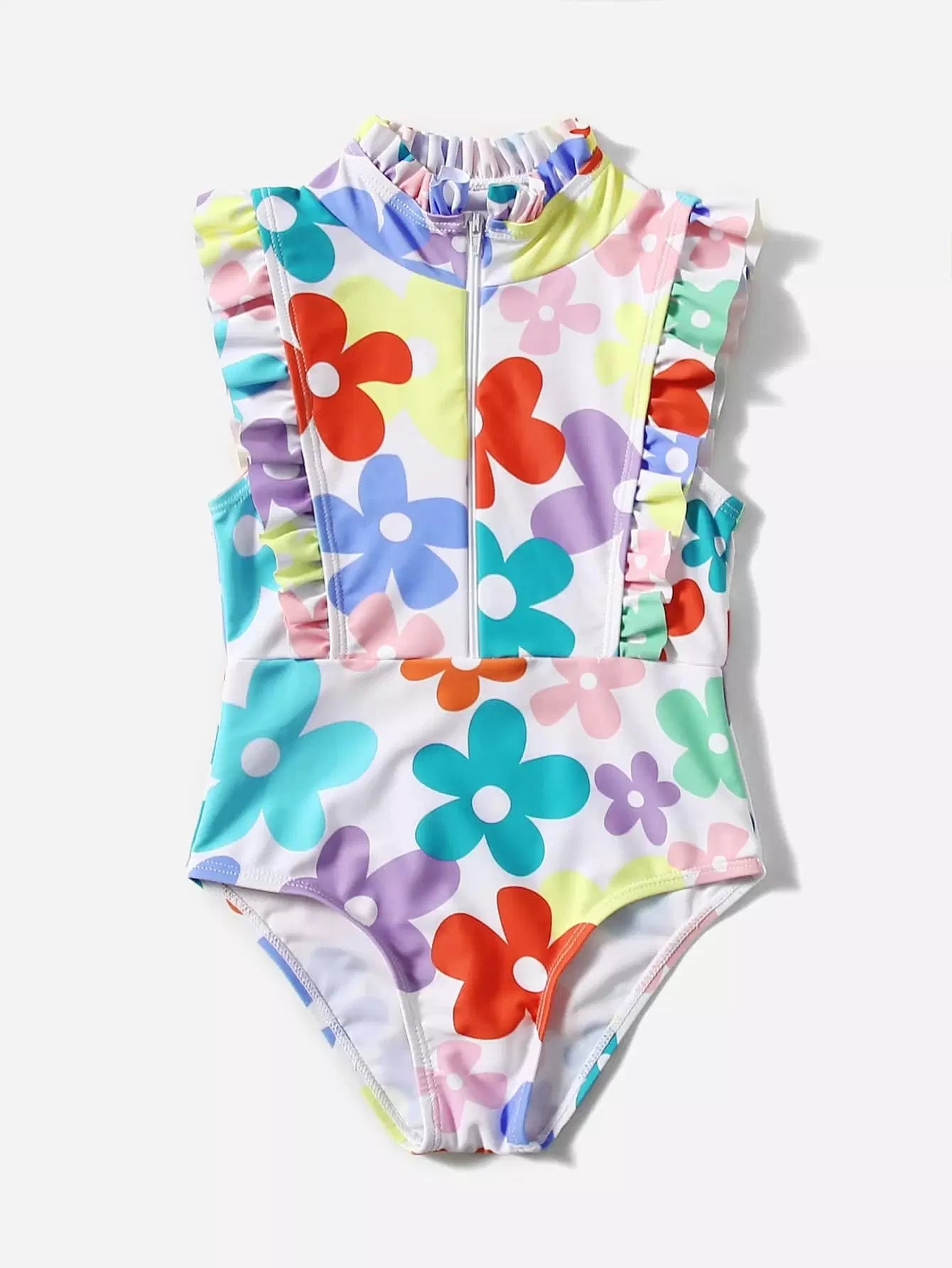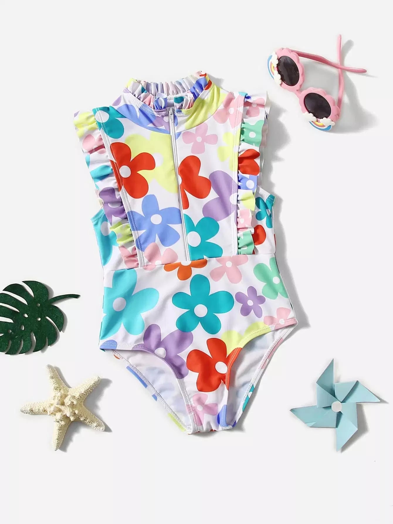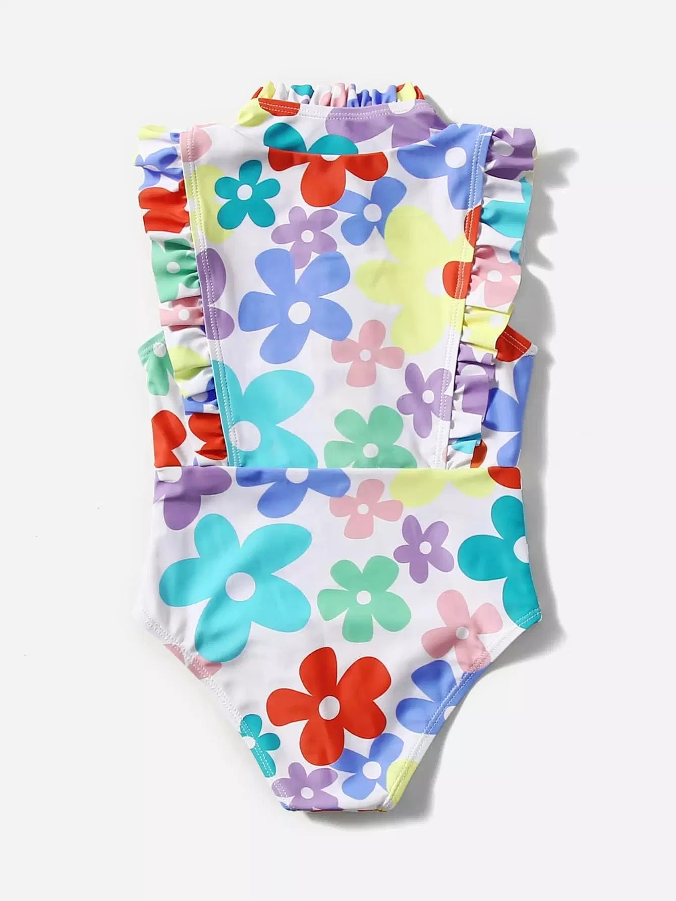 Toddler Girls Floral Print Ruffle Trim One Piece Swimsuit