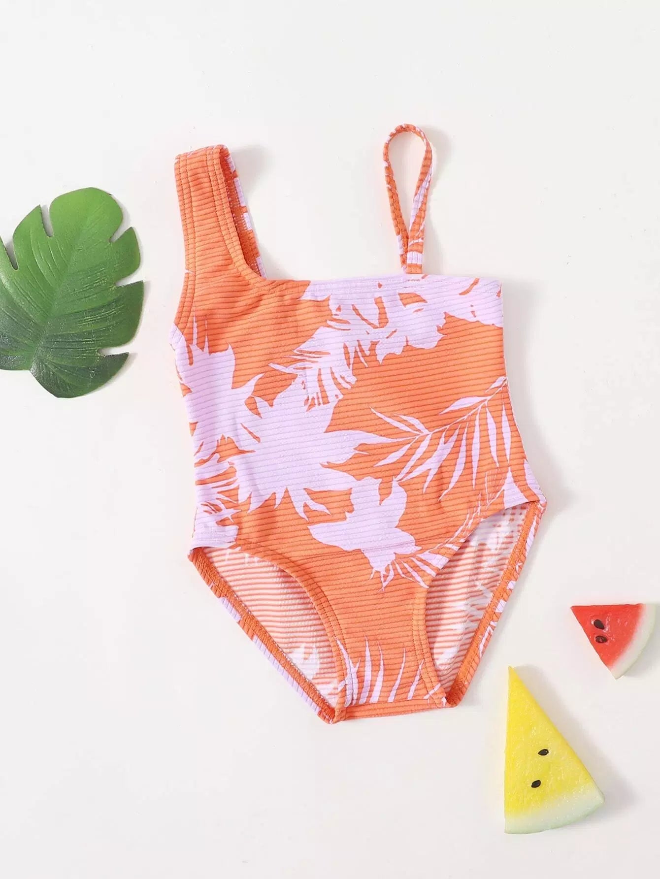 Toddler Girls Leaf Graphic Rib One Piece Swimsuit