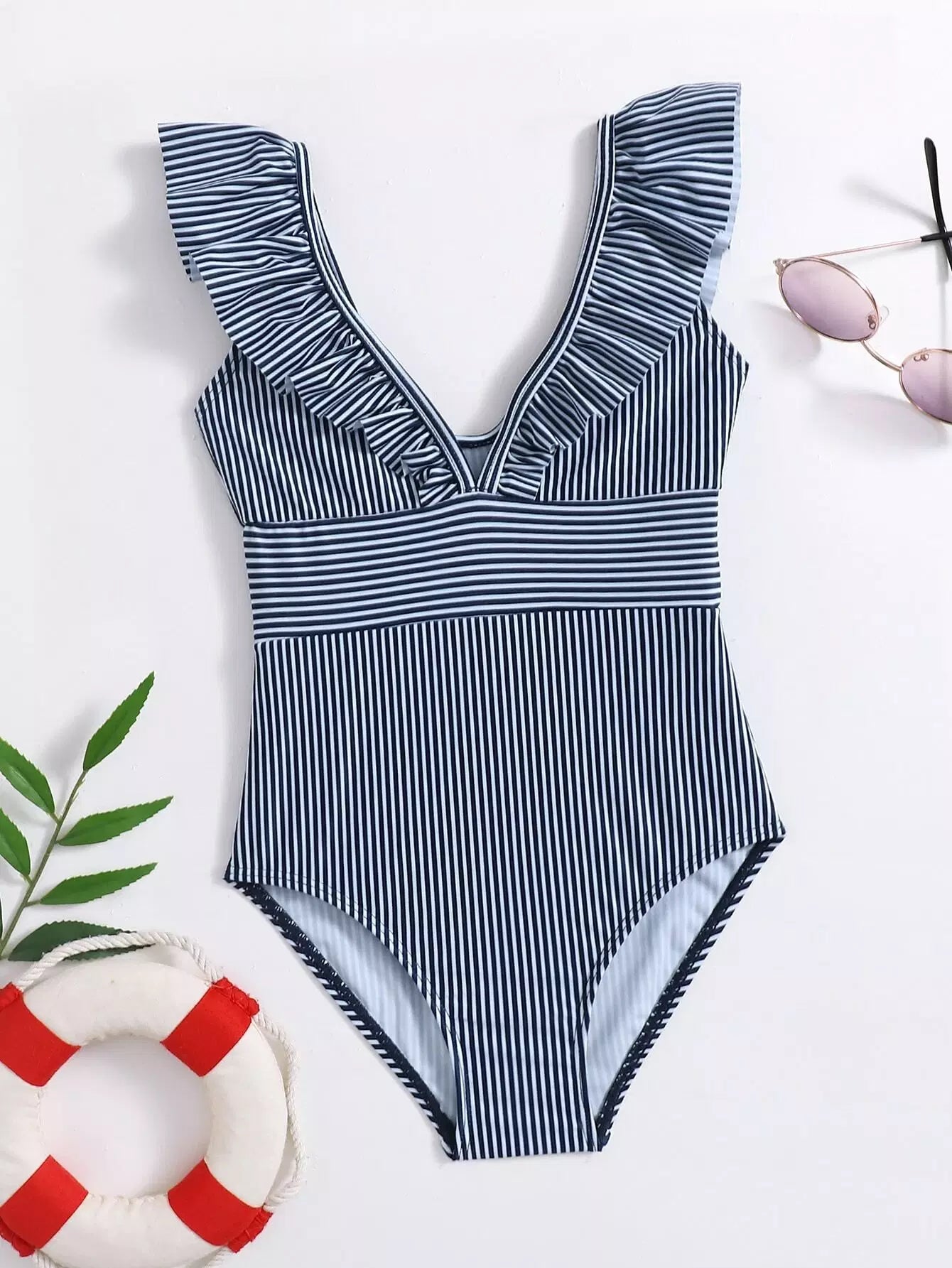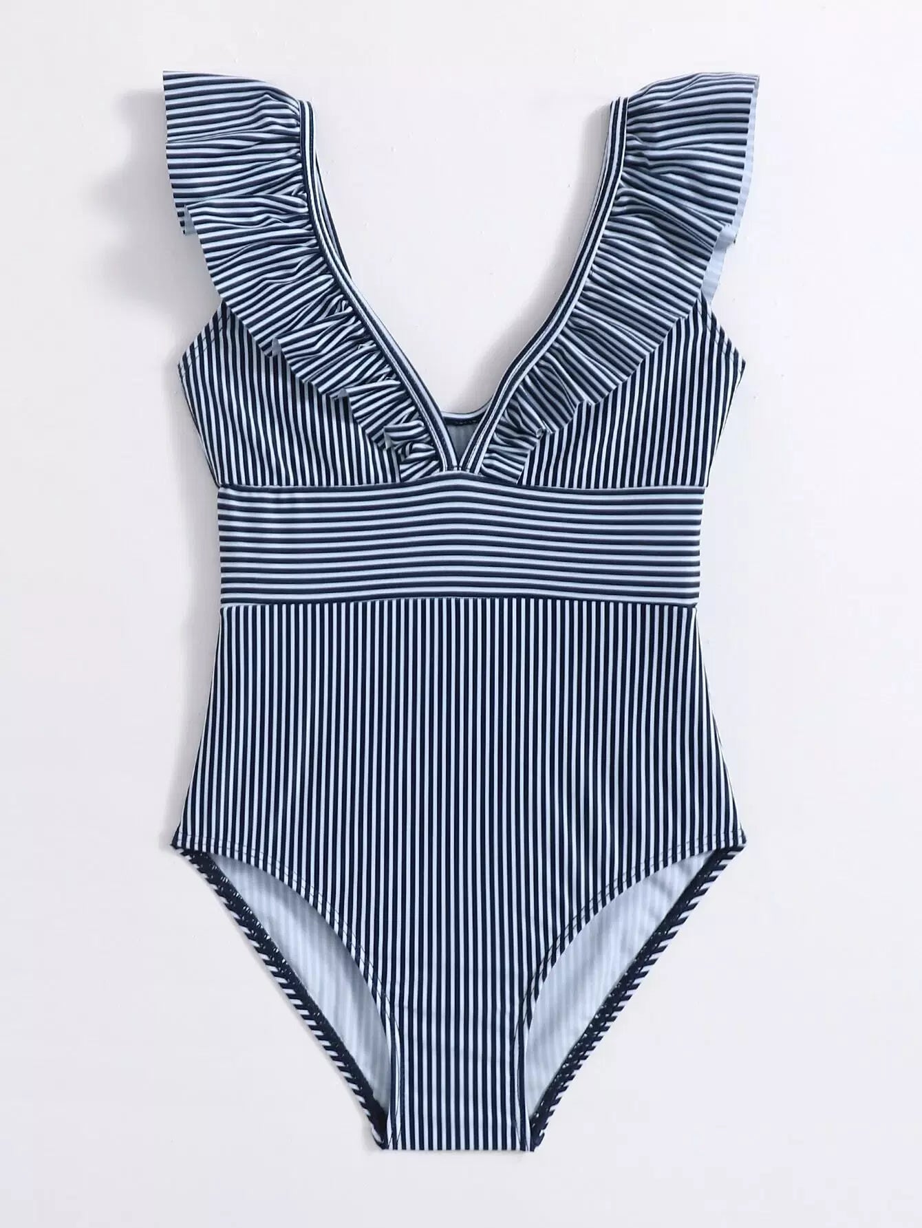 Toddler Girls Striped Print Ruffle One Piece Swimsuit