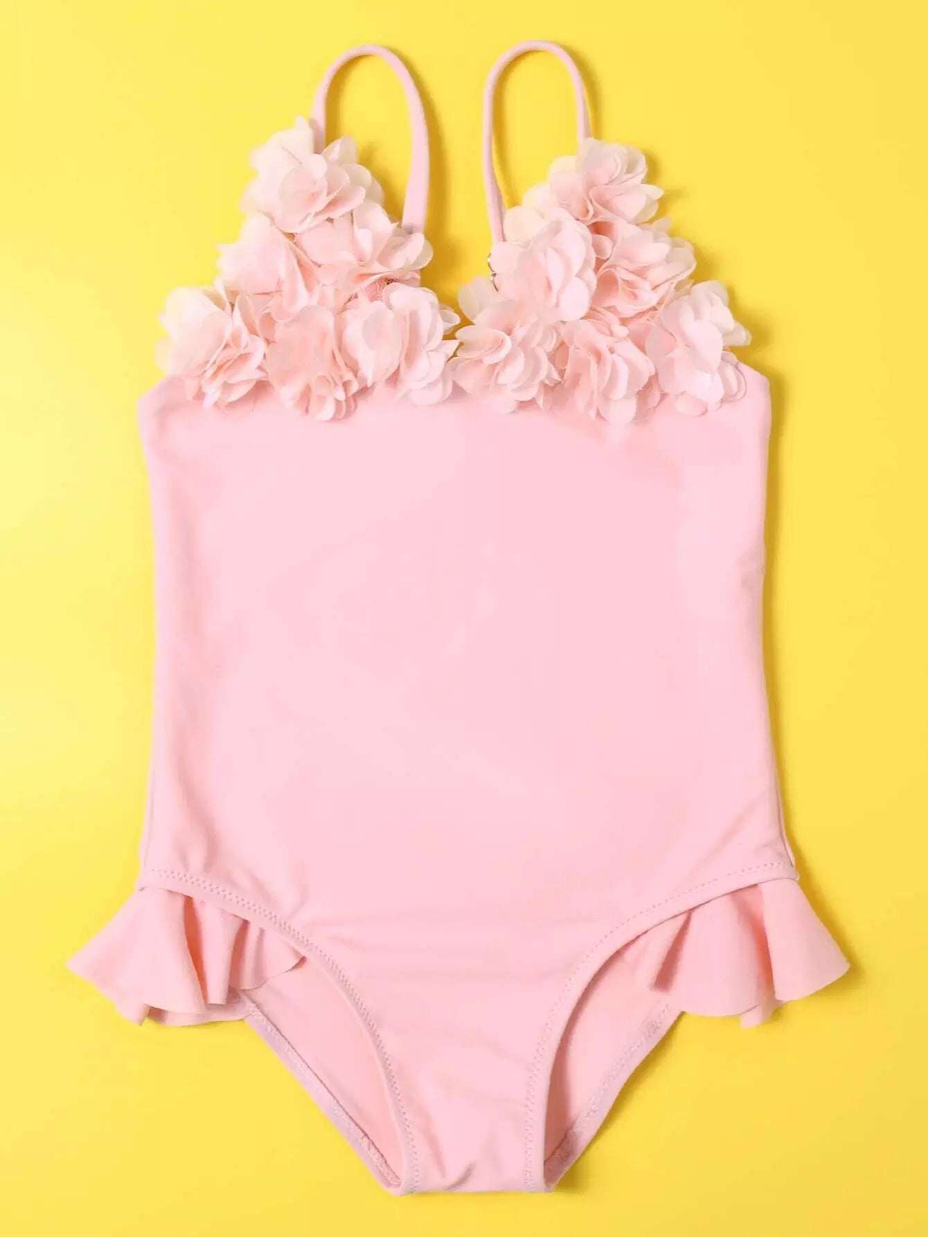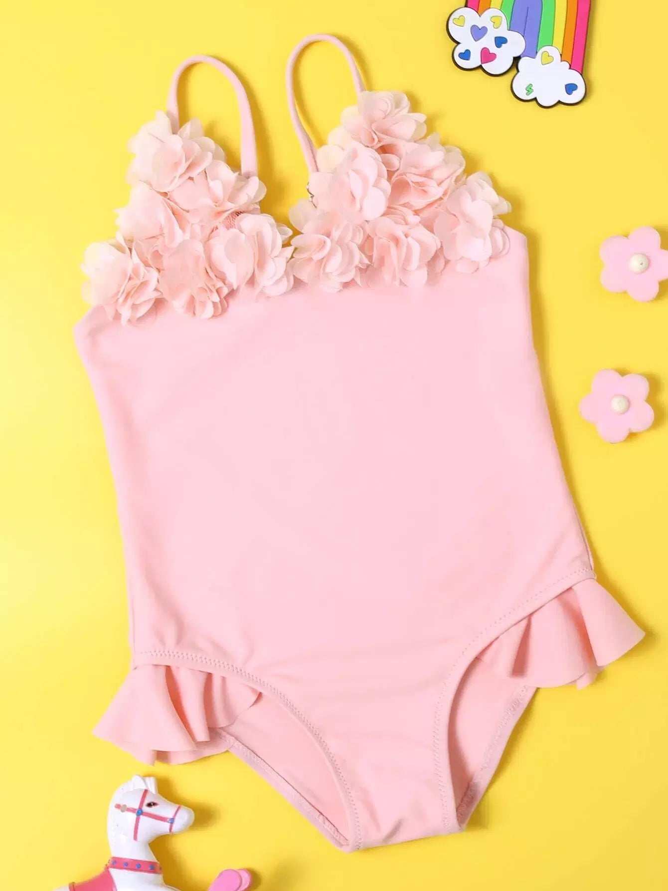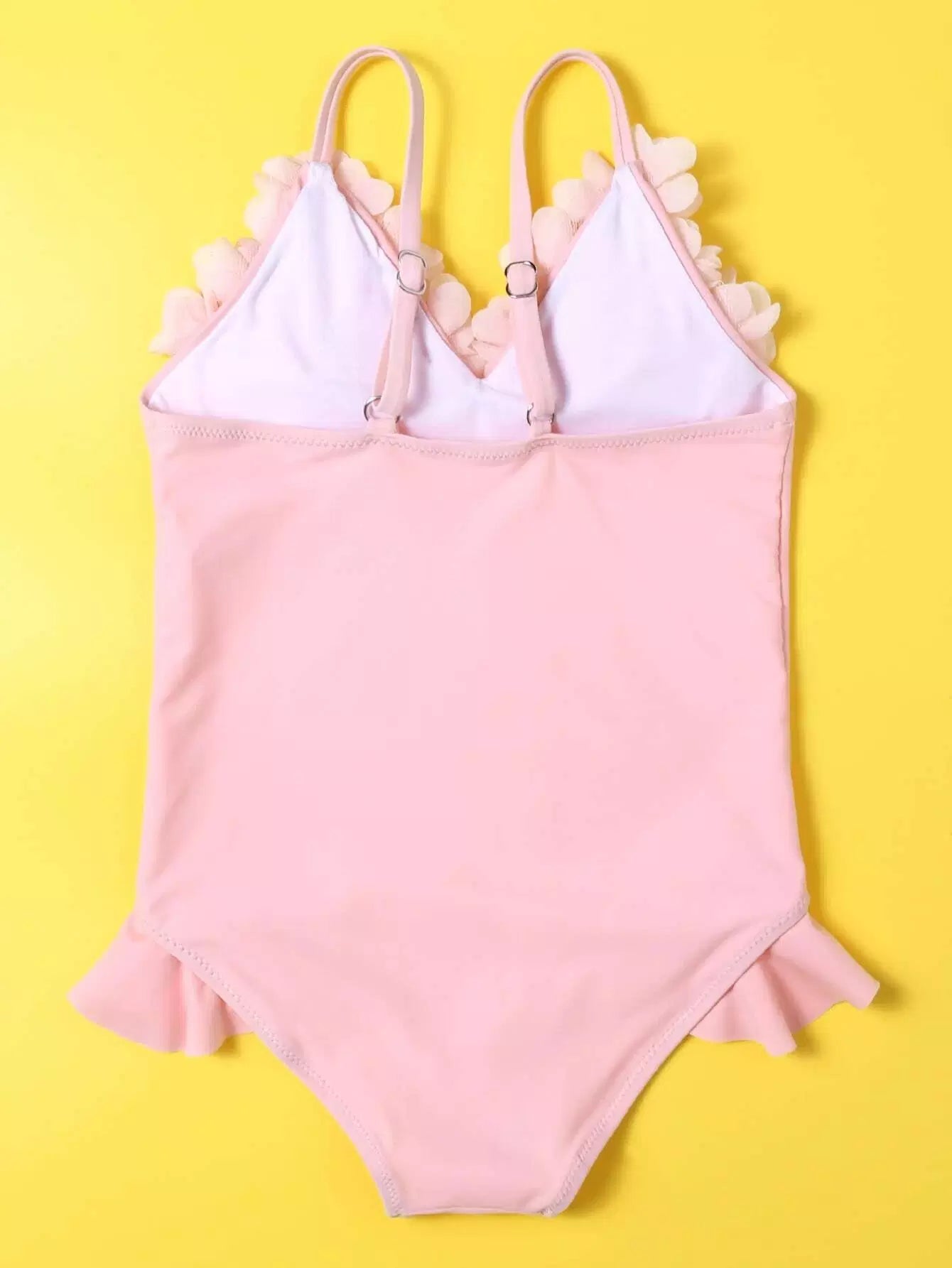 Toddler Girls Appliques Ruffle One Piece Swimsuit