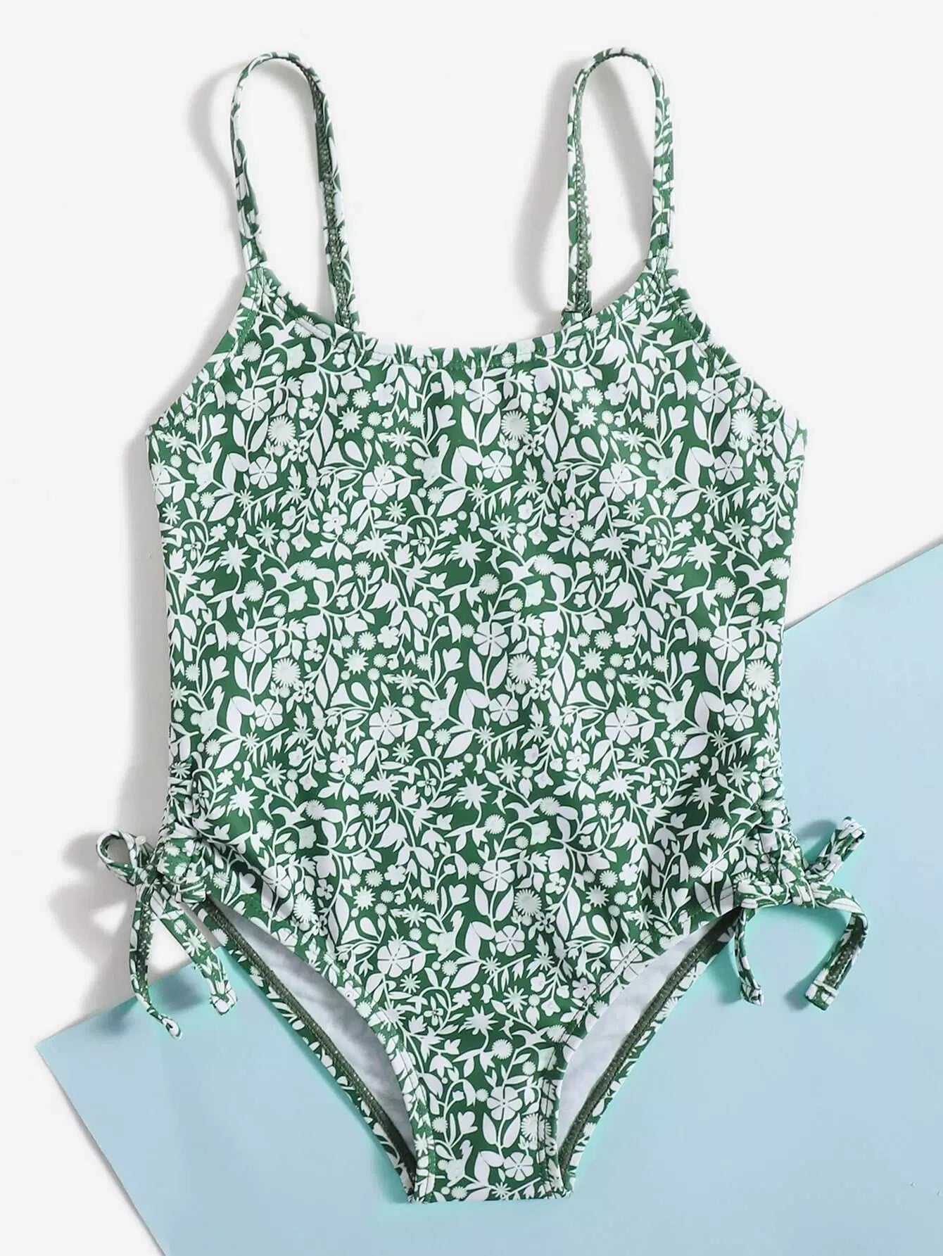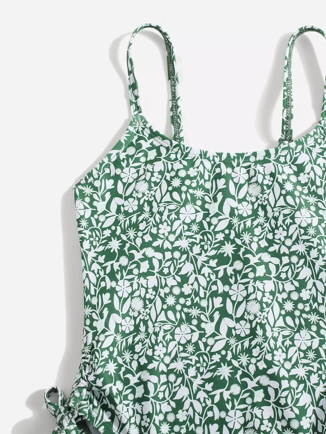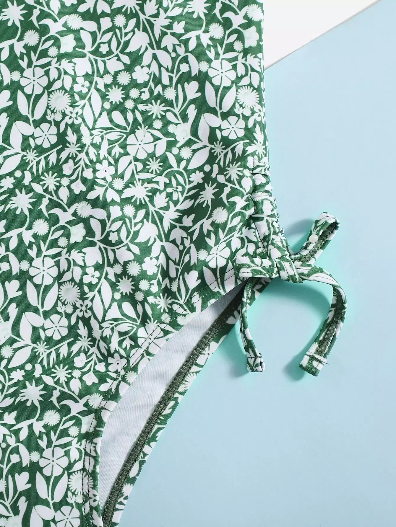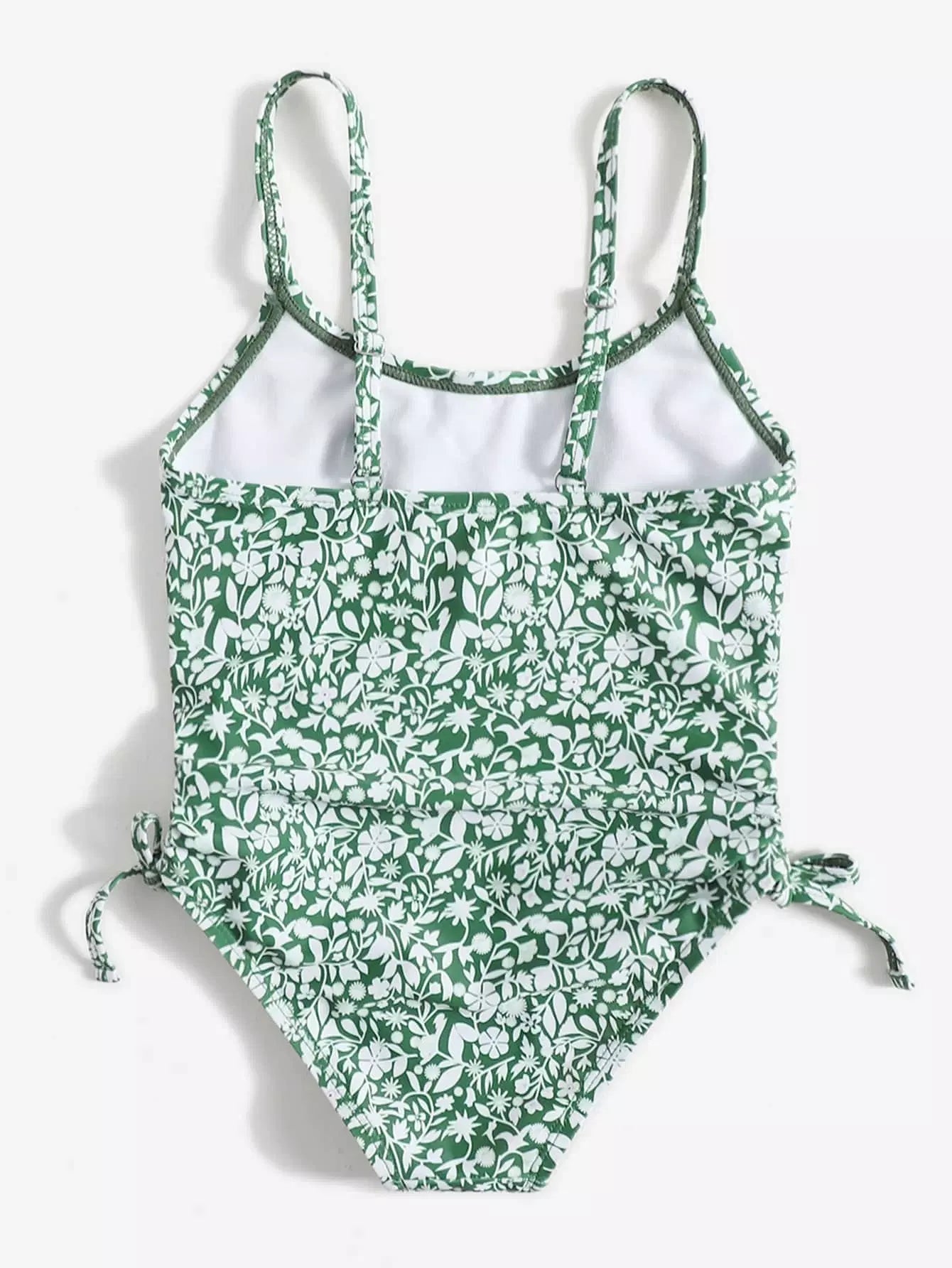 Toddler Girls Ditsy Floral Print Drawstring One Piece Swimsuit