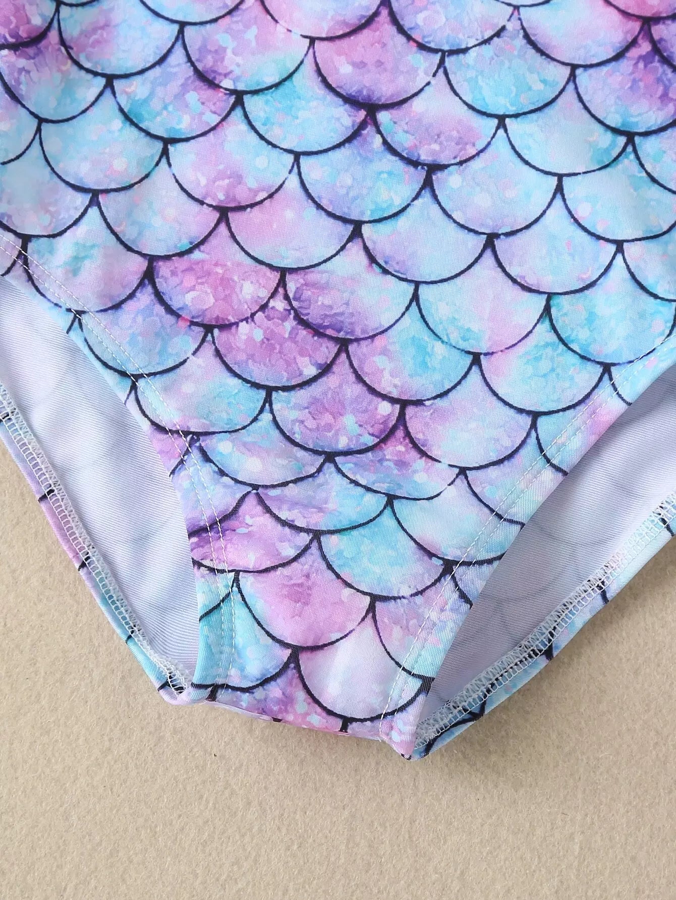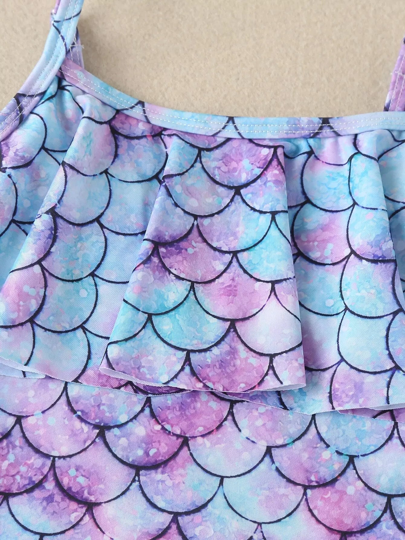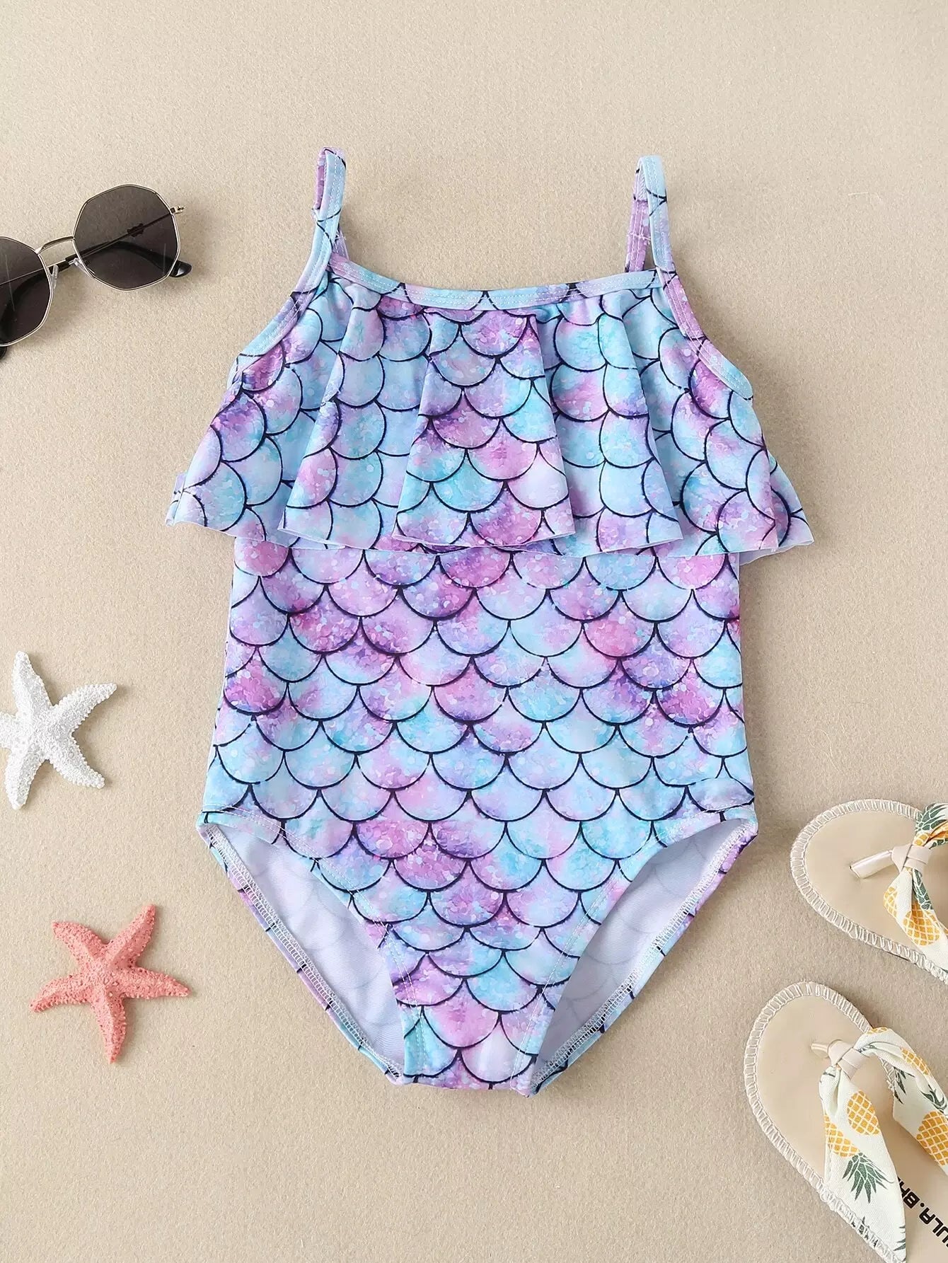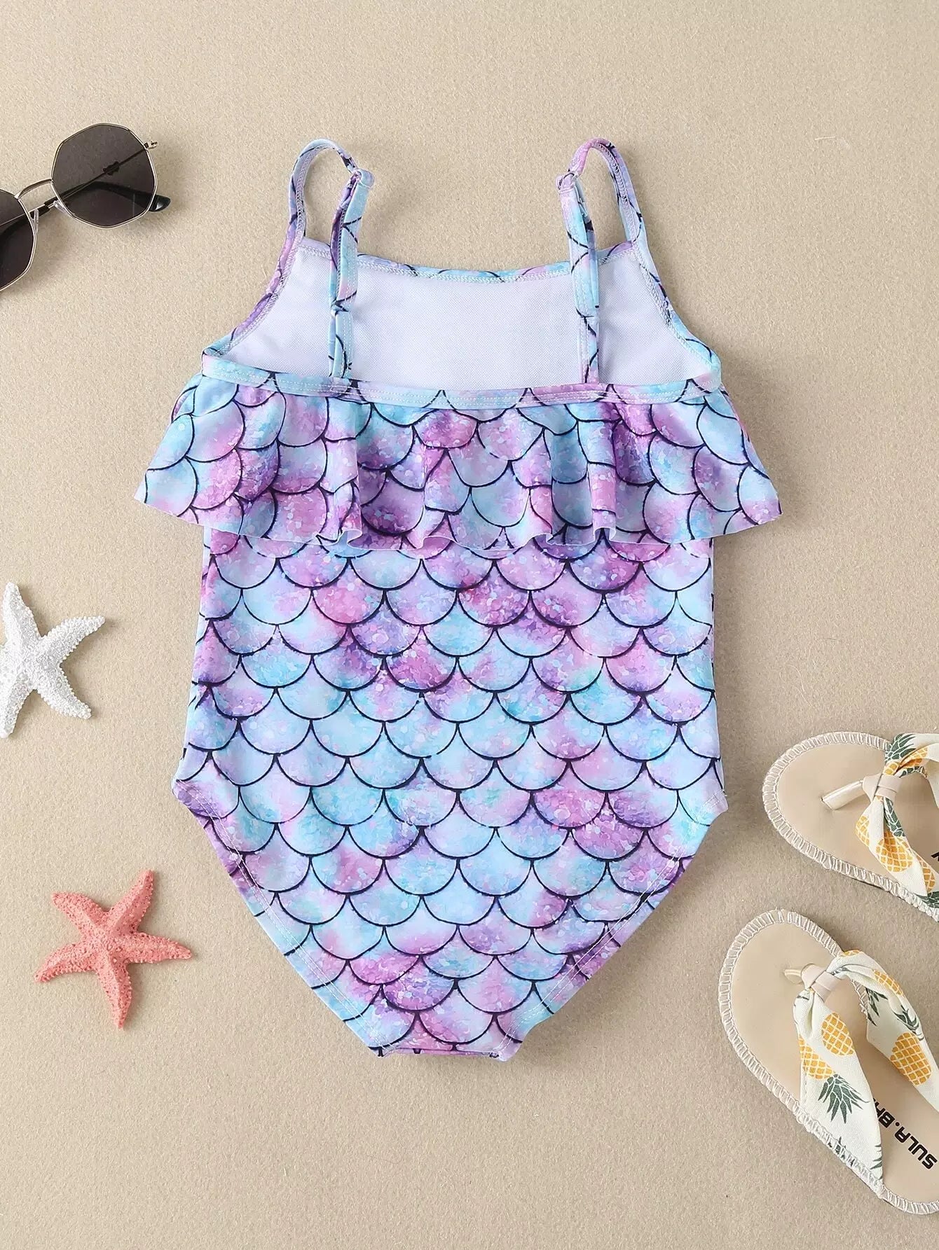 Toddler Girls Fish Scale Print Flounce One Piece Swimsuit