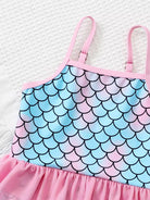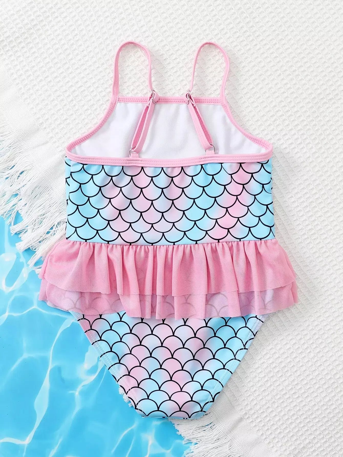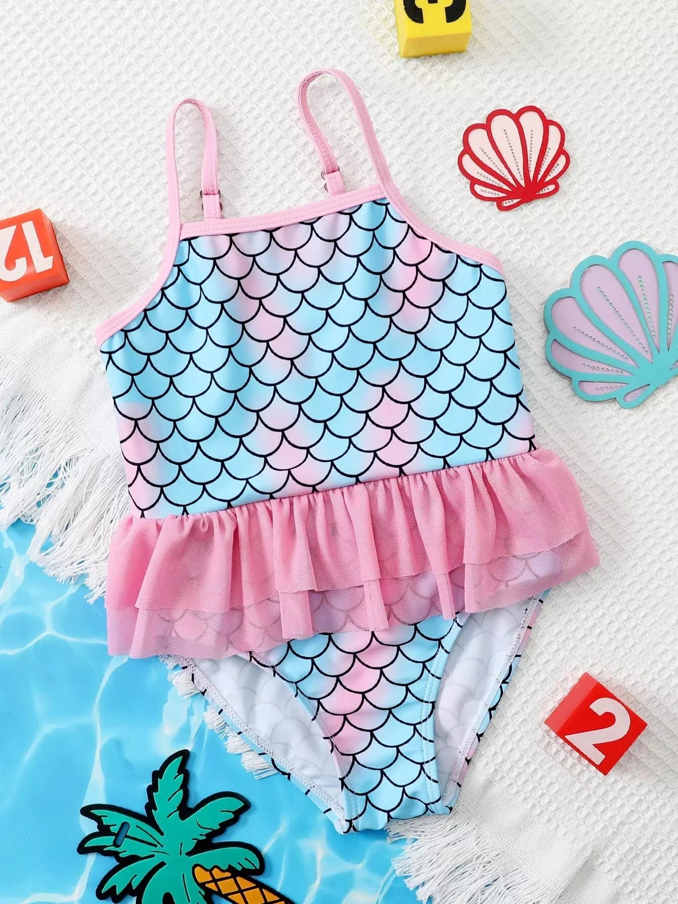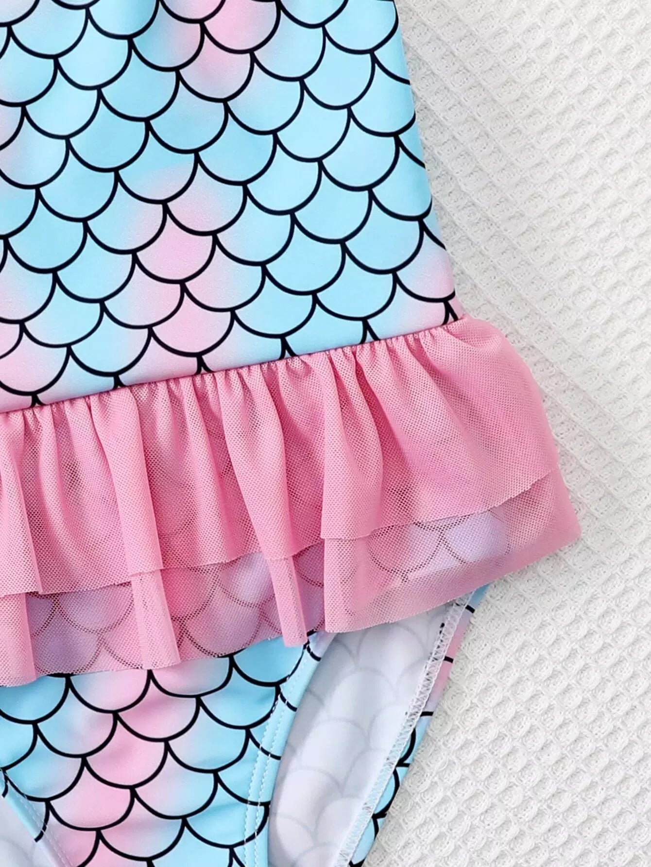 Toddler Girls Fish Scale Print Ruffle Trim One Piece Swimsuit
