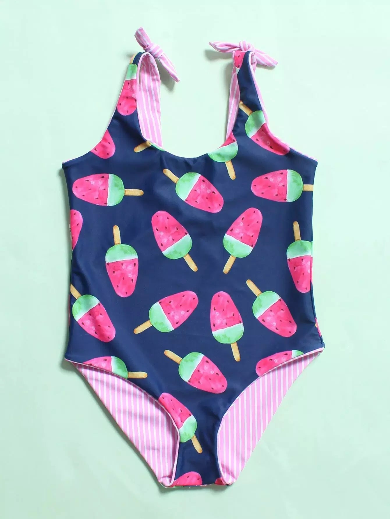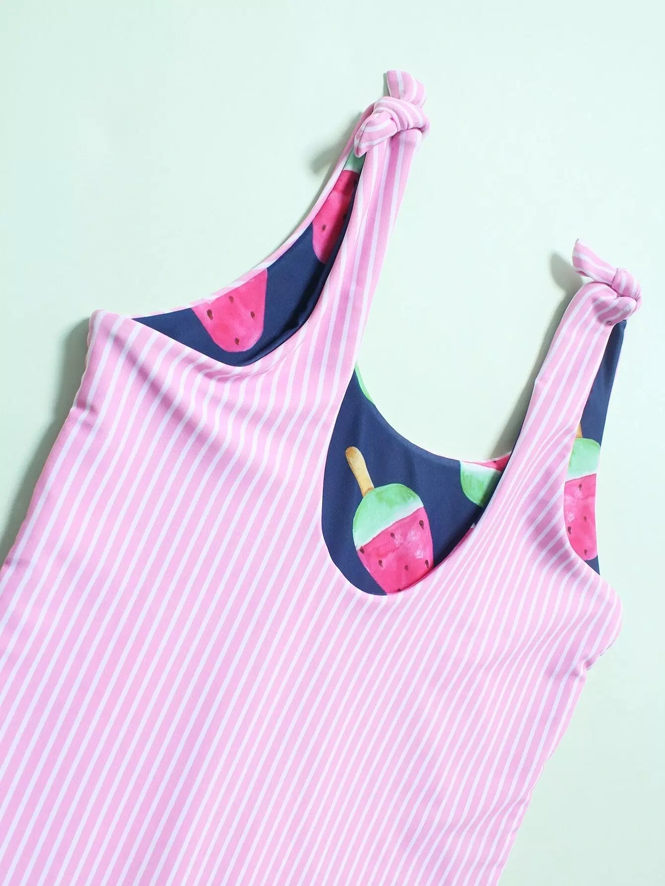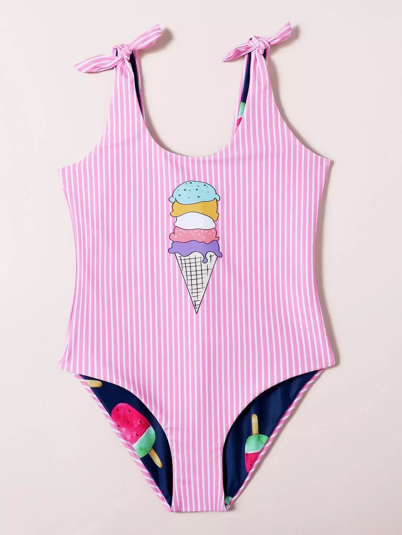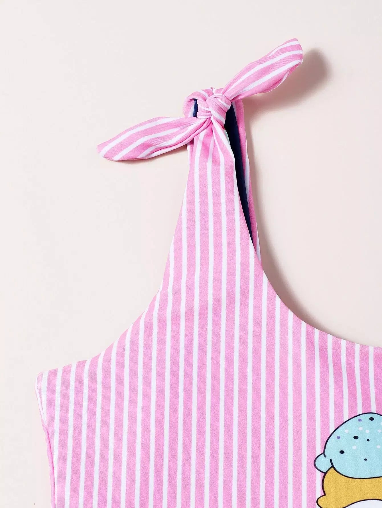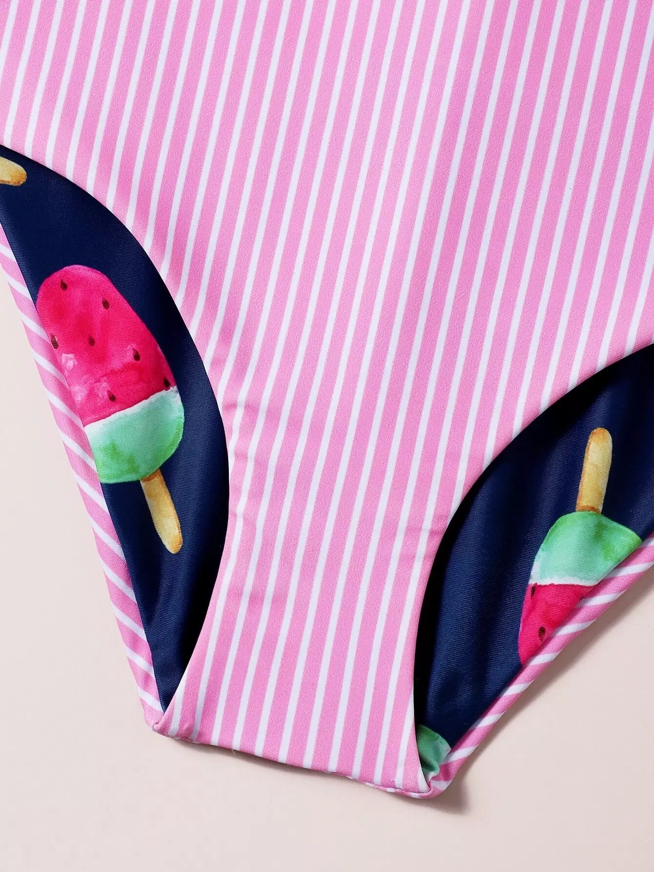 Toddler Girls Ice Cream & Striped One Piece Swimsuit