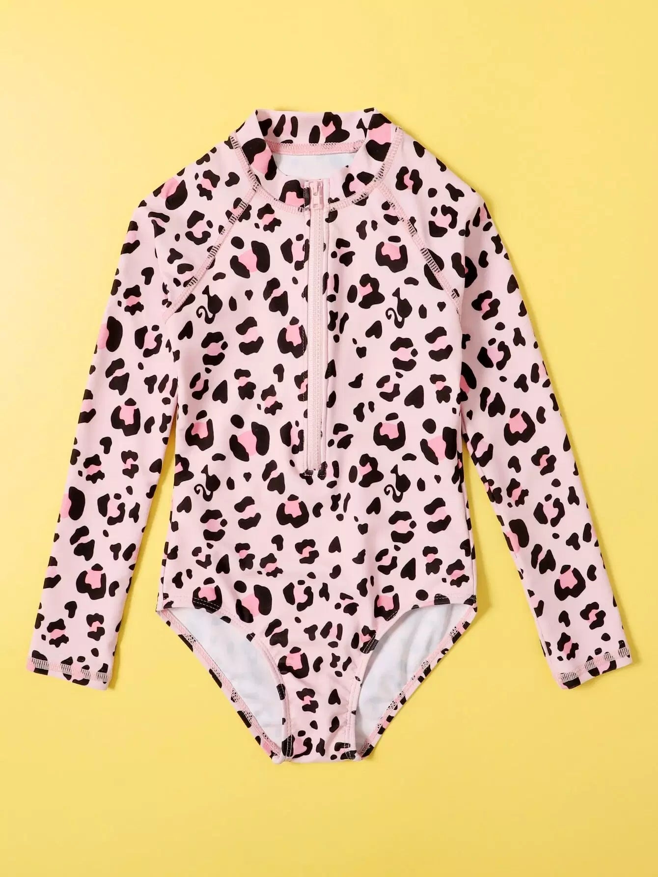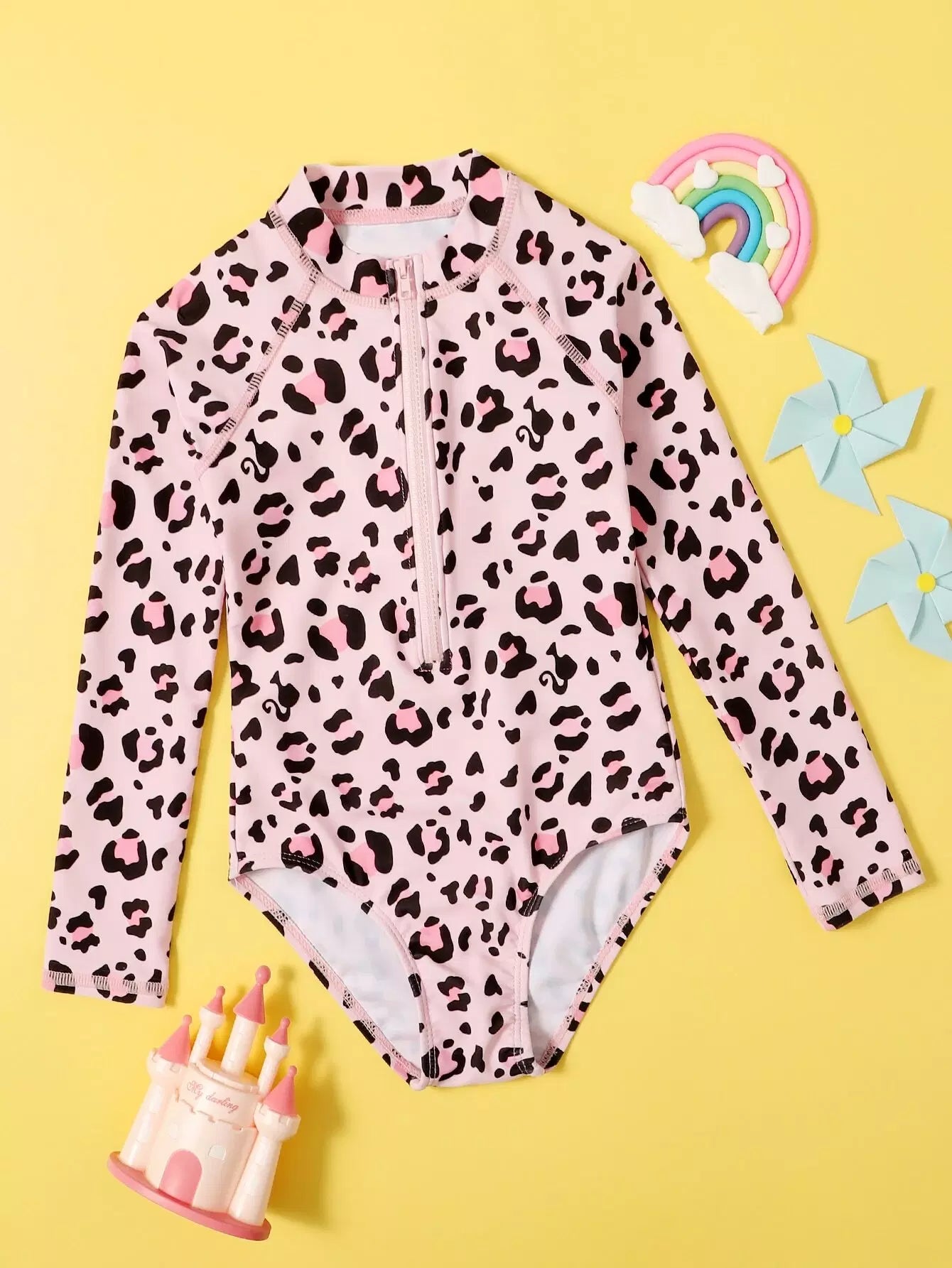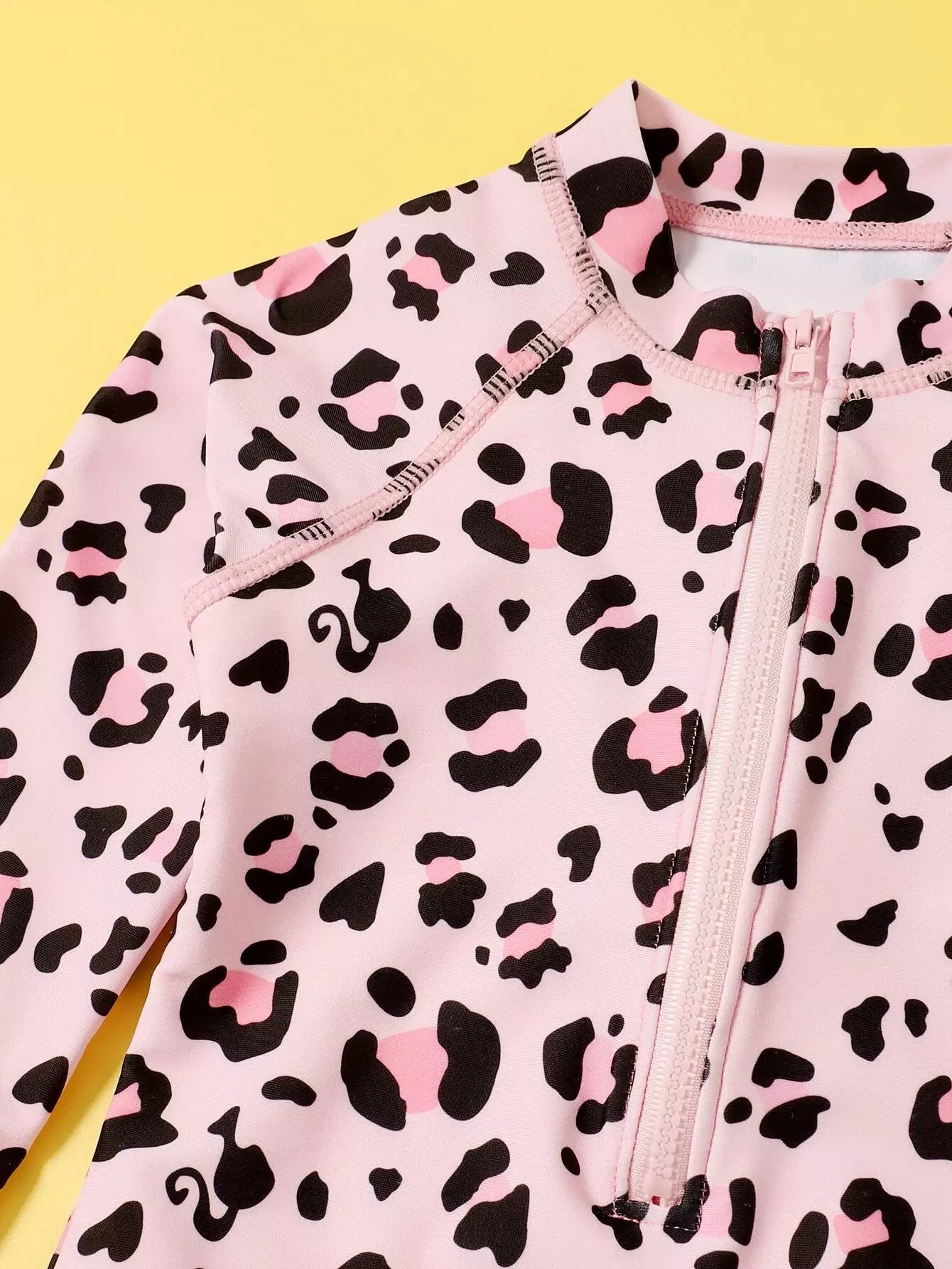 Toddler Girls Leopard Zip Front One Piece Swimsuit