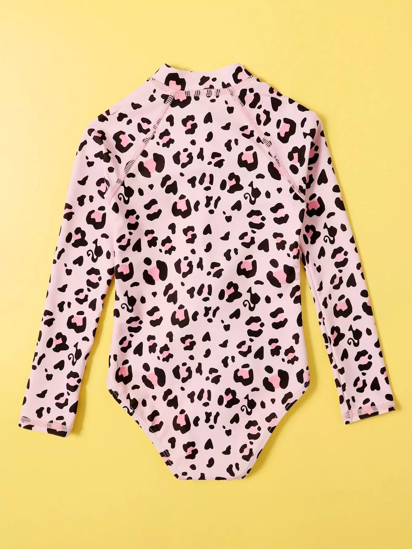 Kids - Toddler Girls Leopard Zip Front One Piece Swimsuit