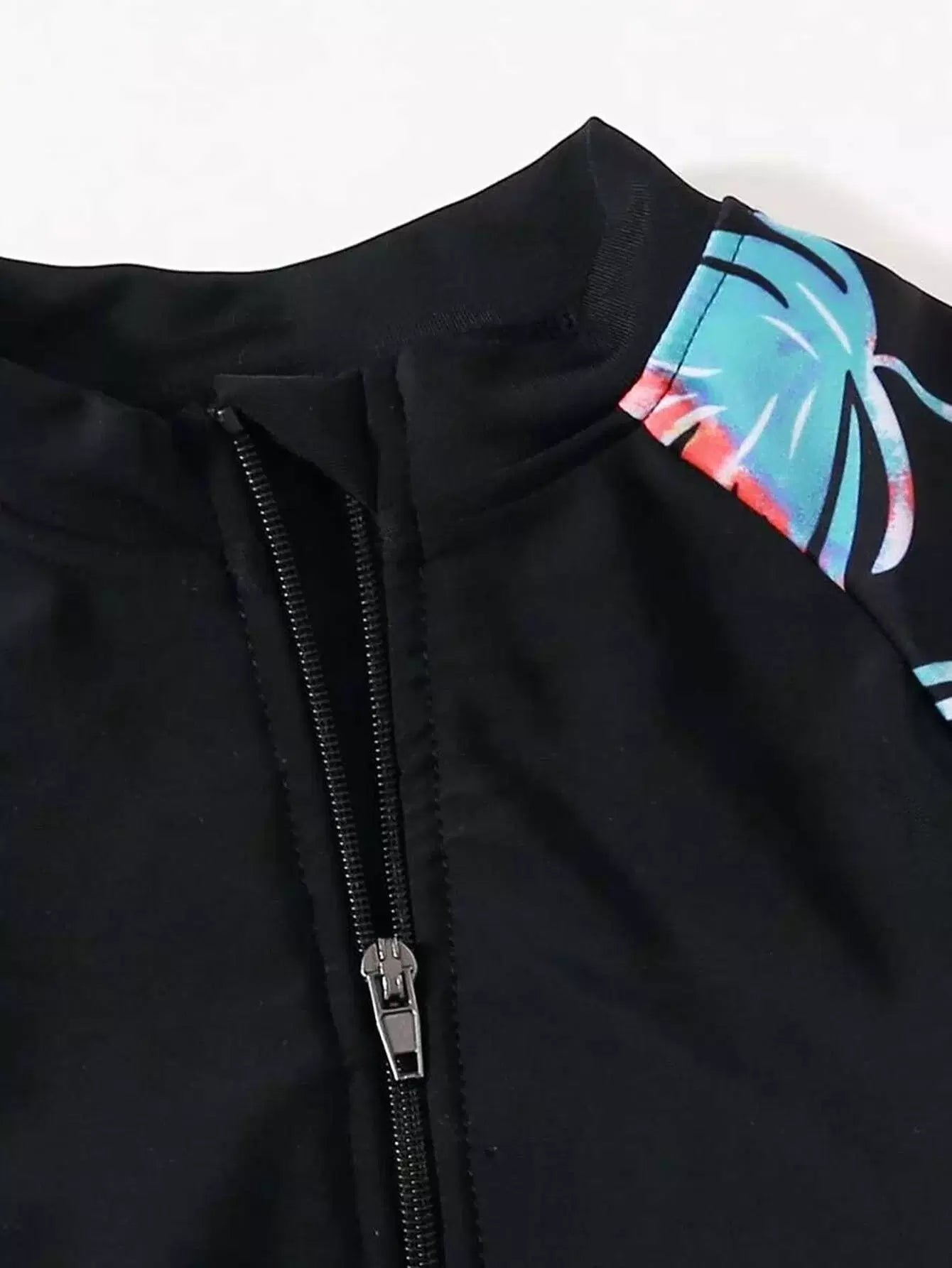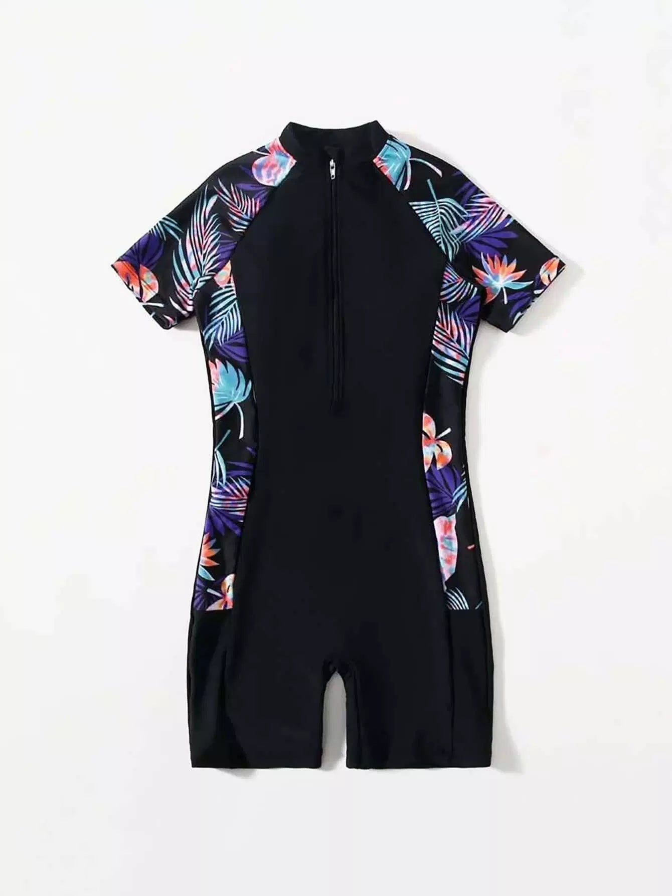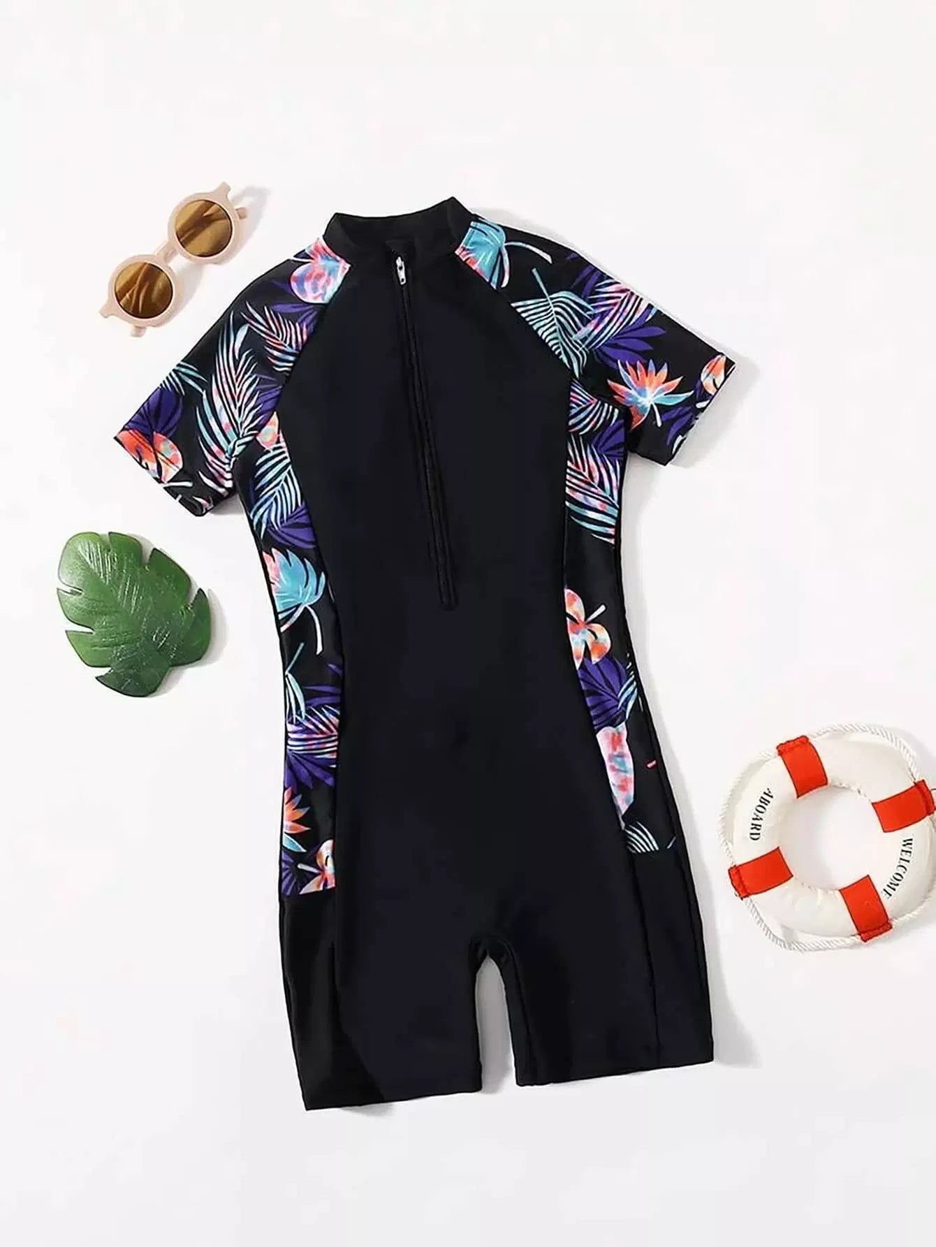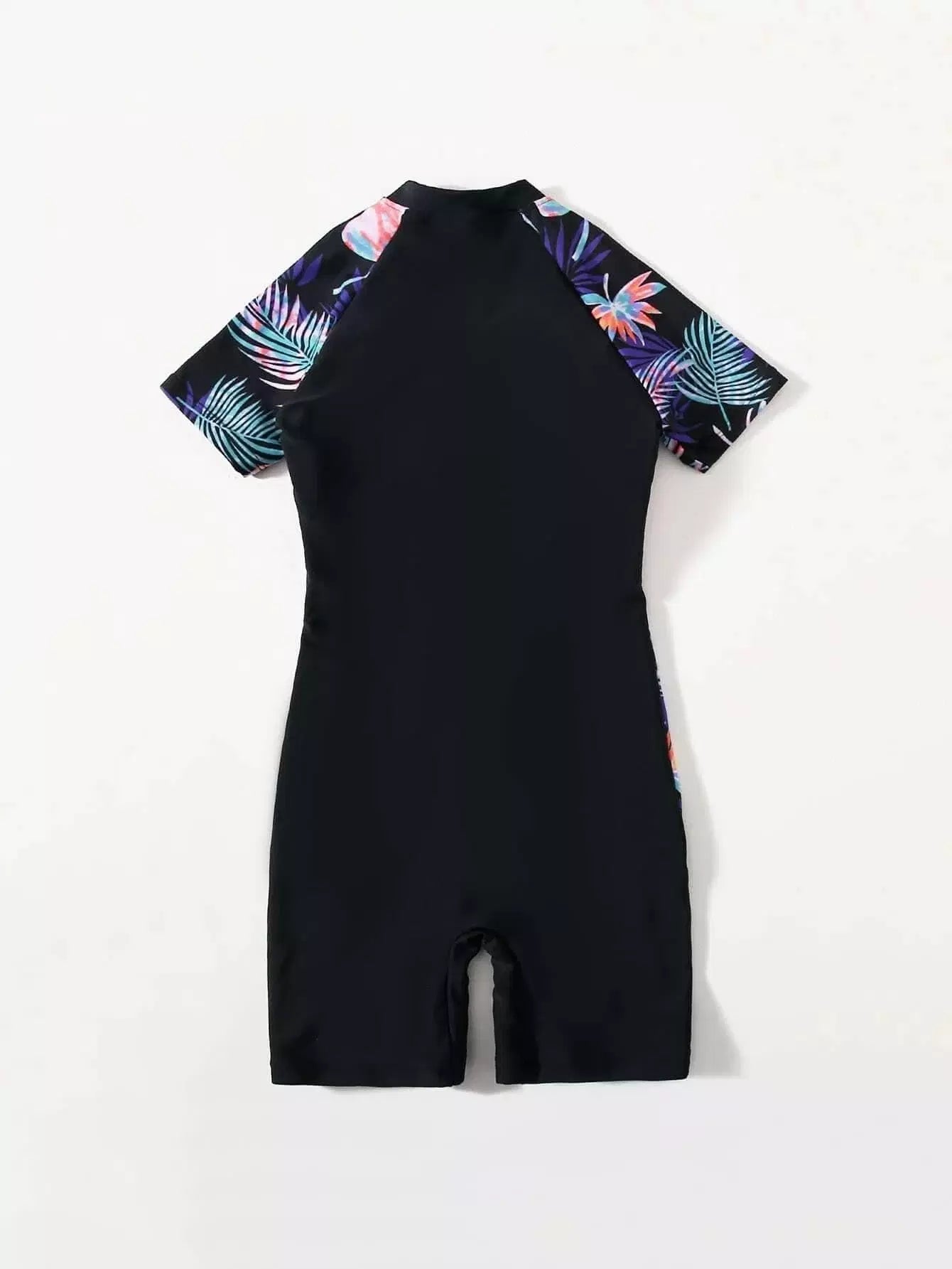 Toddler Girls Tropical Zip Front One Piece Swimsuit