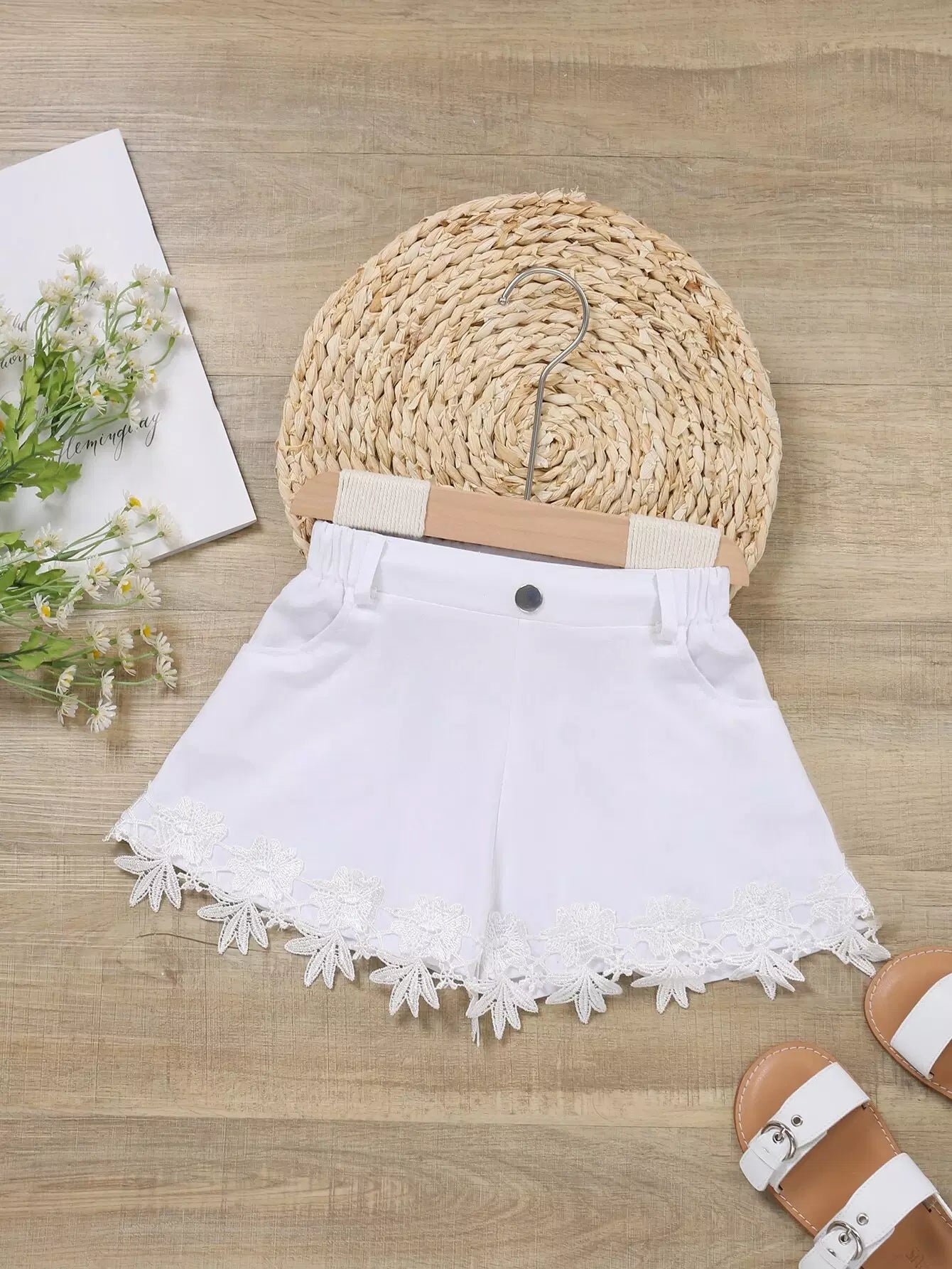 Toddler Girls Appliques Slant Pocket Shorts