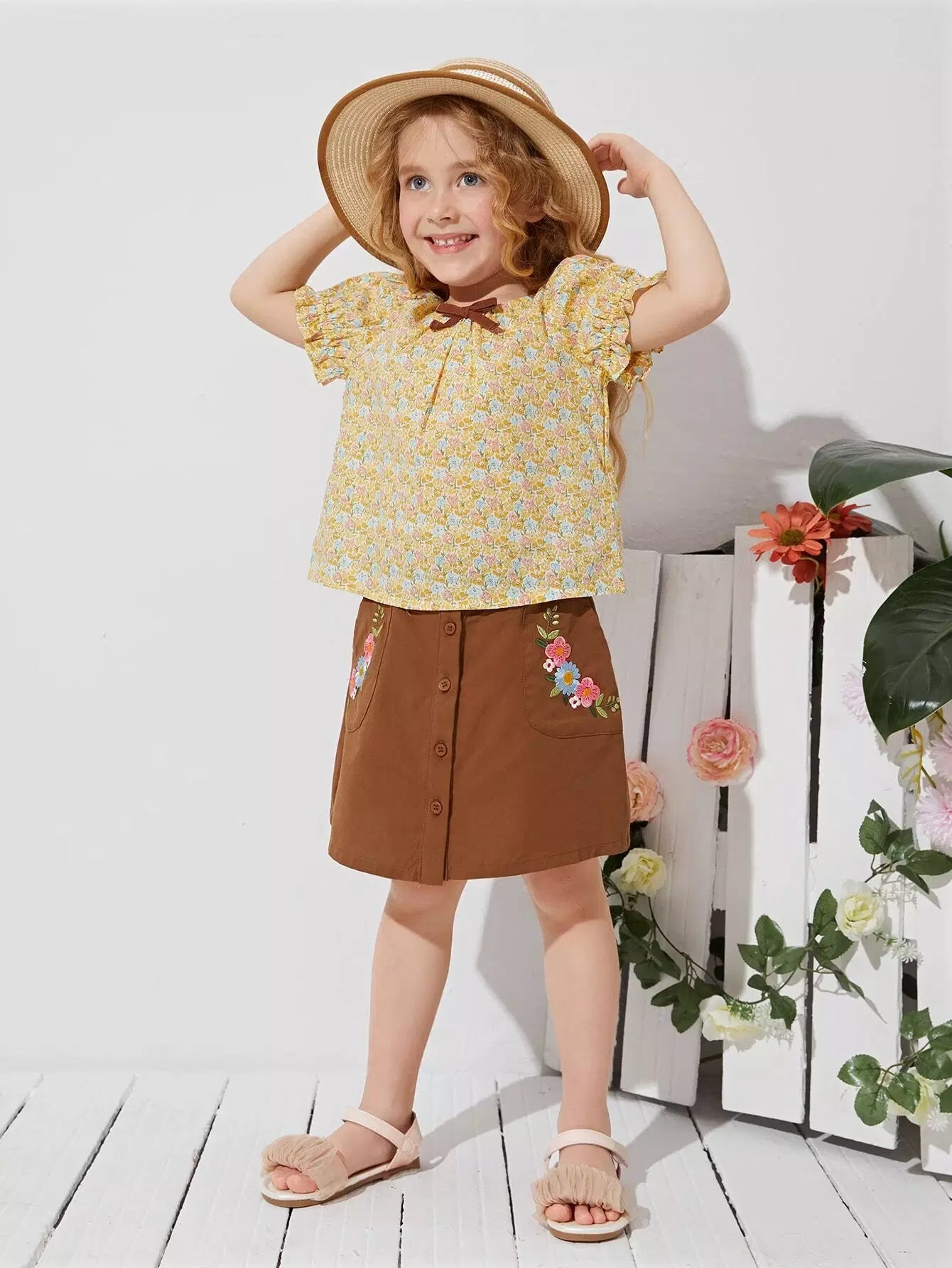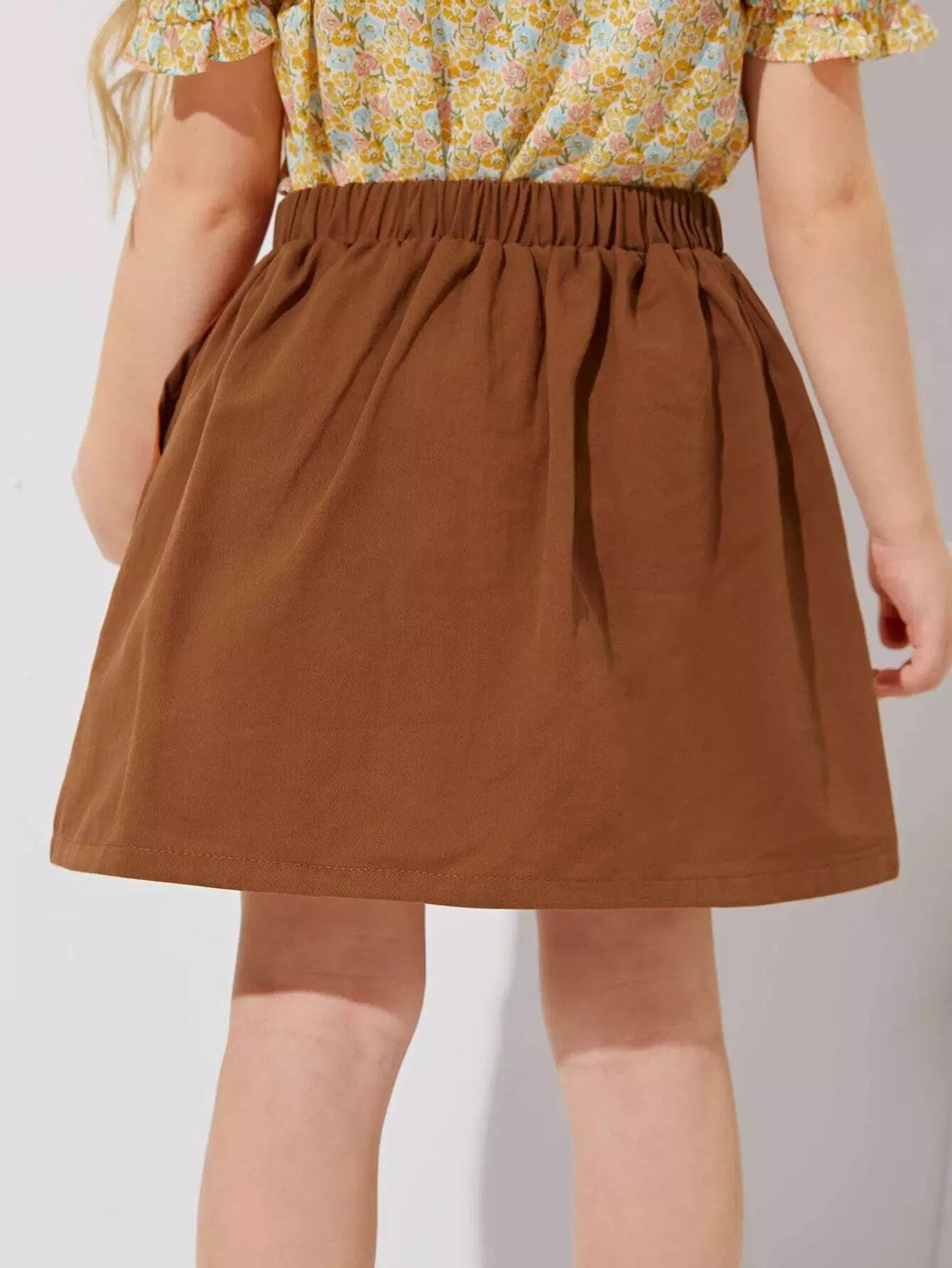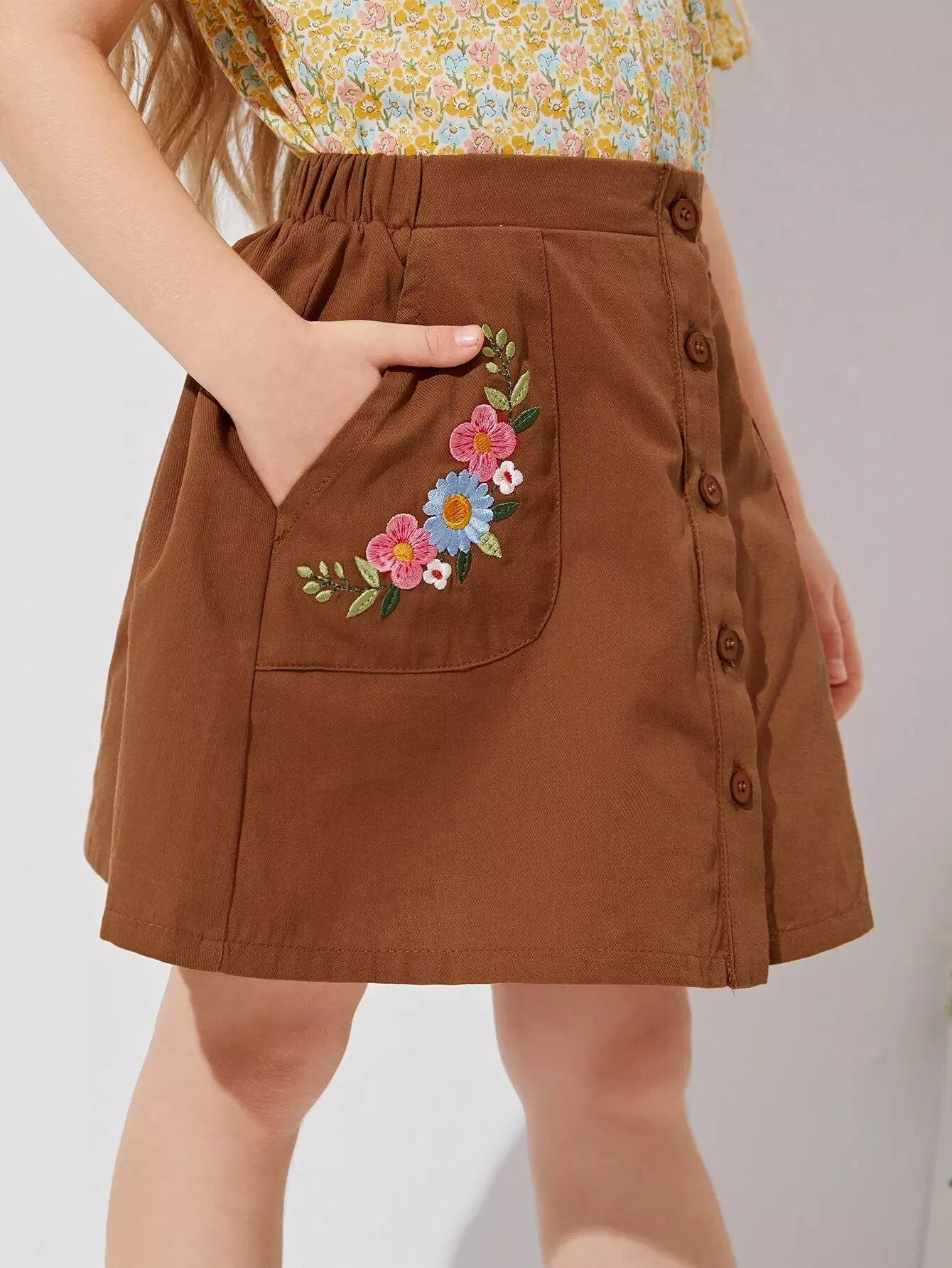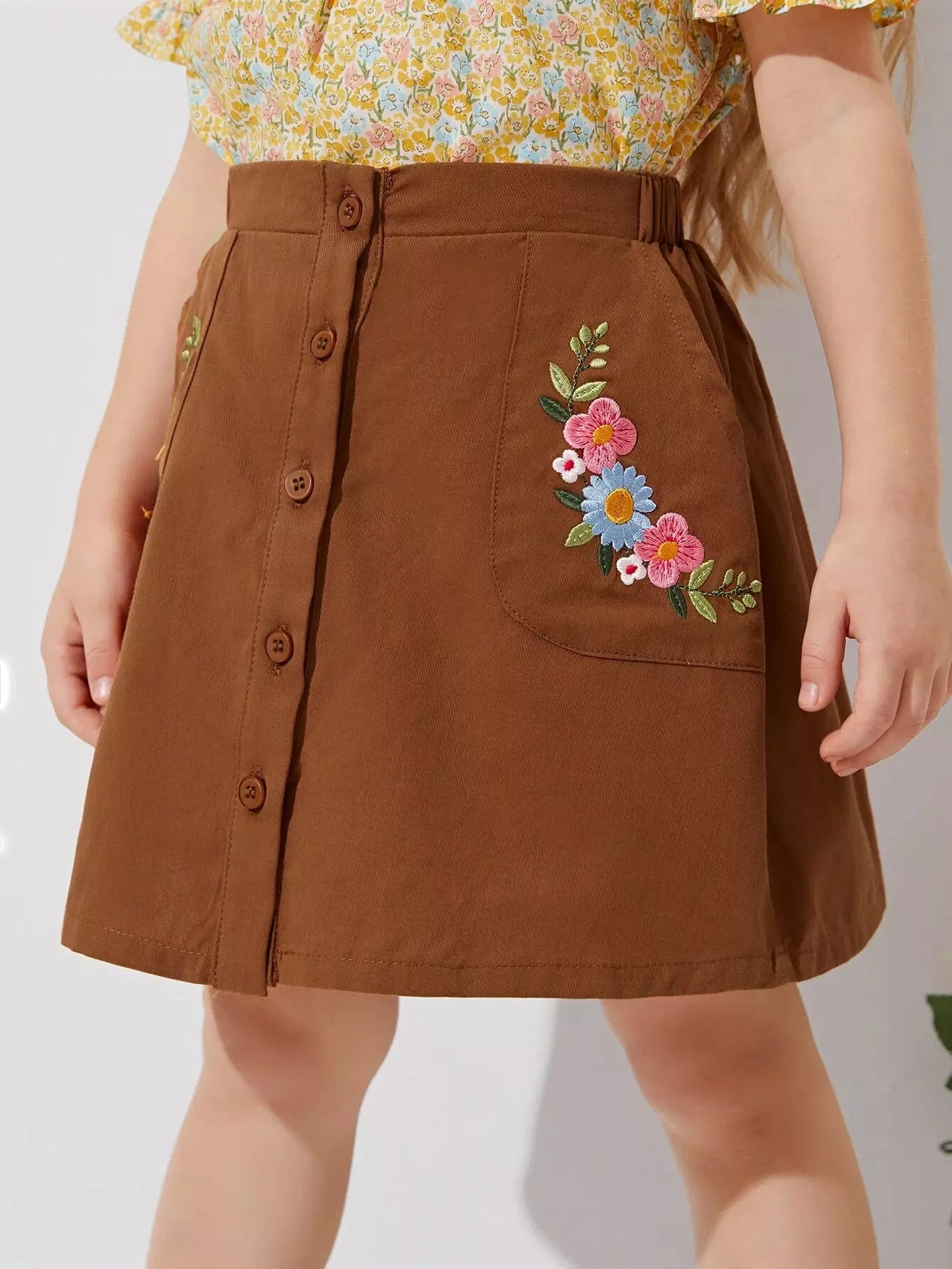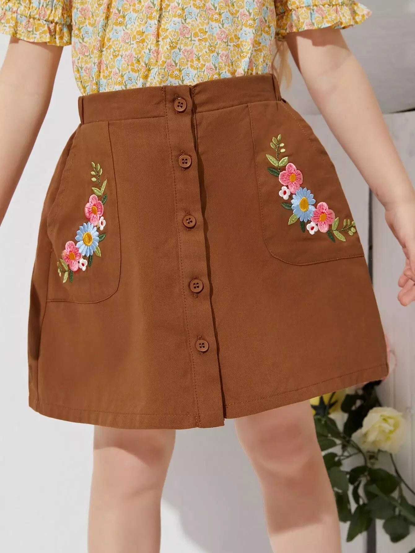 Toddler Girls Buttoned Front Floral Embroidery Skirt