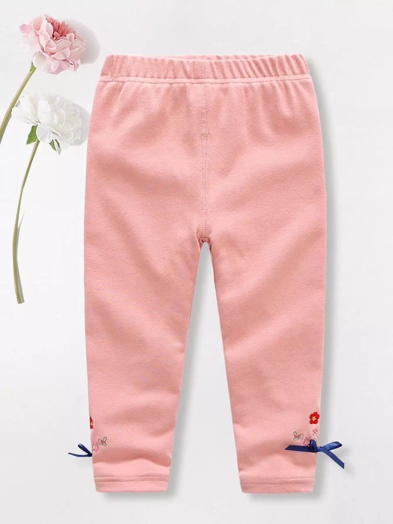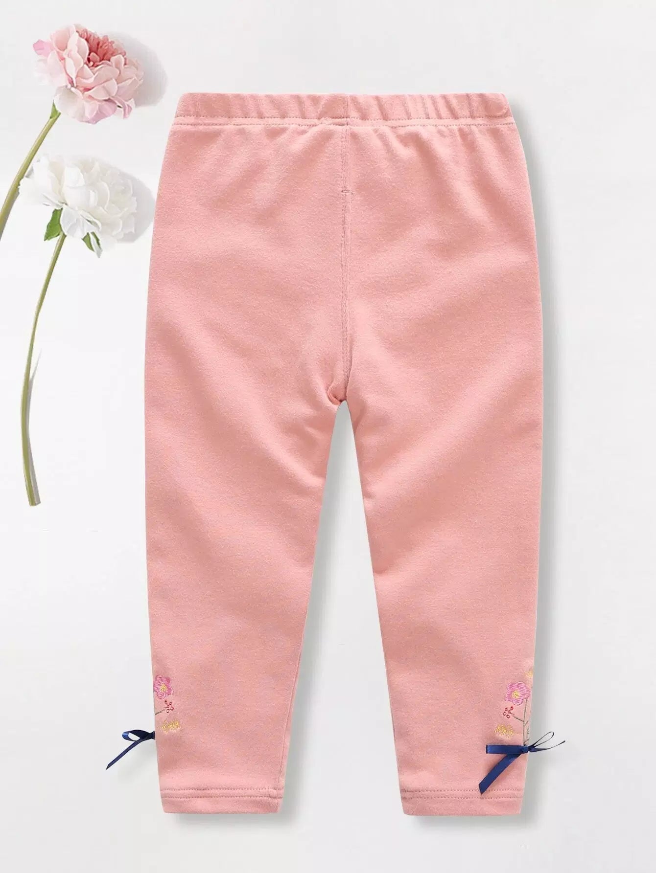 Toddler Girls Floral Embroidery Bow Detail Leggings