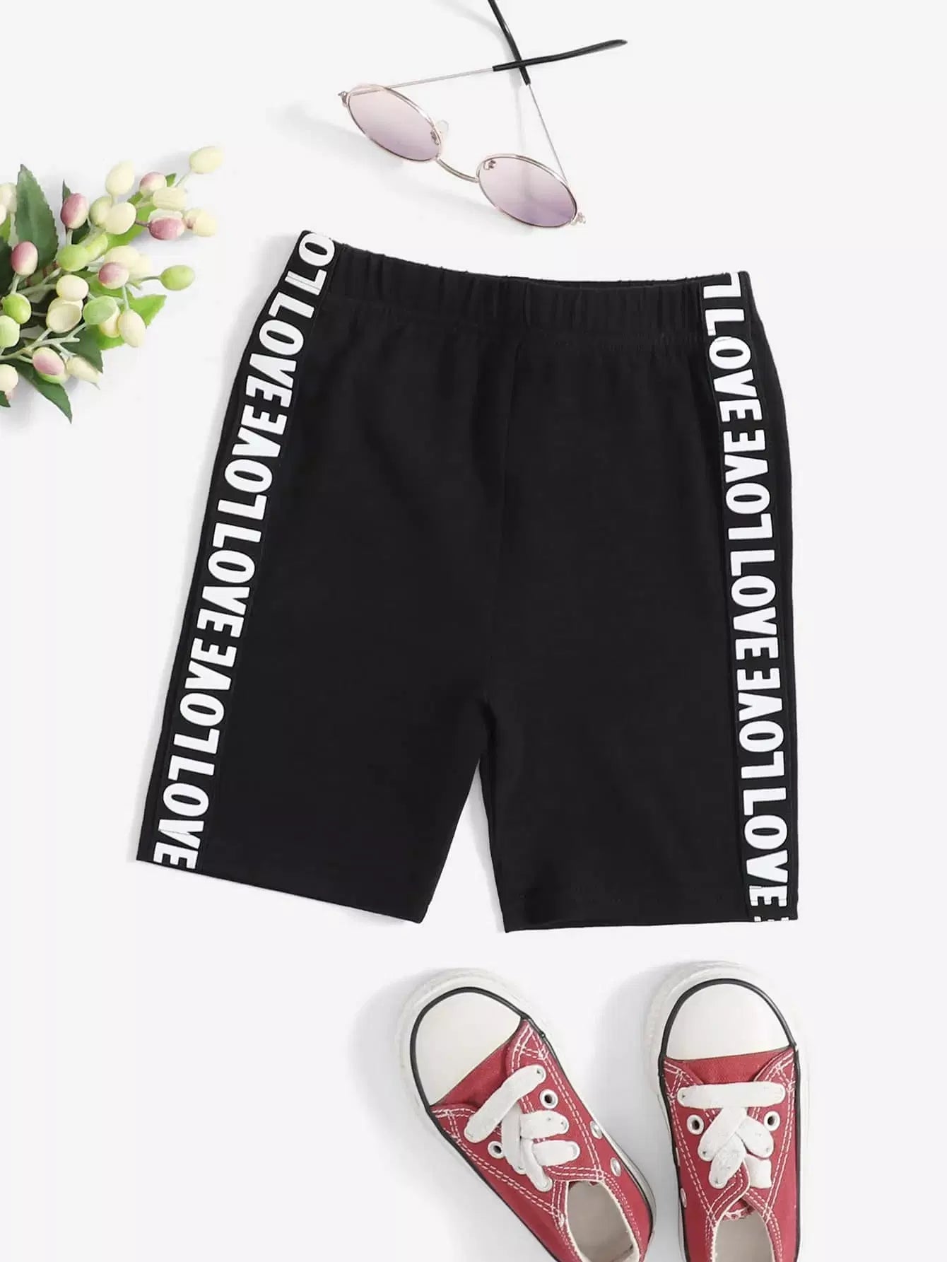 Toddler Girls Letter Tape Side Biker Shorts