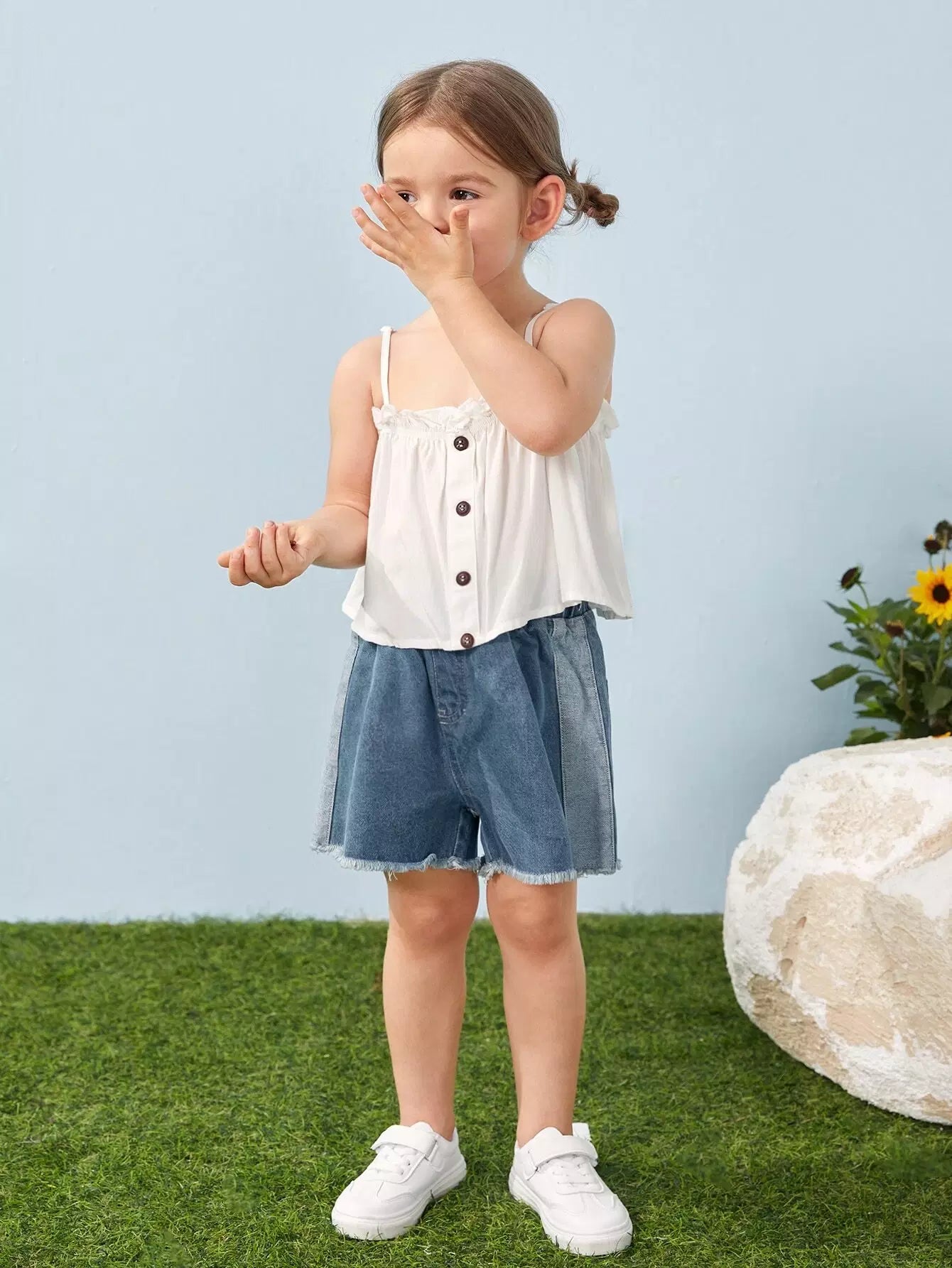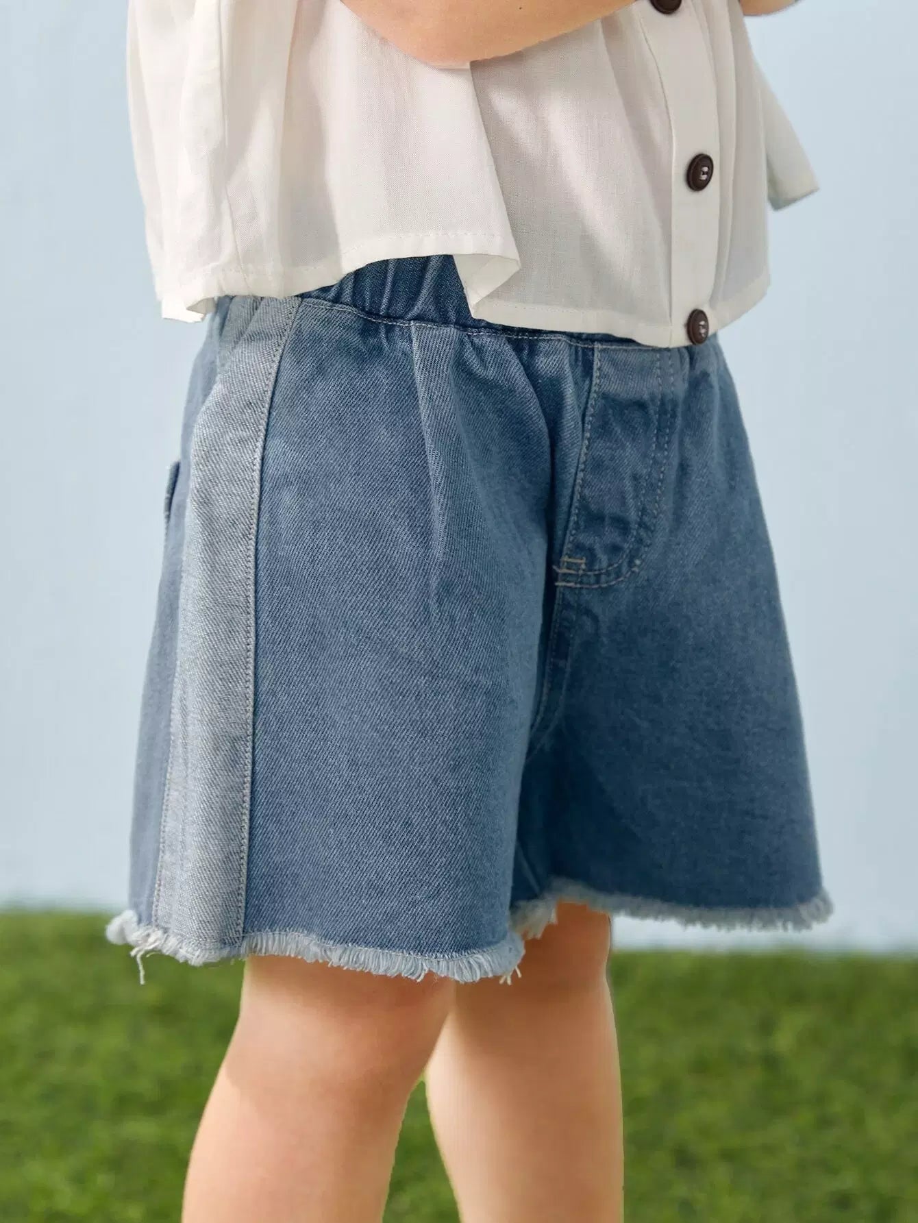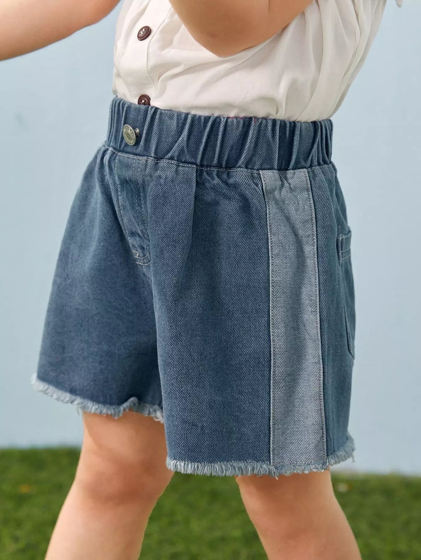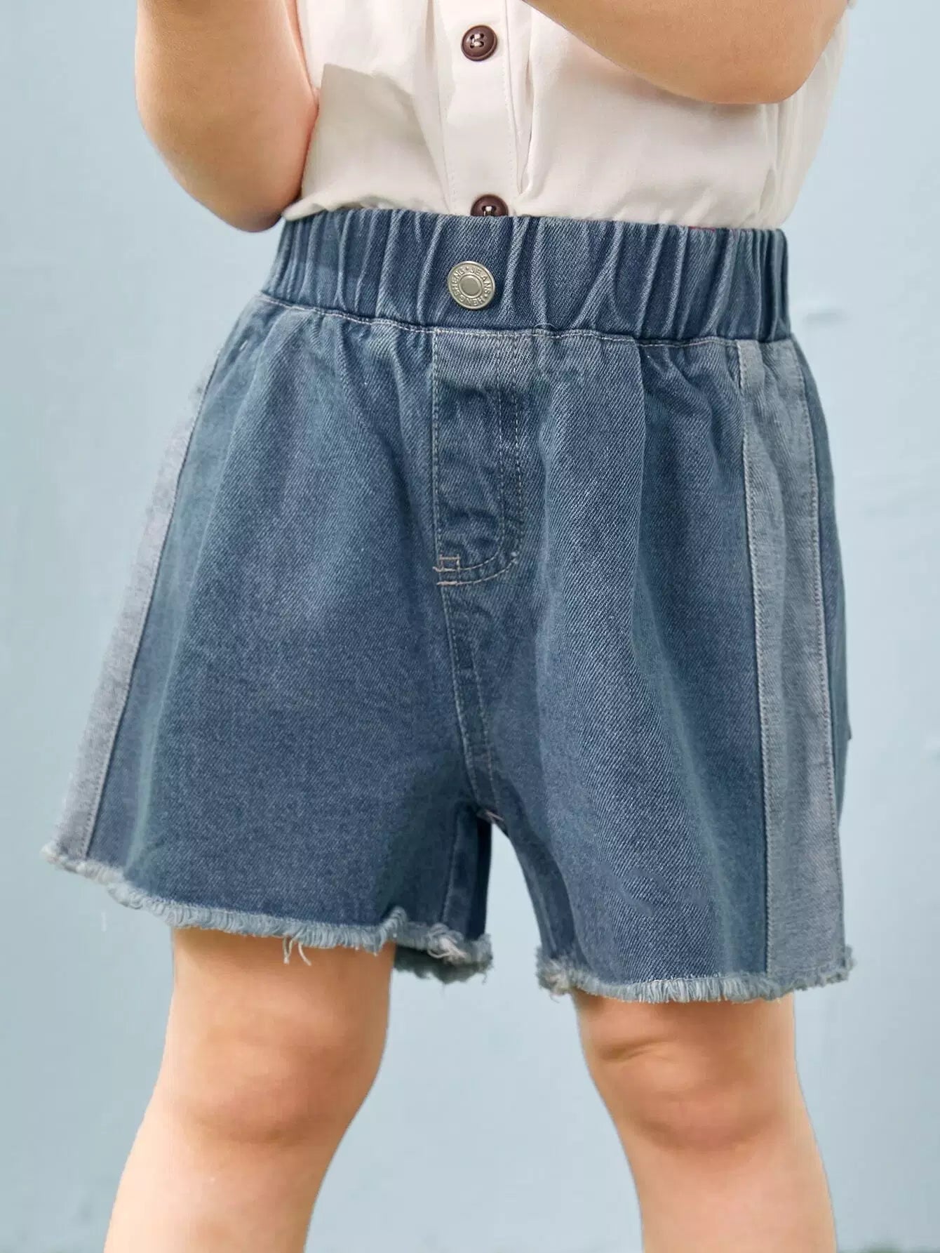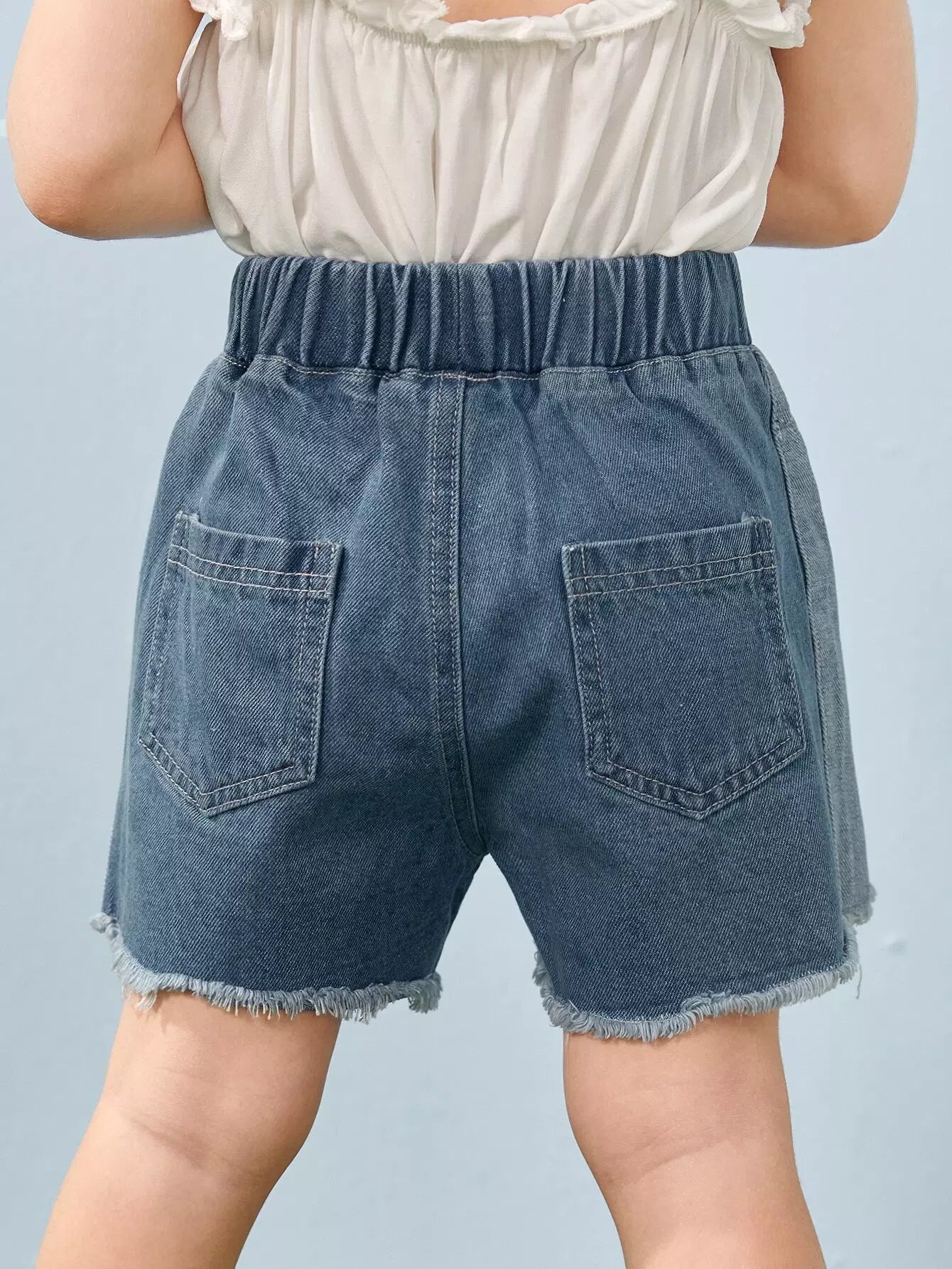 Toddler Girls Contrast Sideseam Raw Hem Denim Shorts