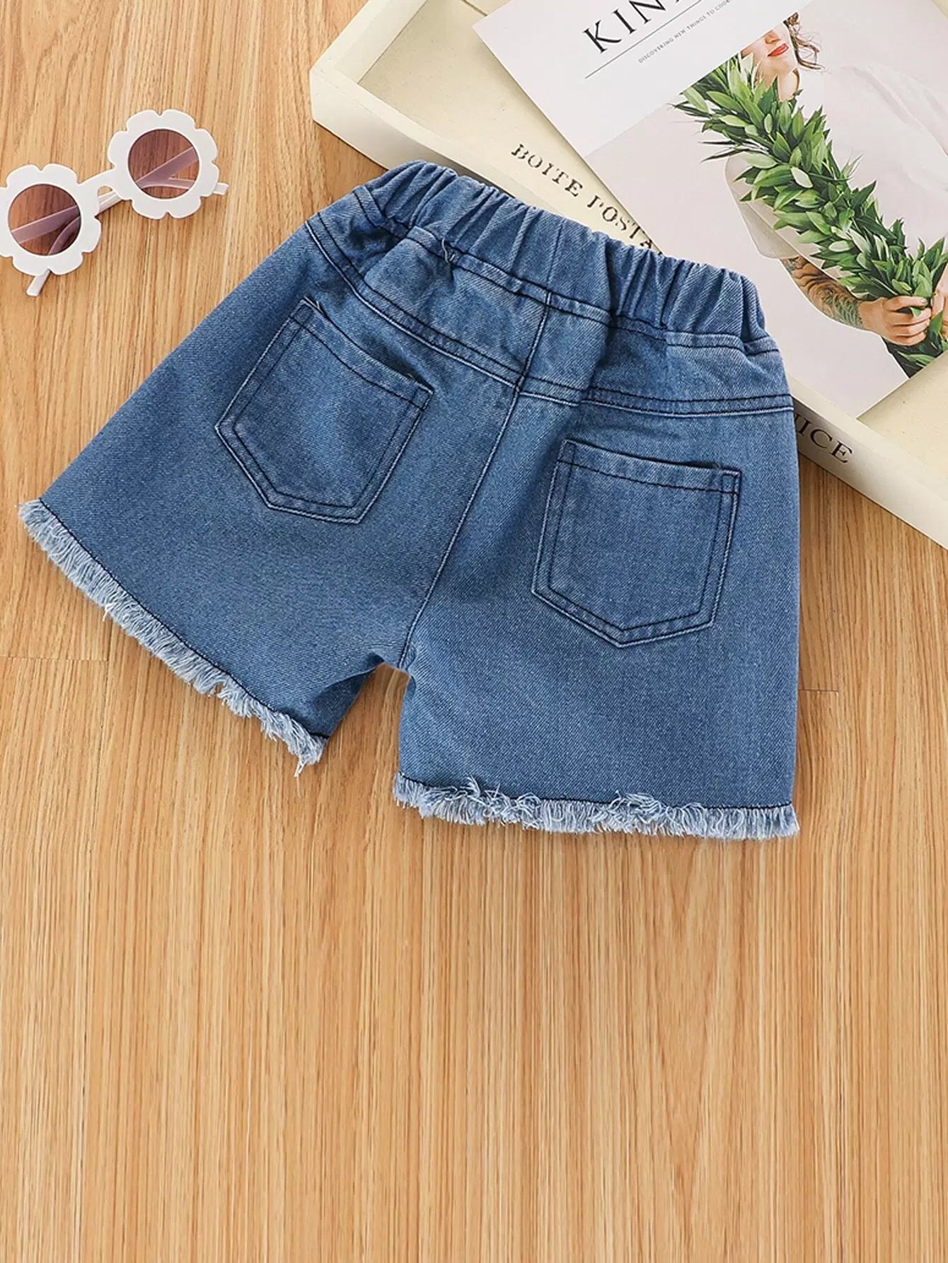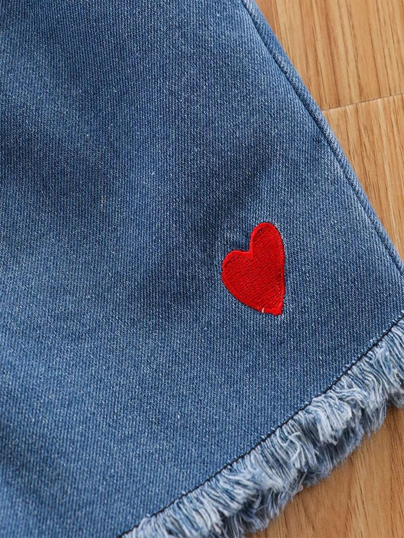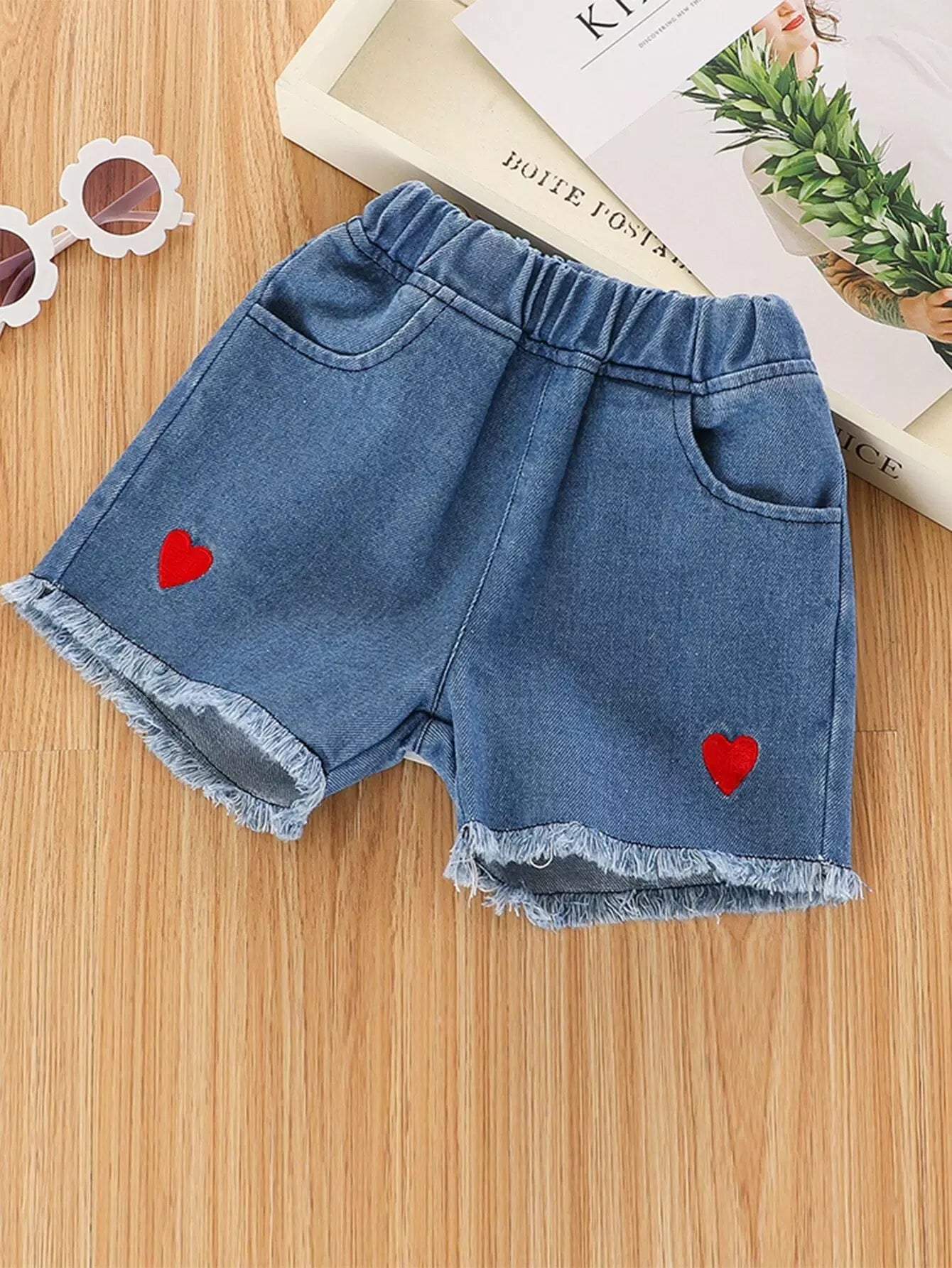 Toddler Girls Heart Embroidery Raw Hem Denim Shorts