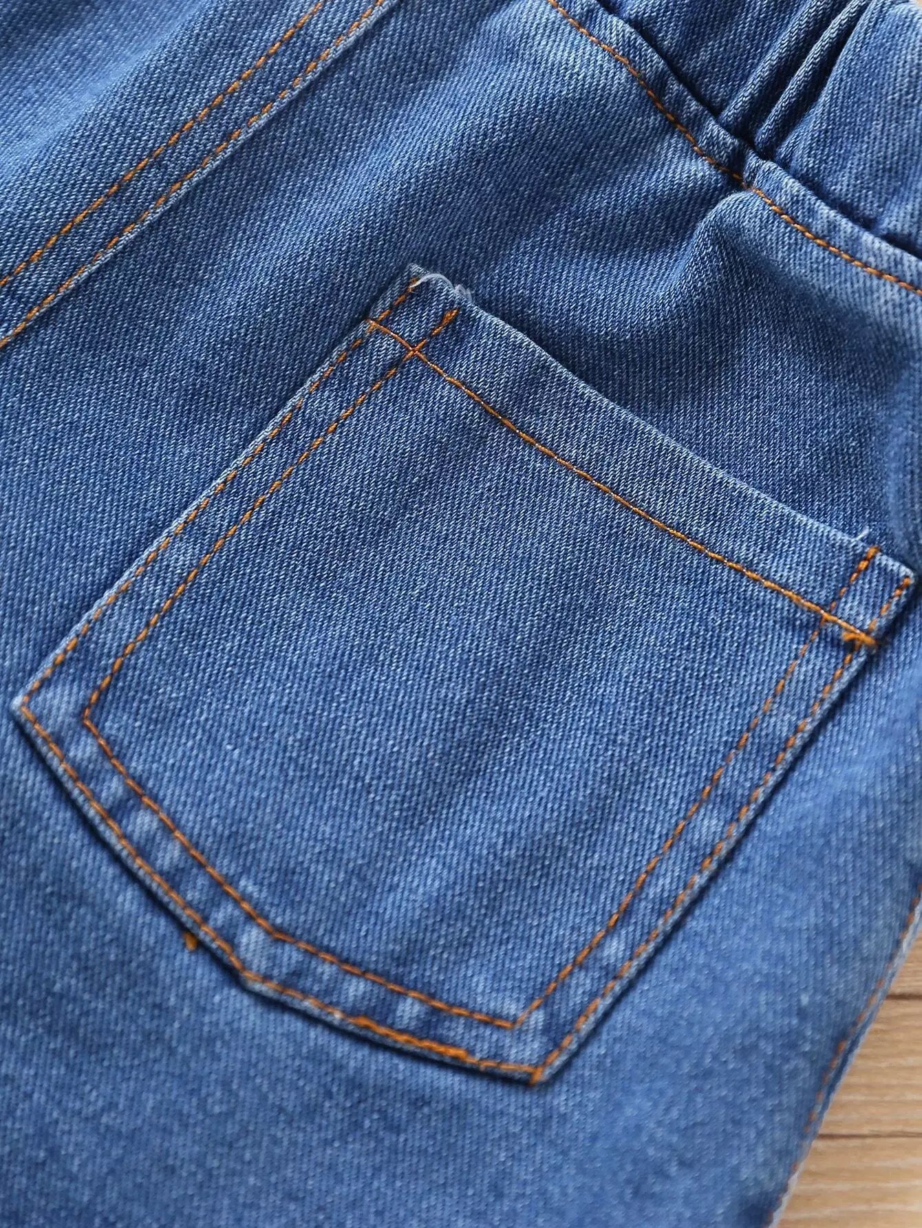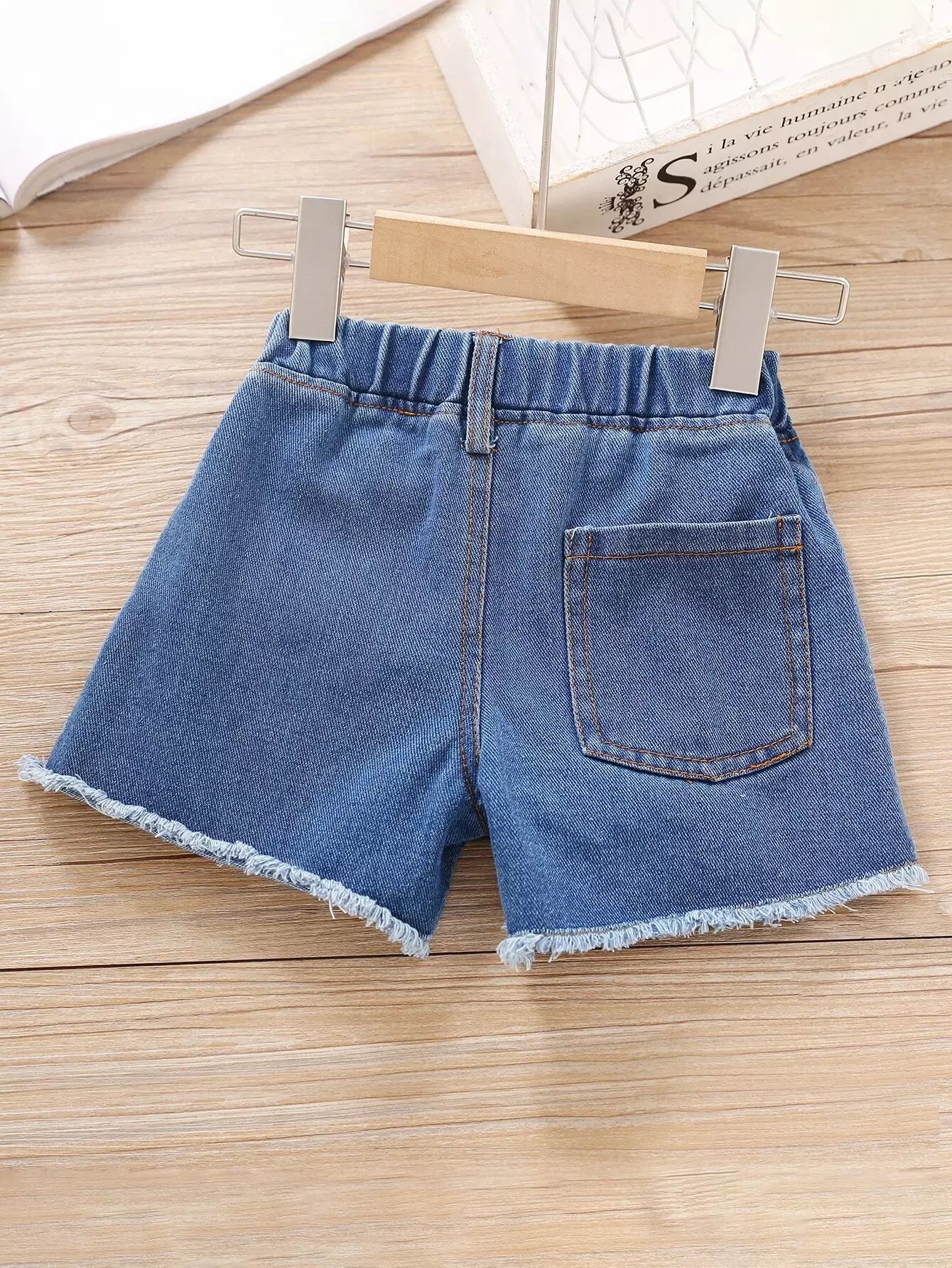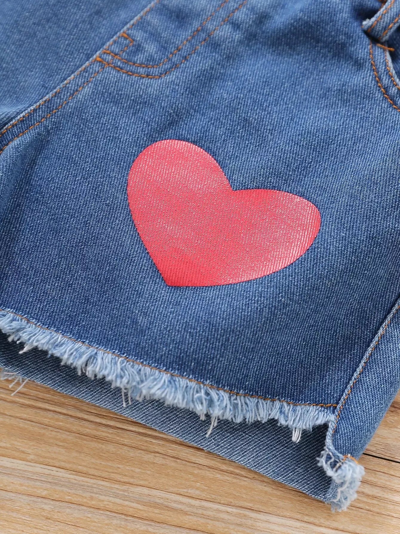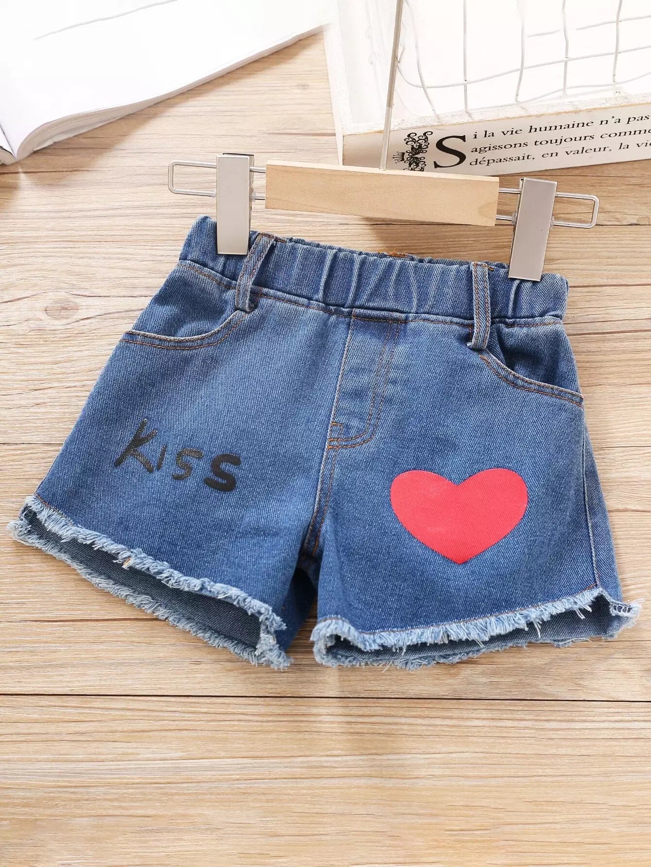 Toddler Girls Letter & Heart Print Raw Hem Denim Shorts