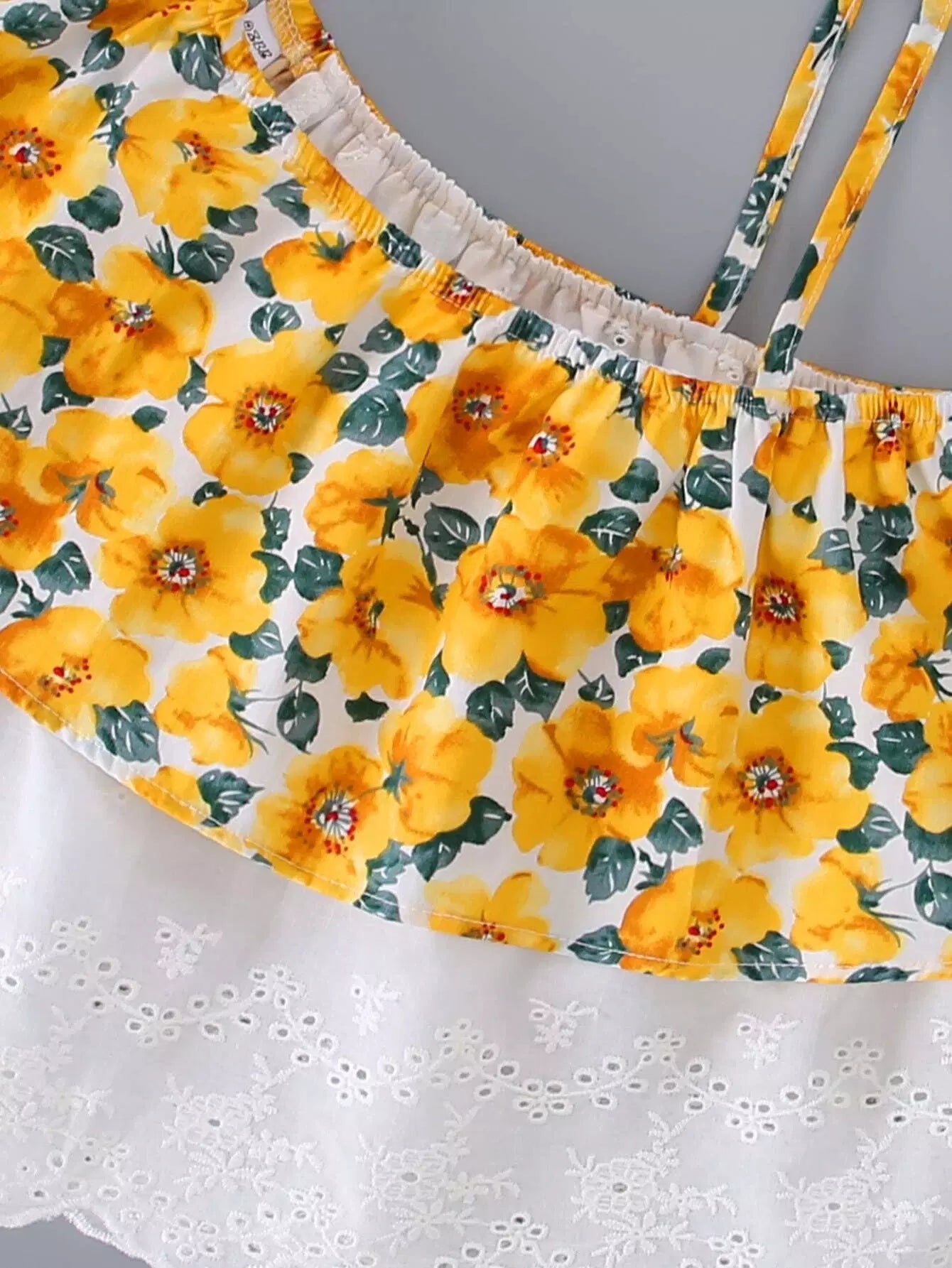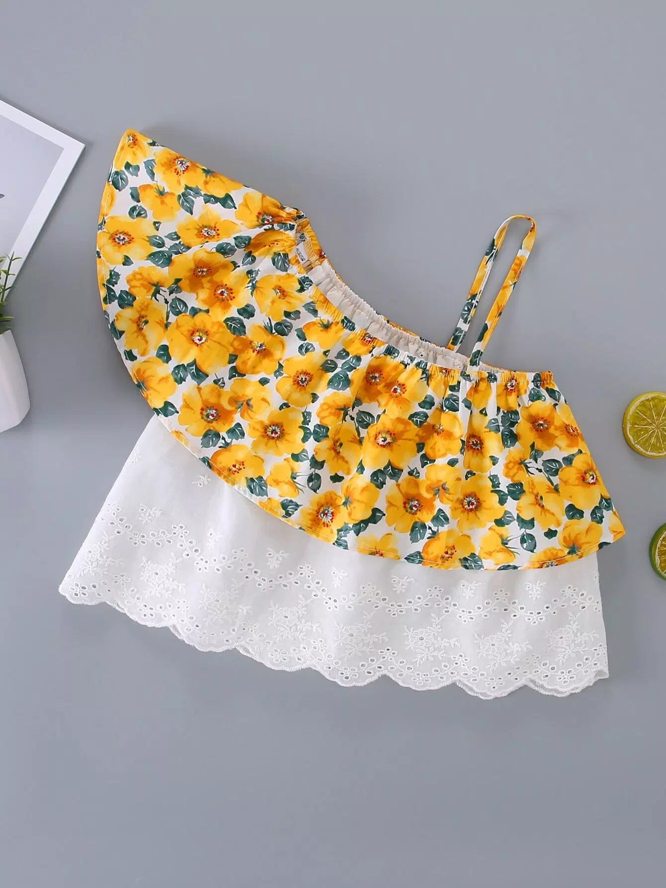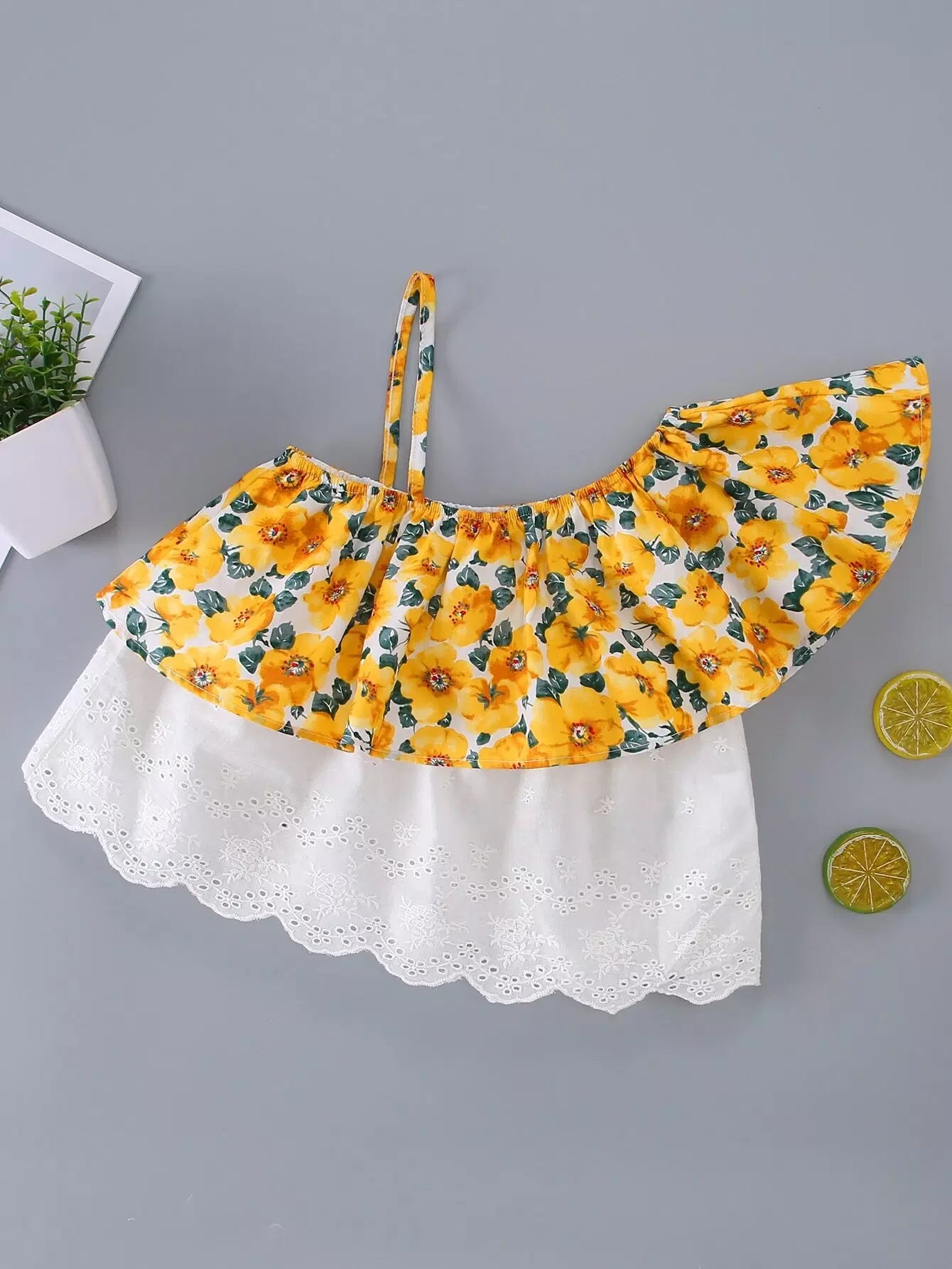 Toddler Girl Floral Eyelet Embroidery Asymmetrical Neck Blouse