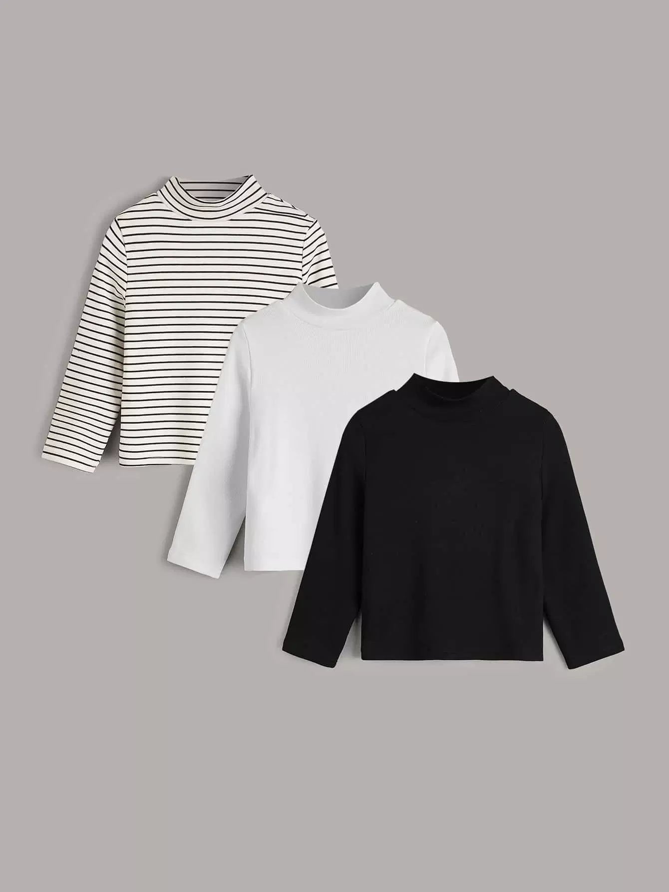Toddler Girls 3pcs Striped Mock Neck Tee